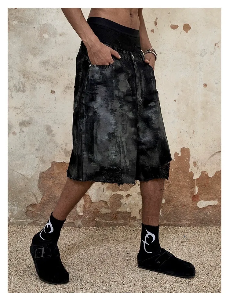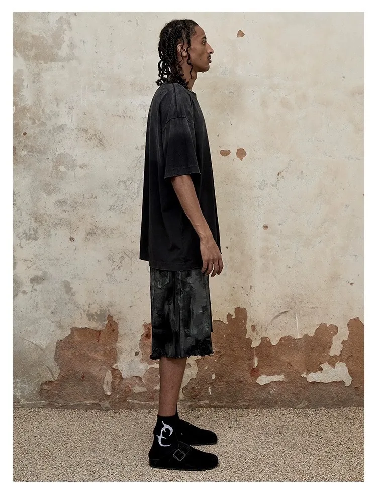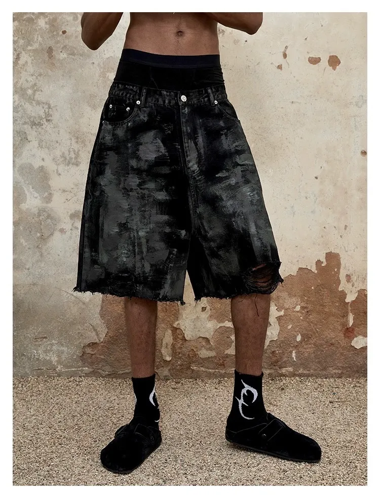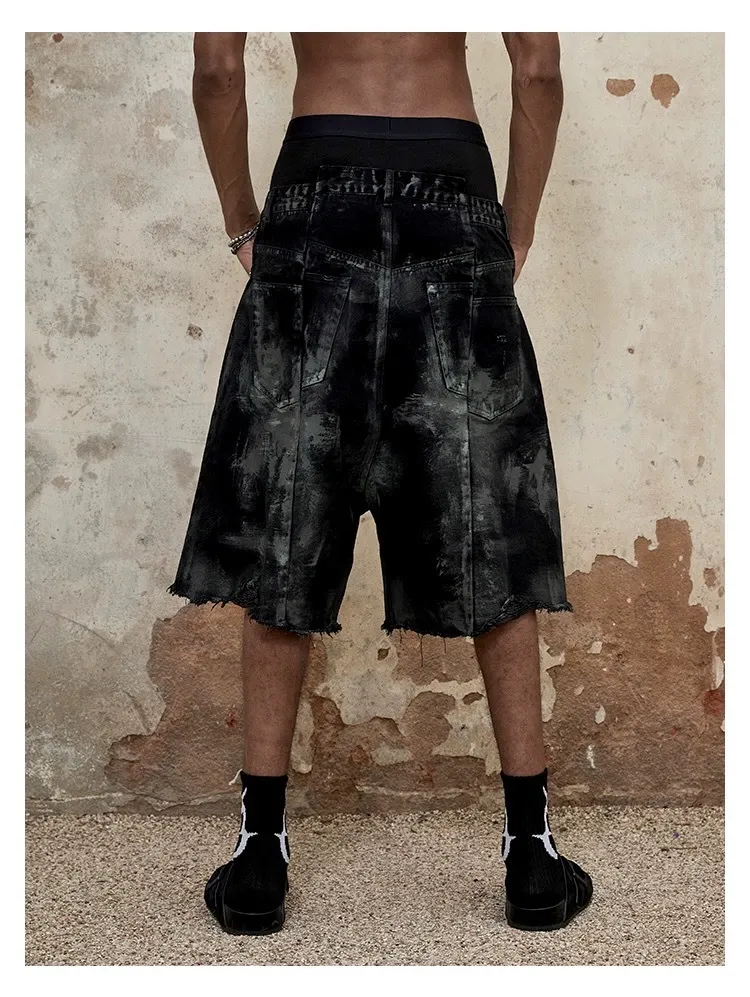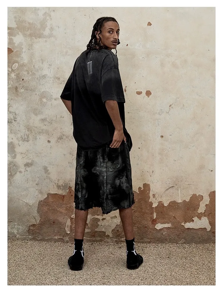 Triangle Project 破壞 髒染 解構 牛仔短褲 (黑色)