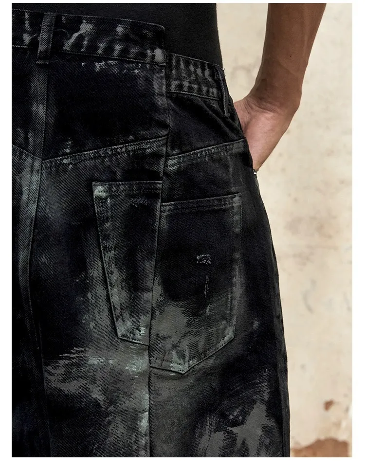 RICHILL 燒灼破壞 泥染 鐵鏽 牛仔褲 長褲(藍/黑)