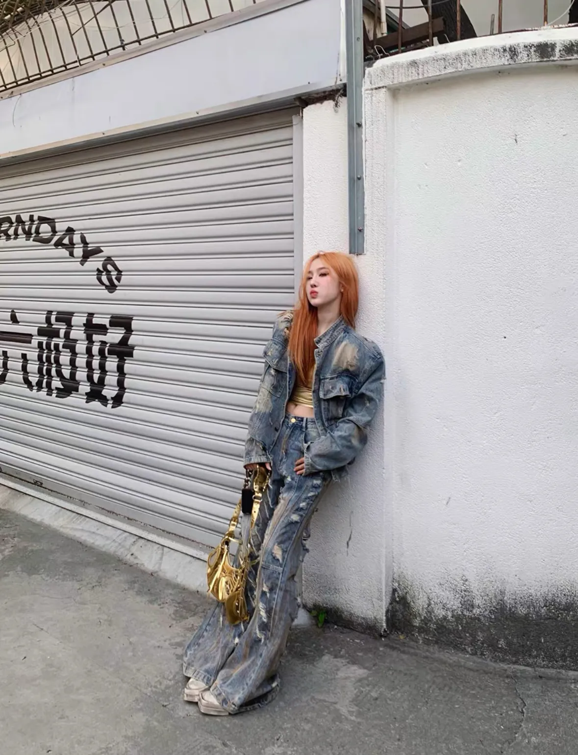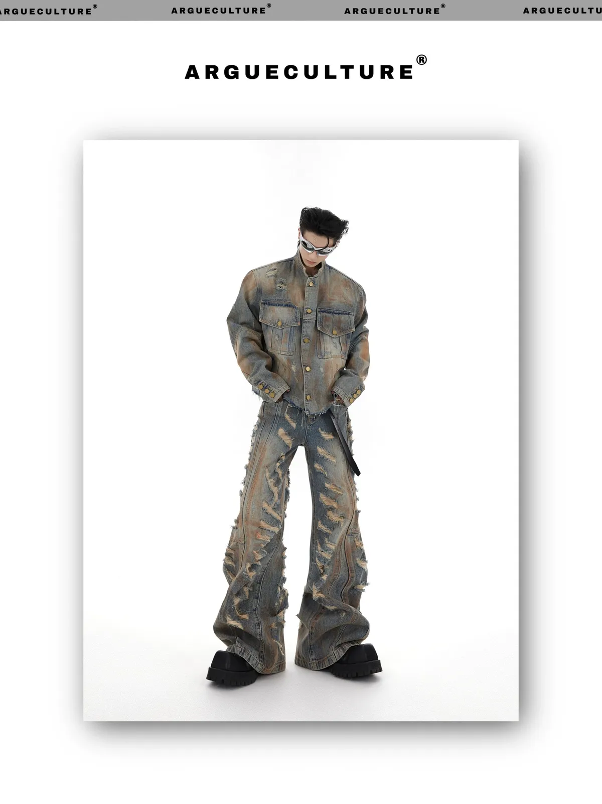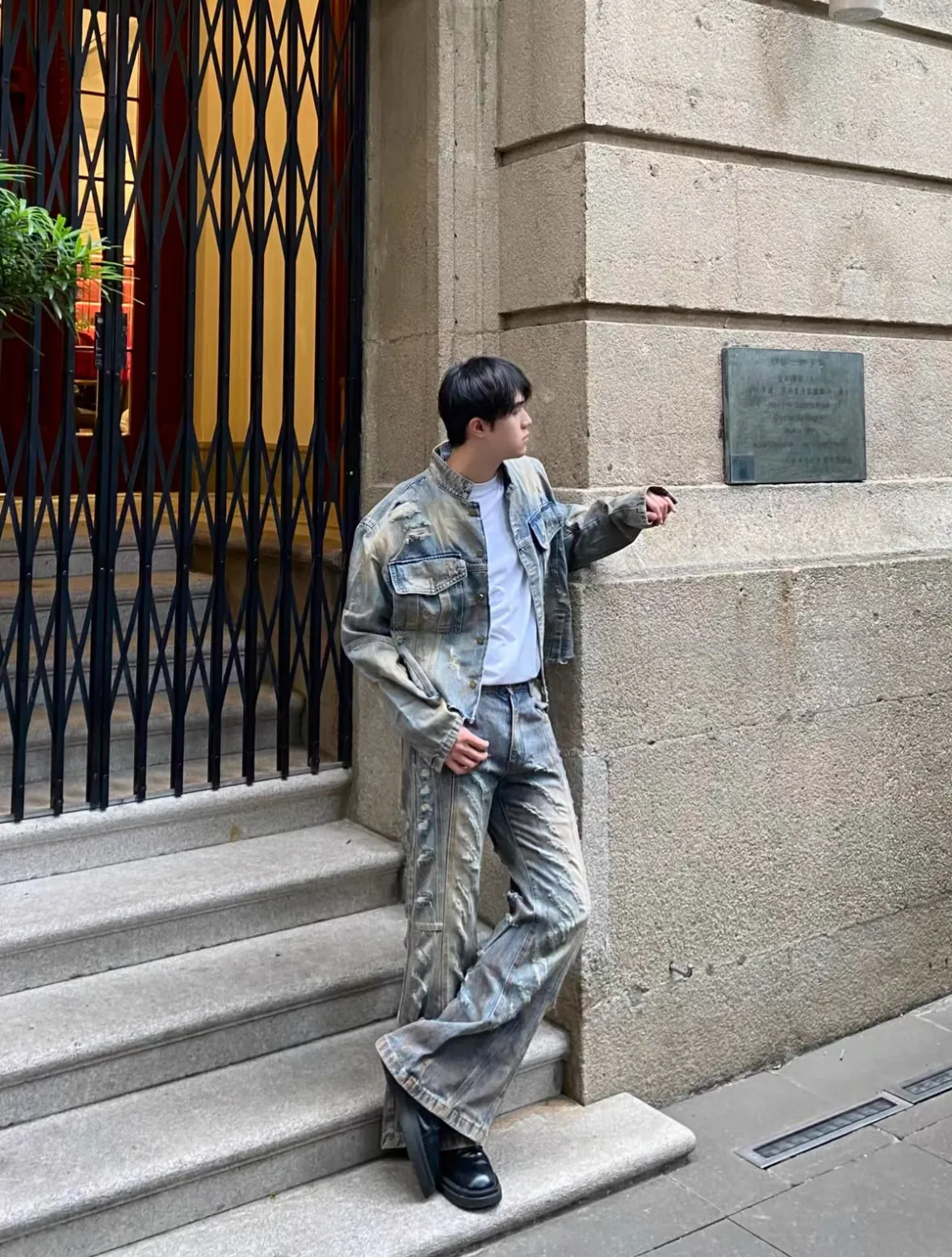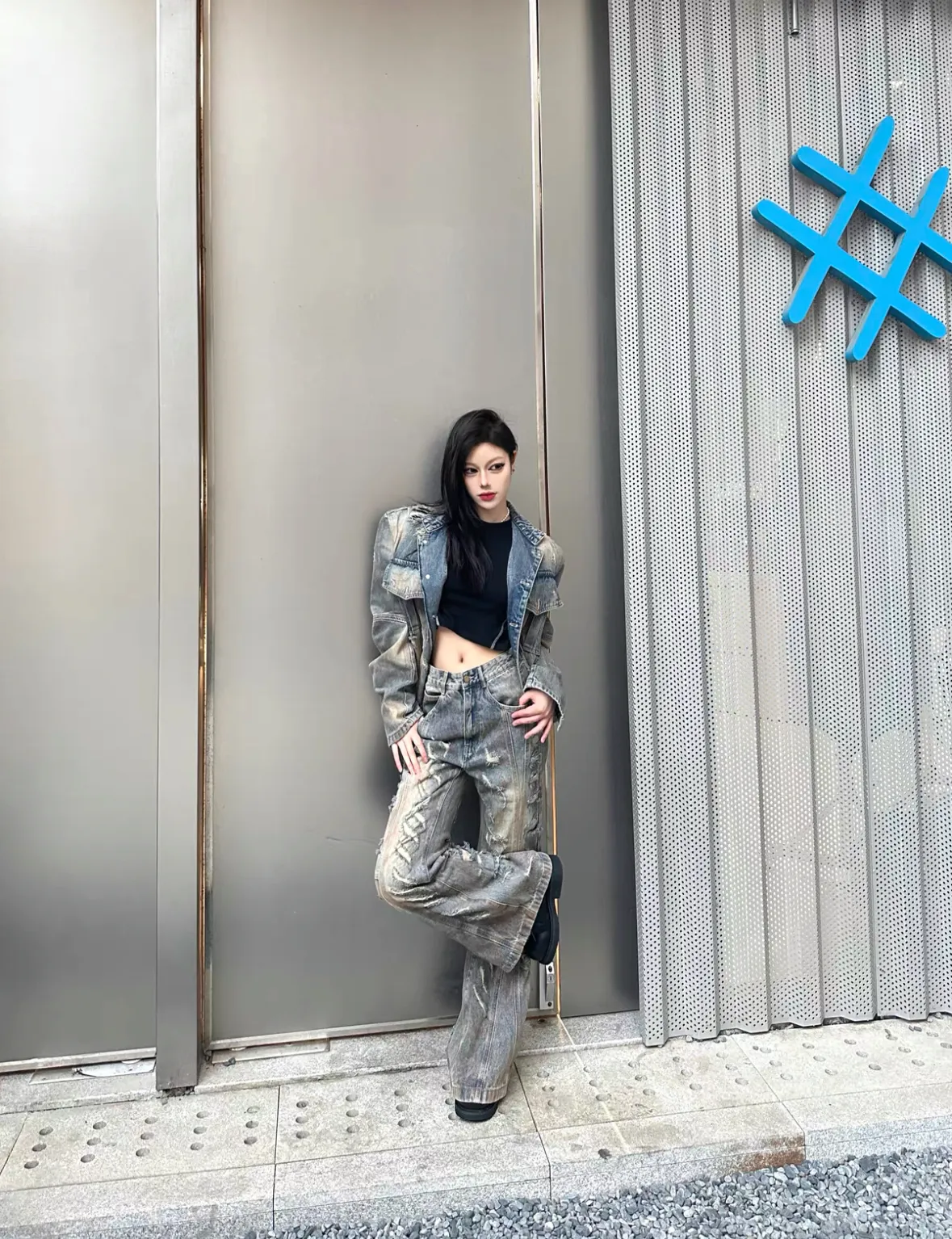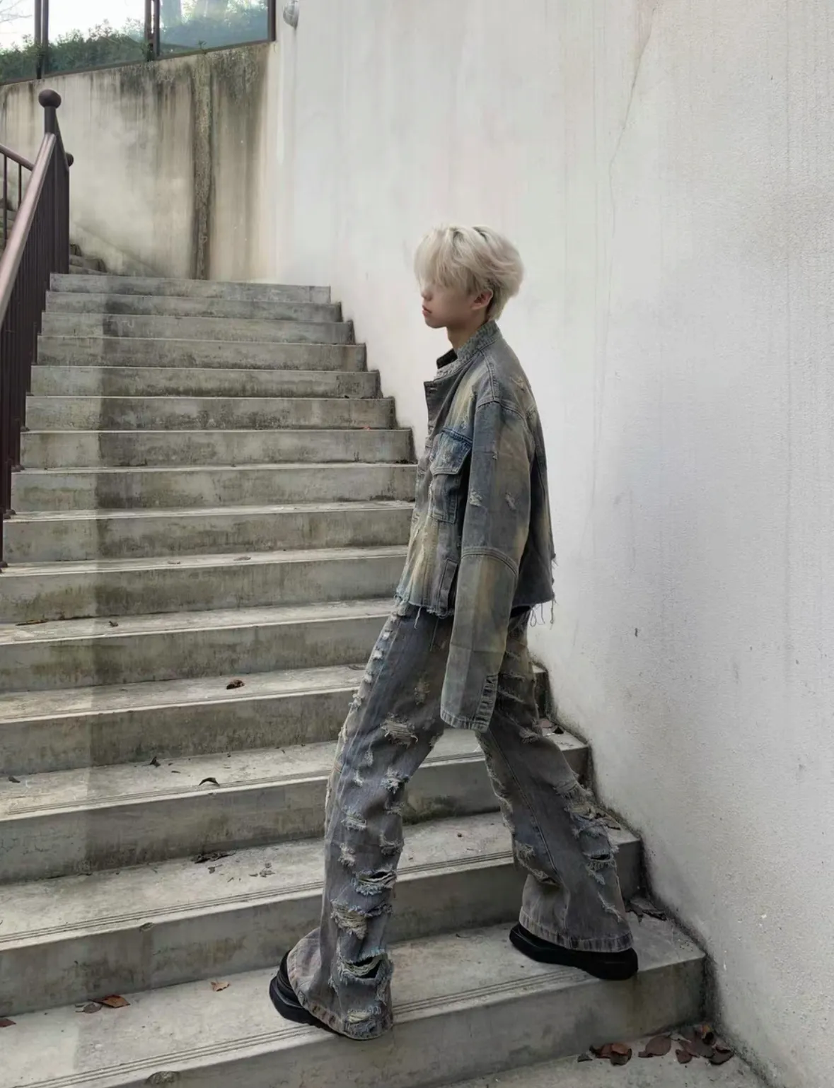 髒染破壞 重磅 設計感 牛仔外套 微喇叭 牛仔褲 牛仔套裝