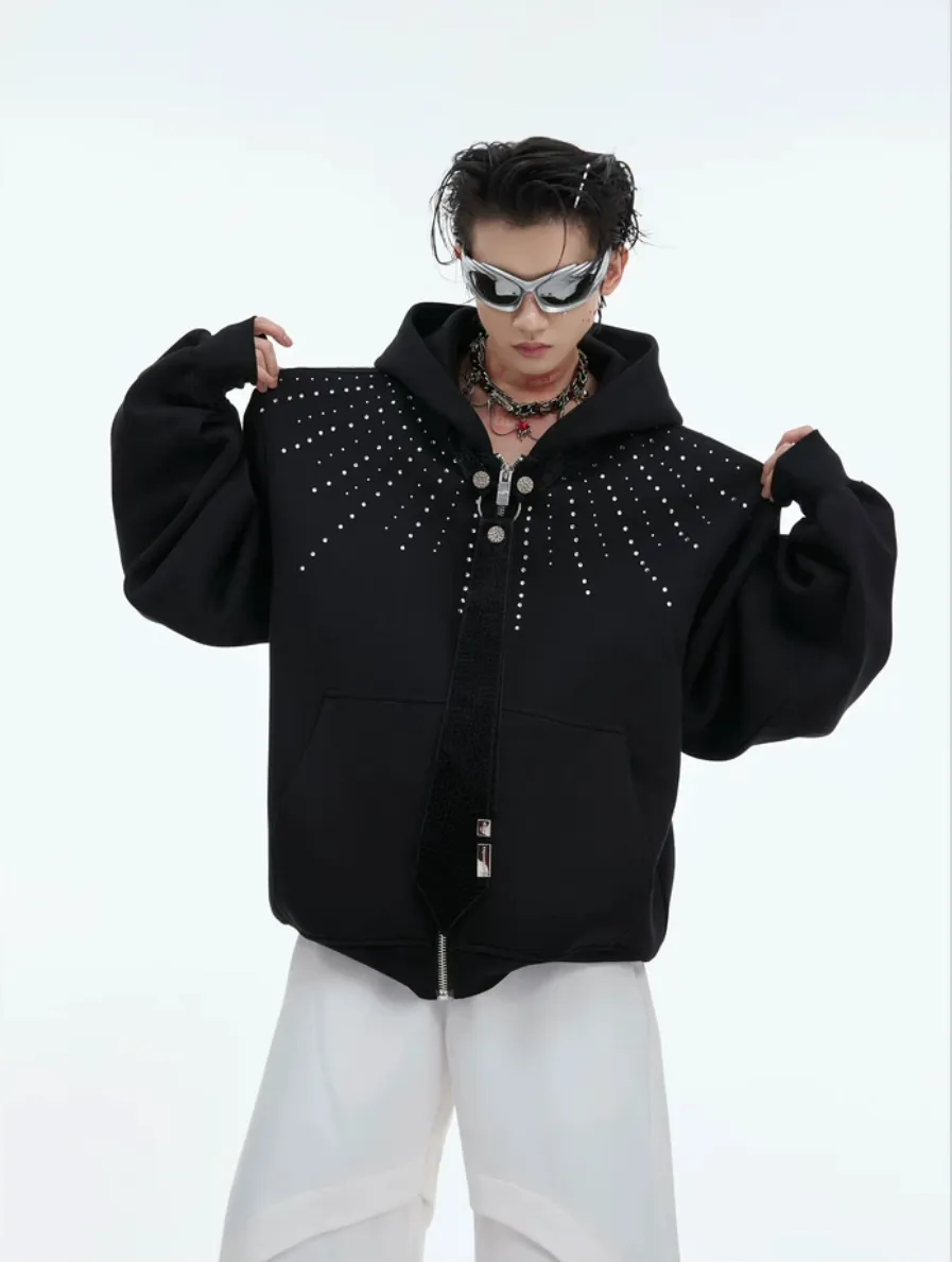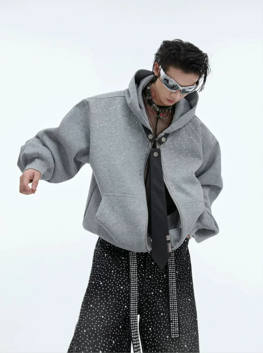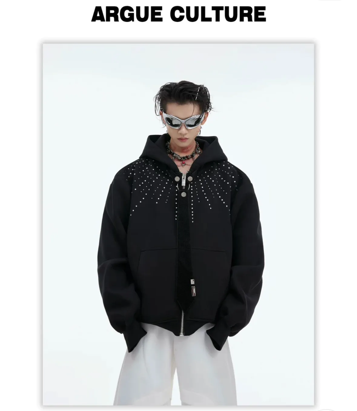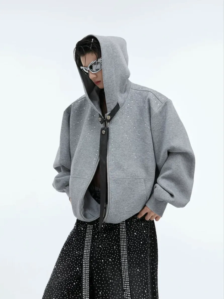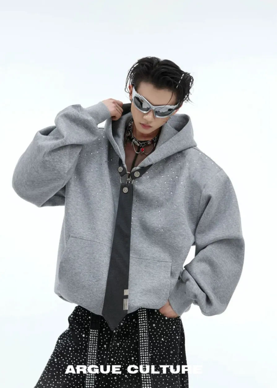 ARGUE 水鑽 可拆卸領帶 重磅 外套(黑/灰)