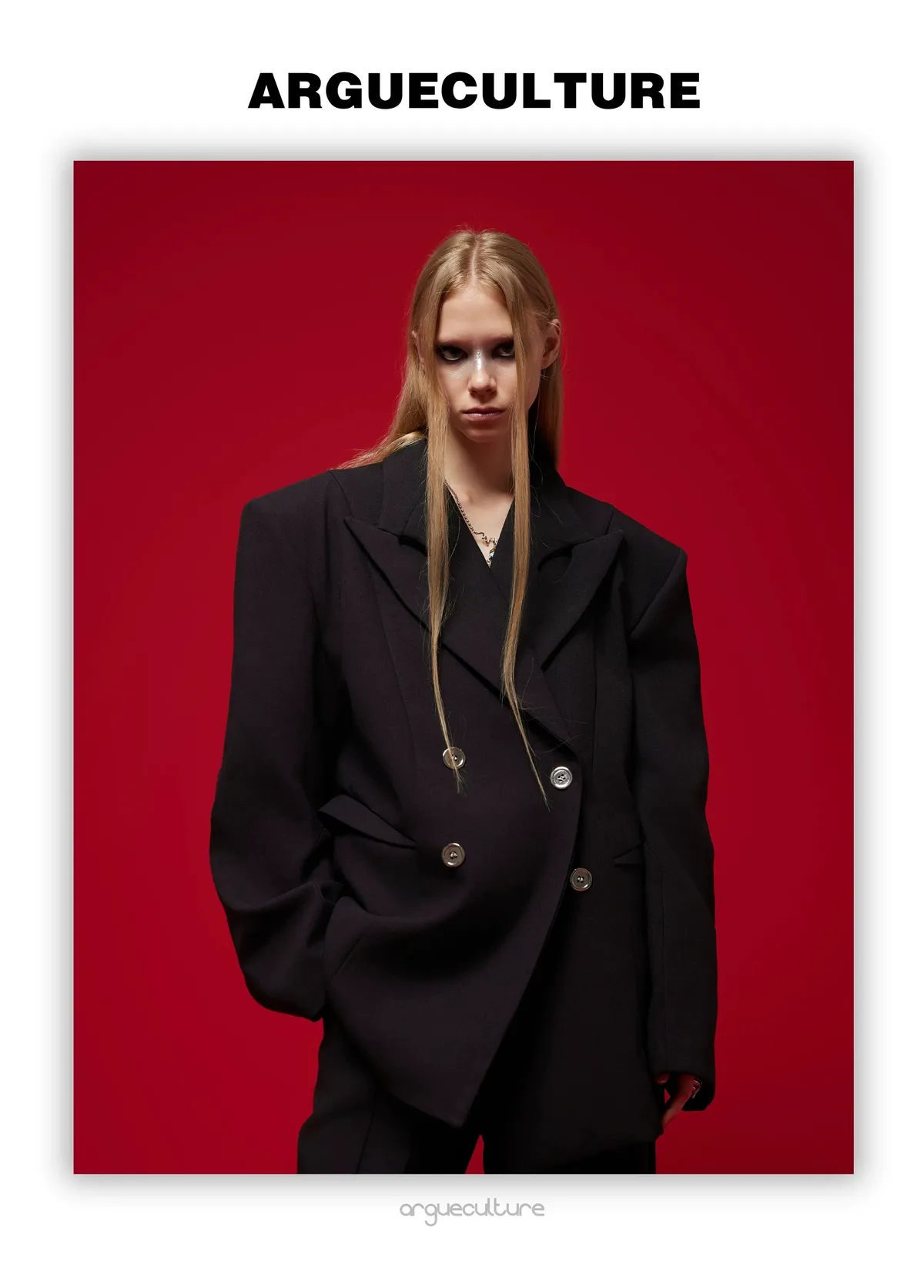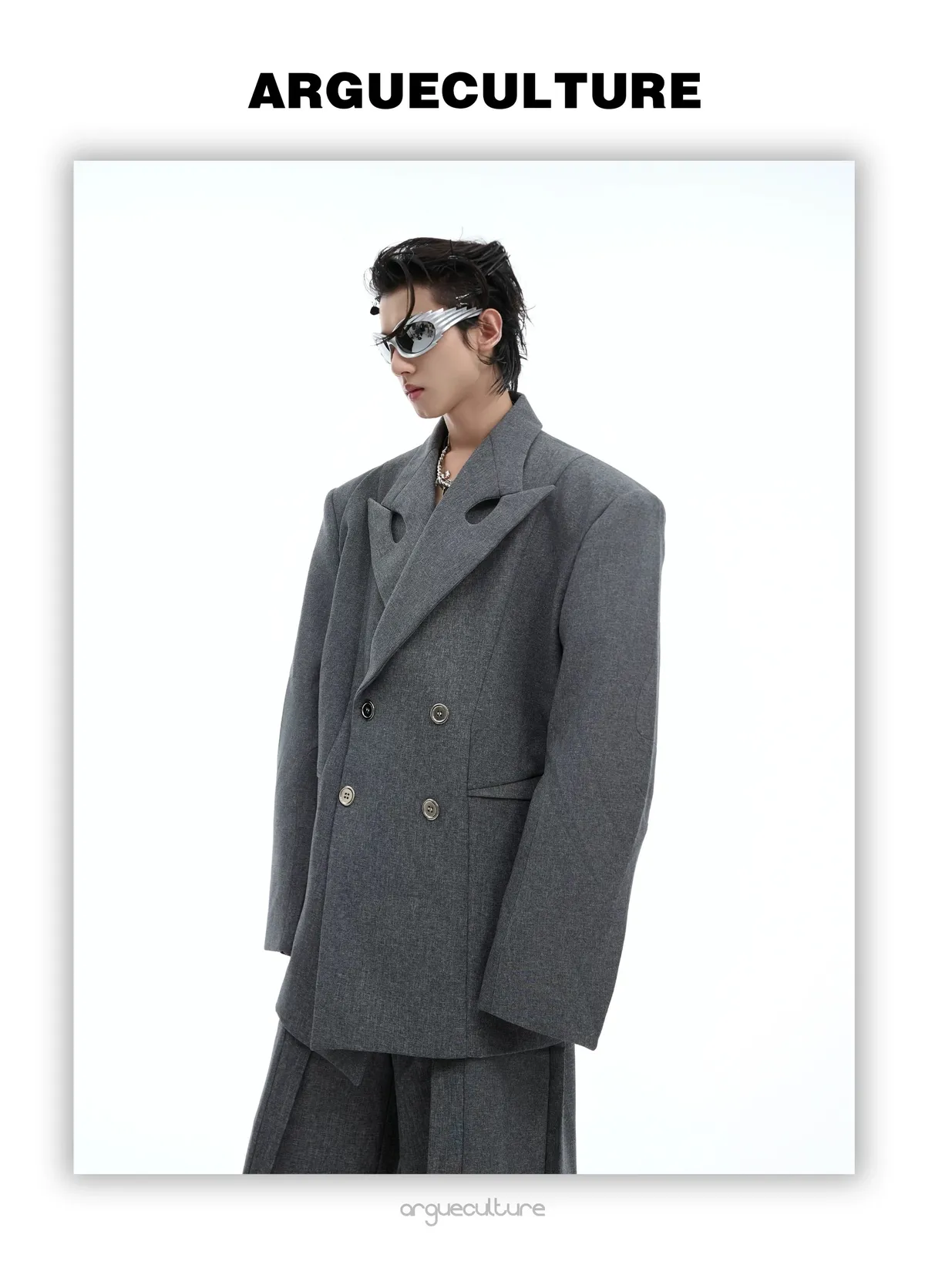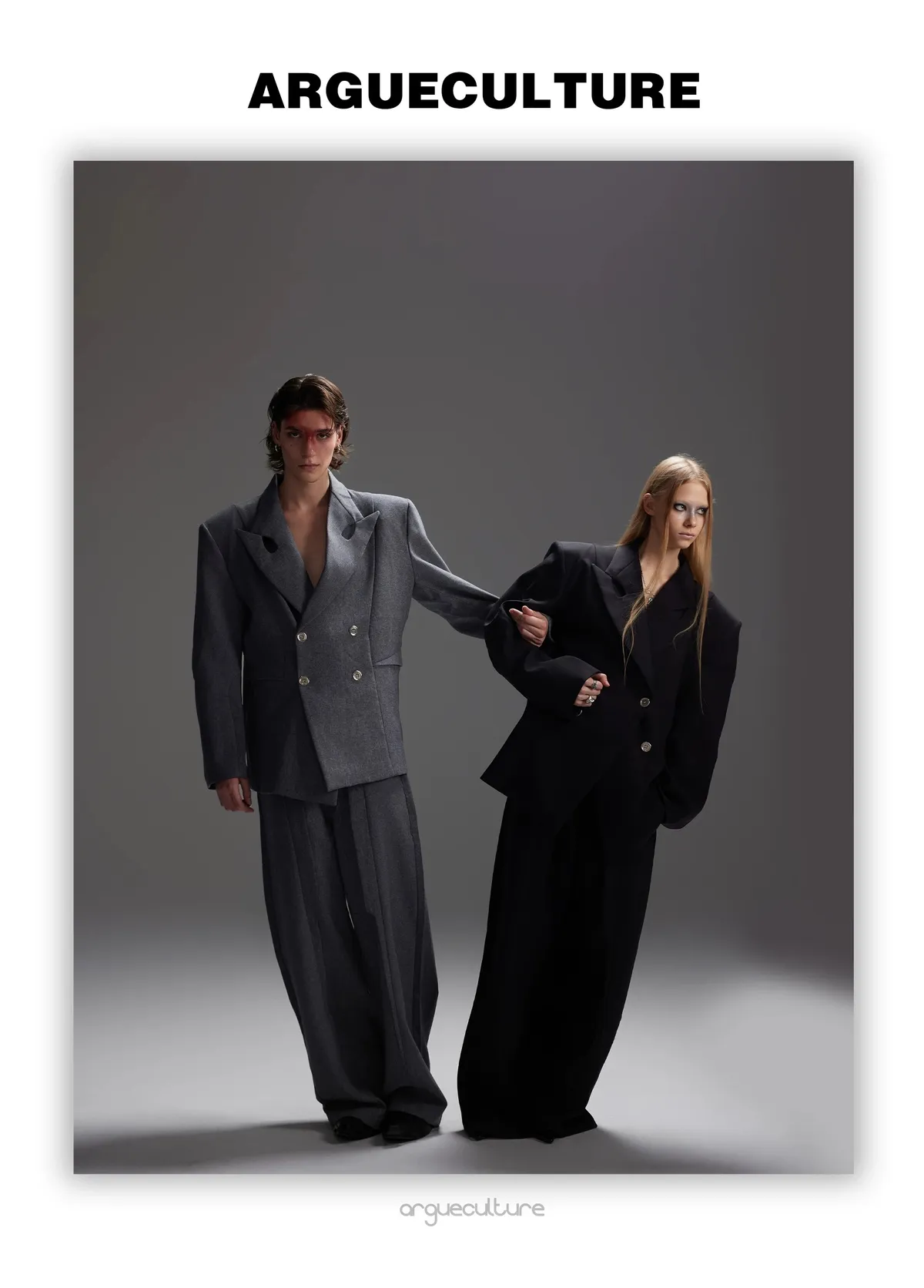 ARGUE 異形領 廓形 簡約 西裝套裝 西裝外套 西裝褲(黑/灰)