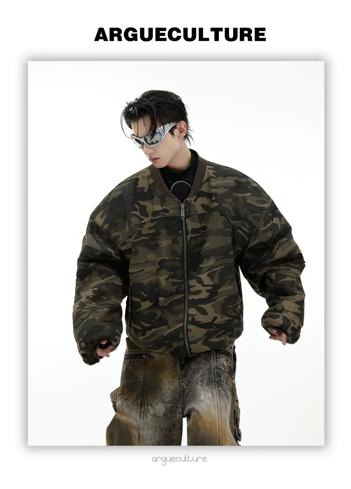 ARGUE 迷彩 刺繡 短版廓形 BOMBER 飛行外套(迷彩)