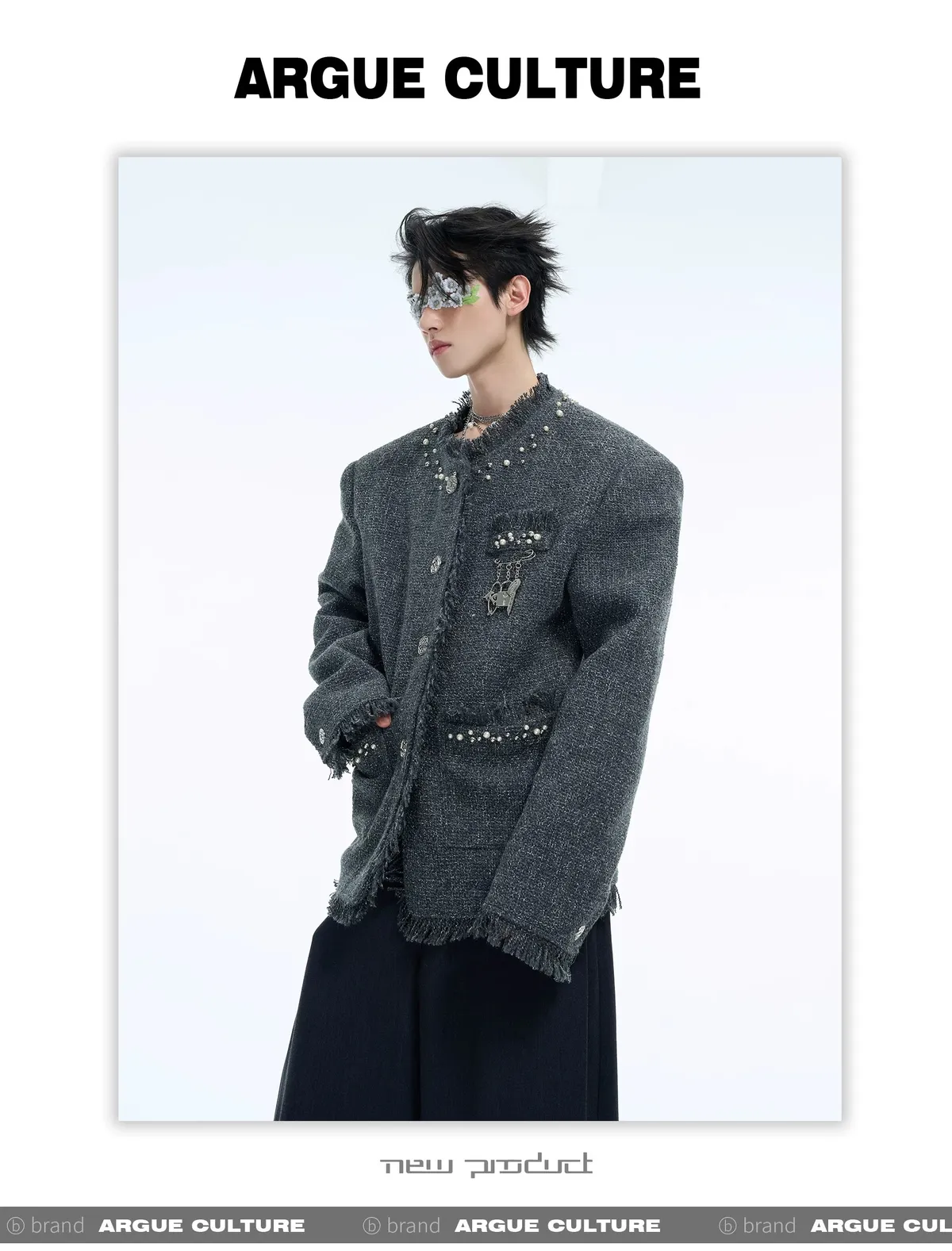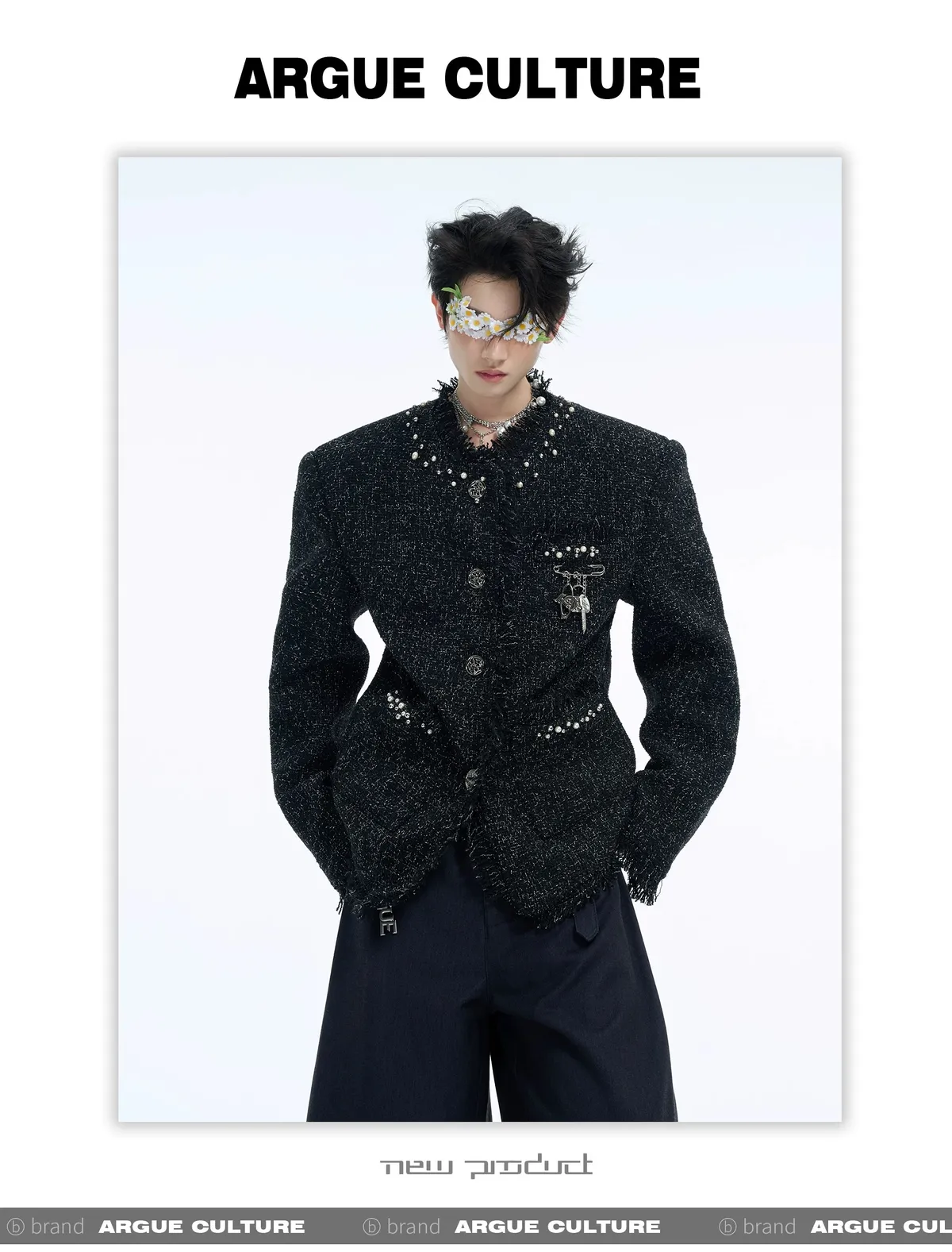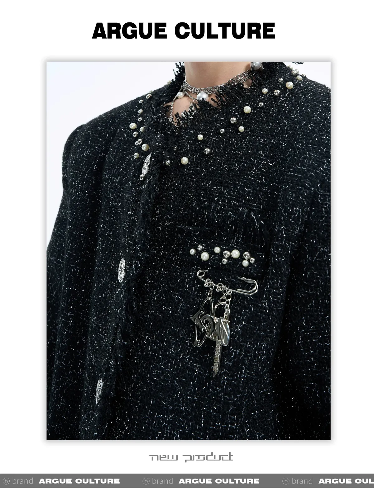 ARGUE 小香風 珍珠別針 外套(黑/灰)