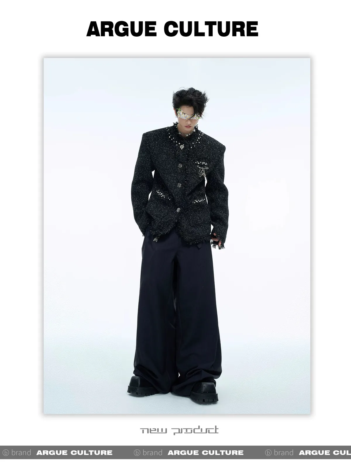 F4F 寶石感 撞色 抽鬚破壞 墊肩 小香風 外套(黑色)