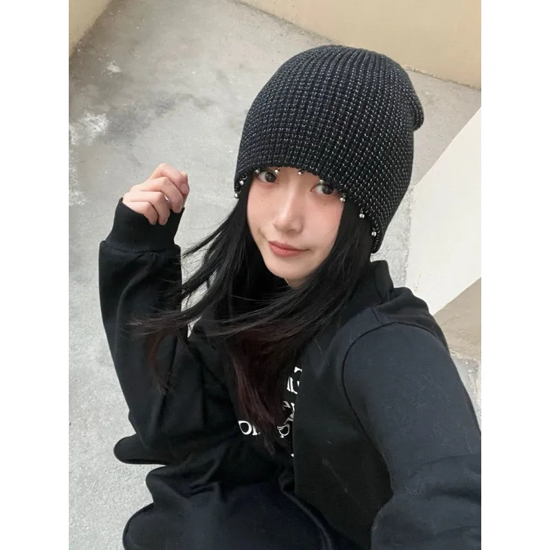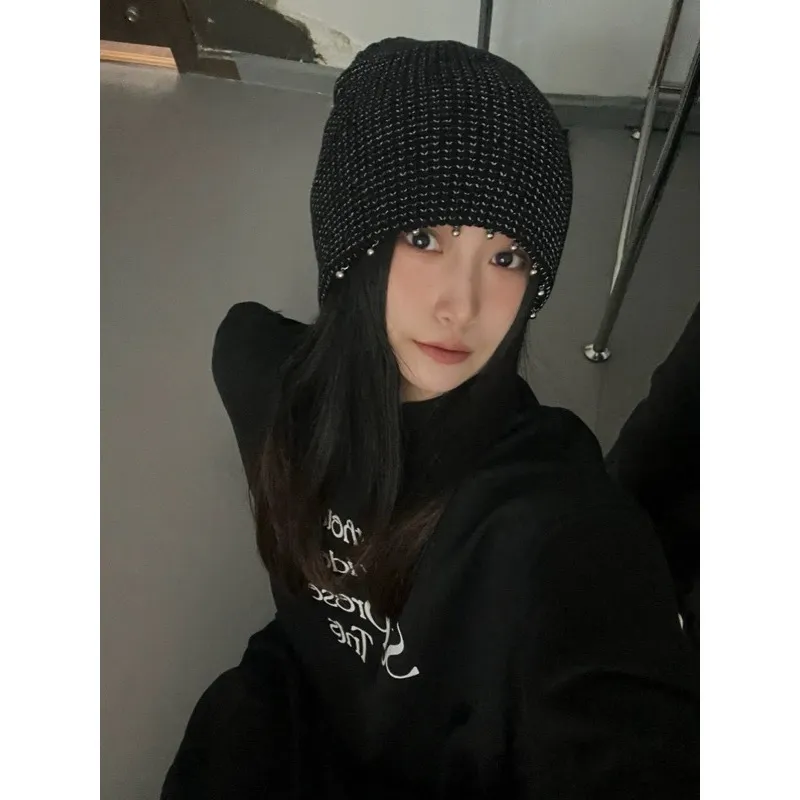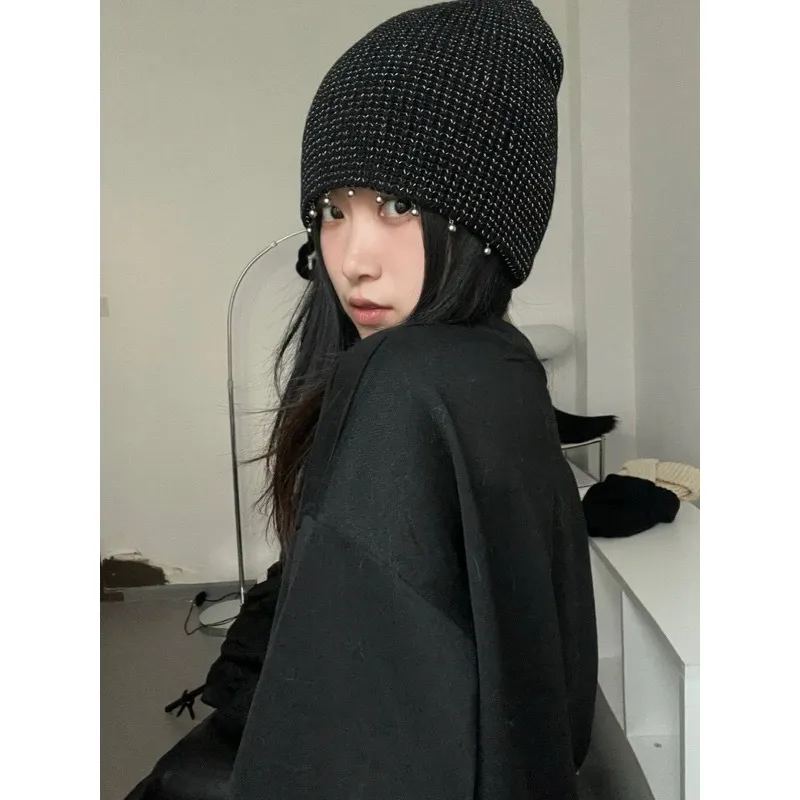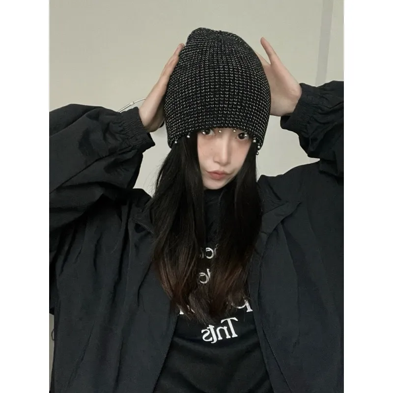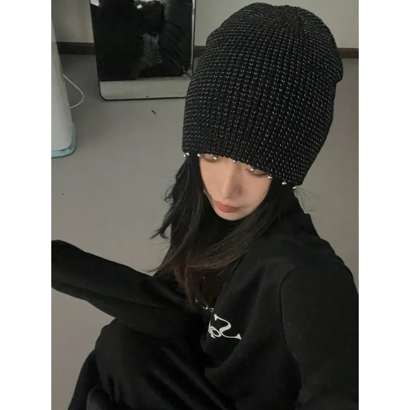 [LAX STUDIO]針織 反光銀線 金屬 珍珠 冷帽 針織帽