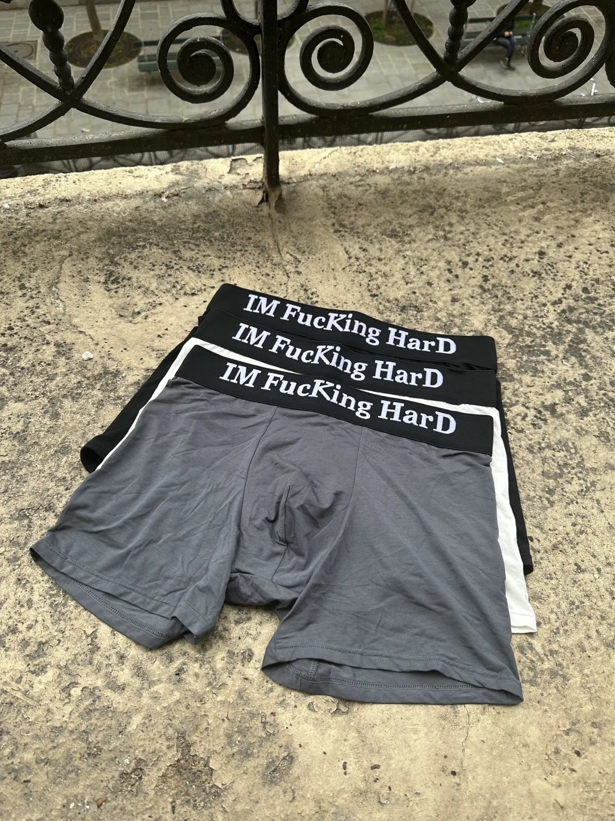 IM FUCKING HARD 刺繡 標語 莫代爾 冰絲 內褲(黑/白/灰)
