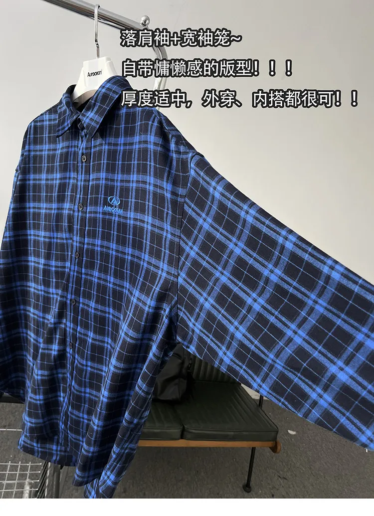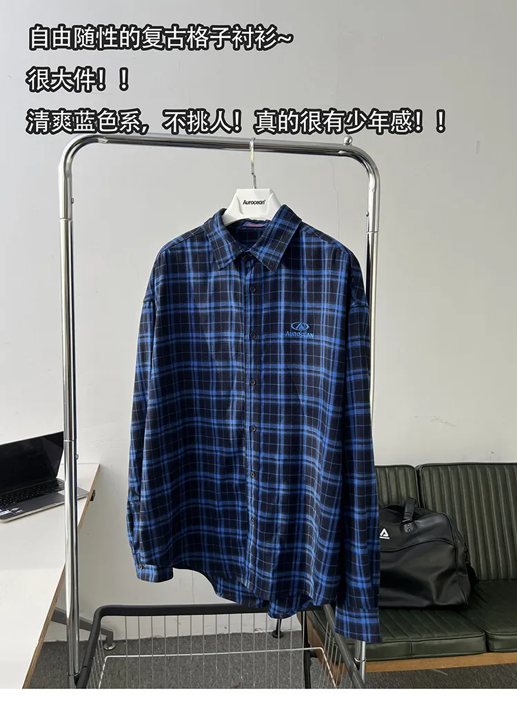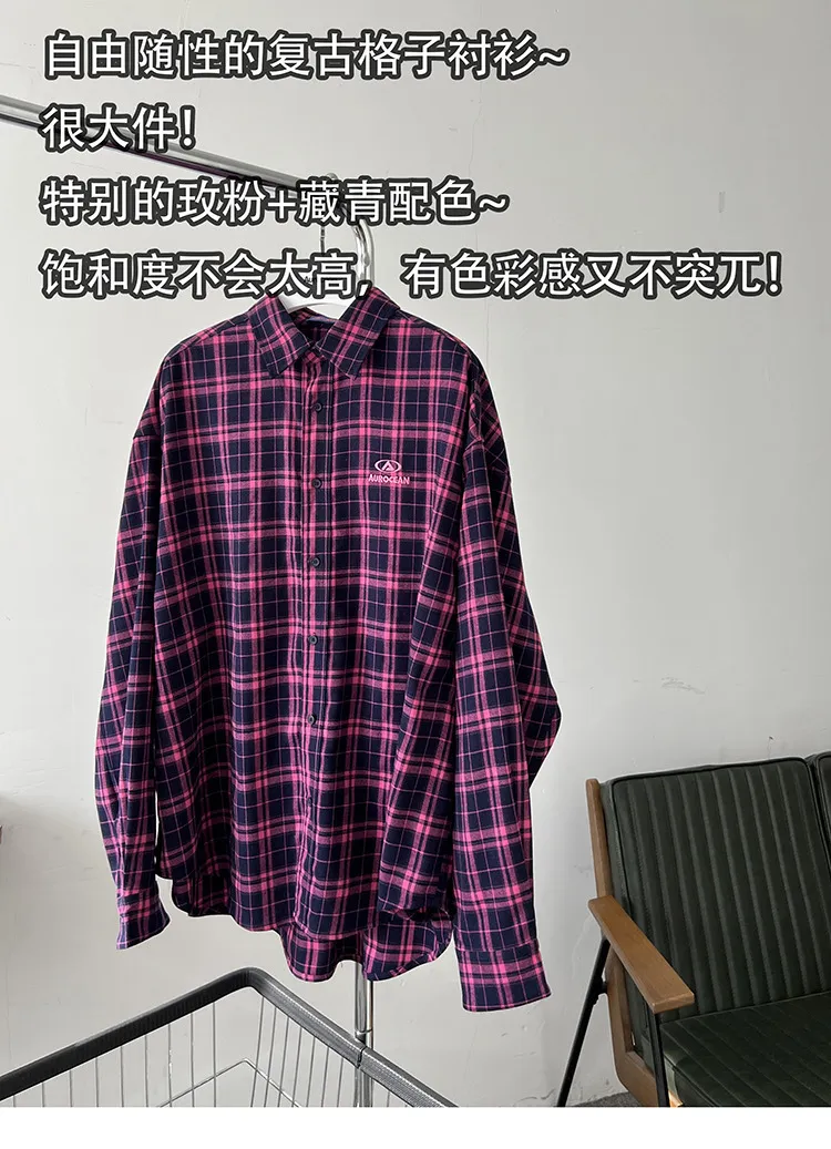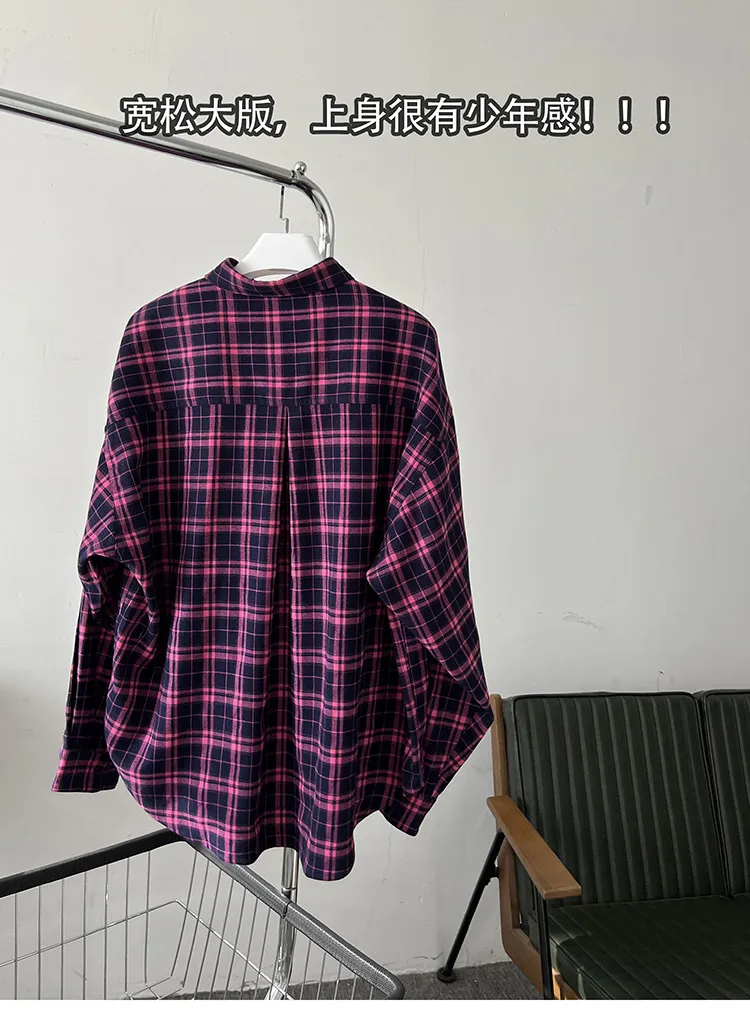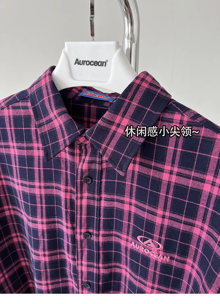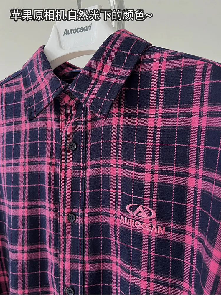 AUROCEAN 寬鬆 格紋 襯衫(藍/粉)
