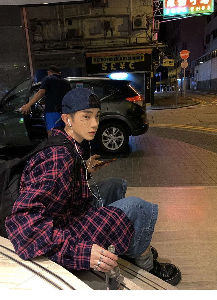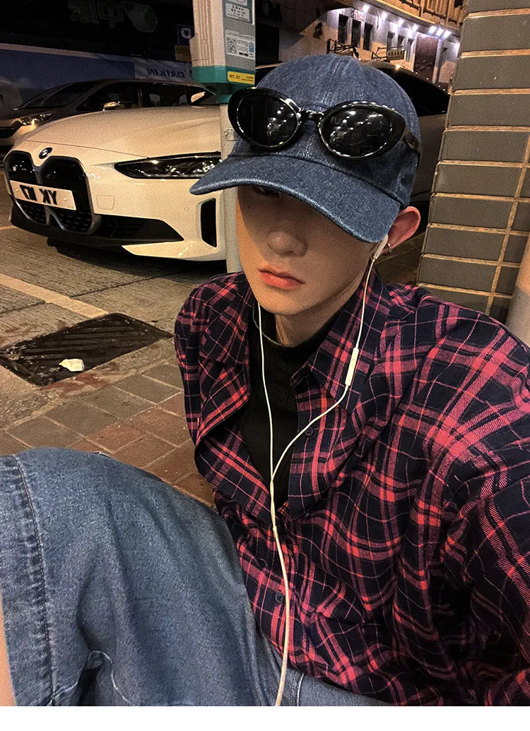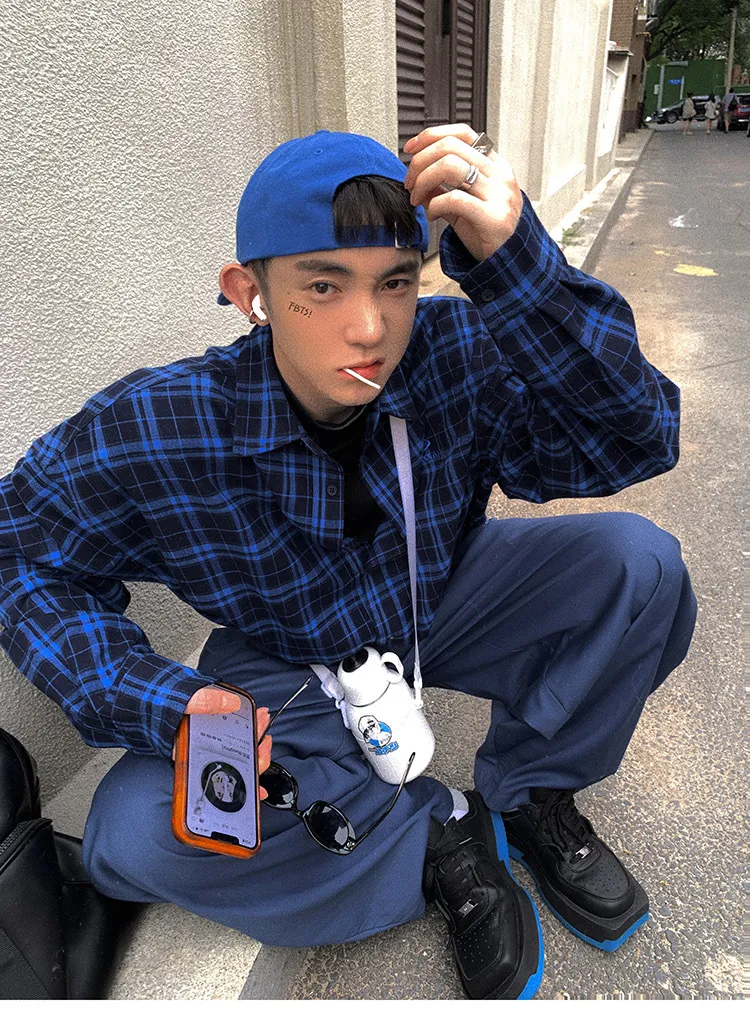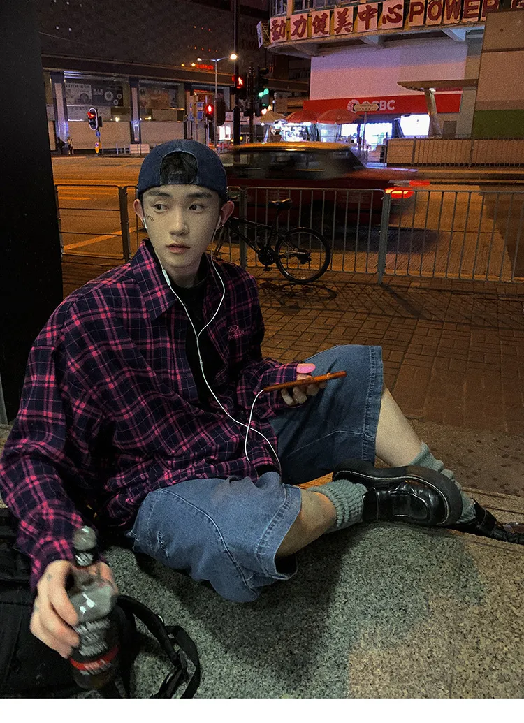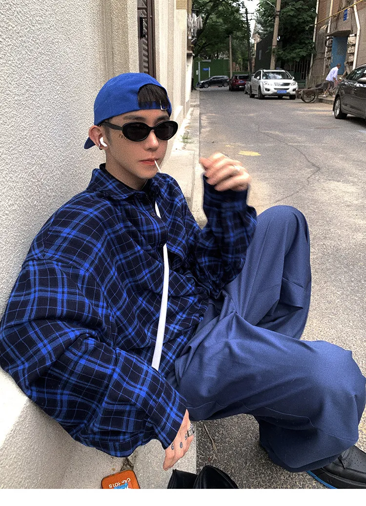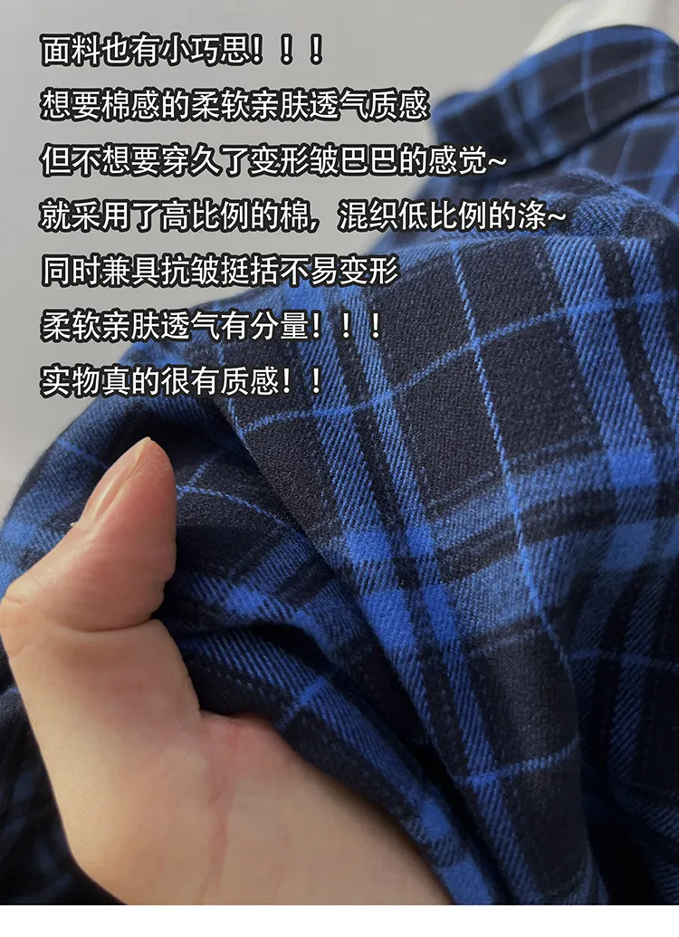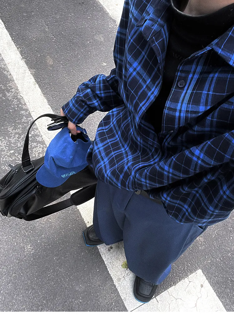 AUROCEAN 寬鬆 格紋 襯衫(藍/粉)
