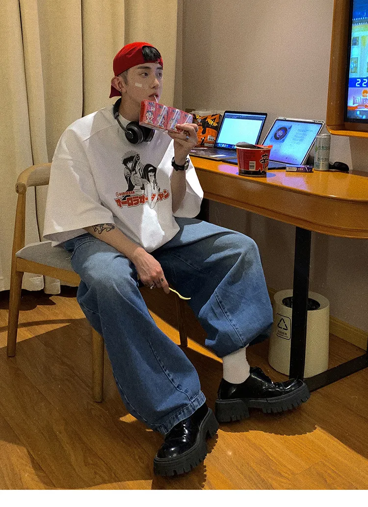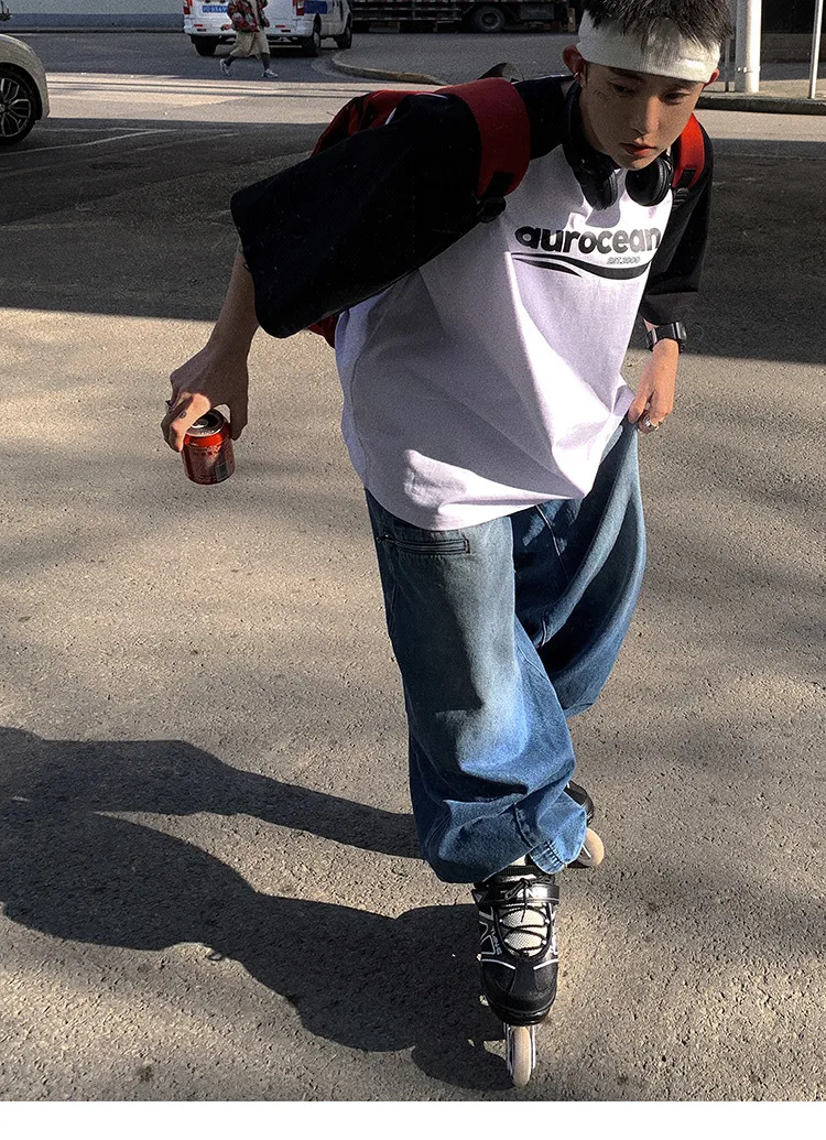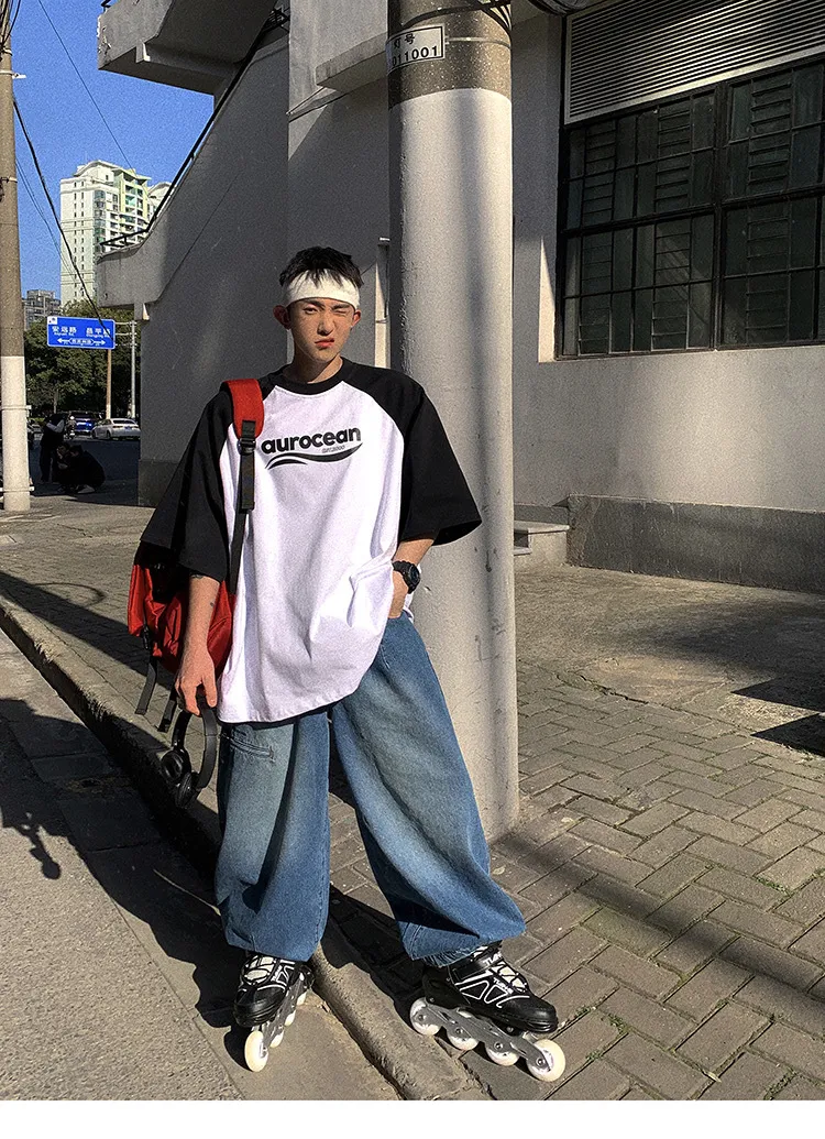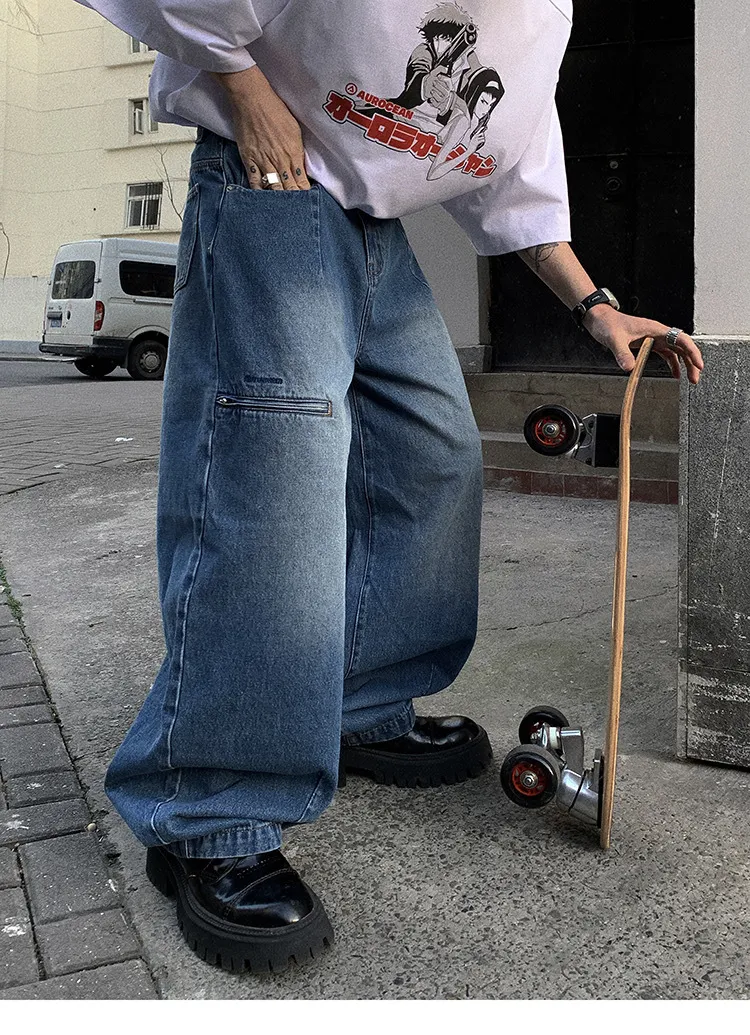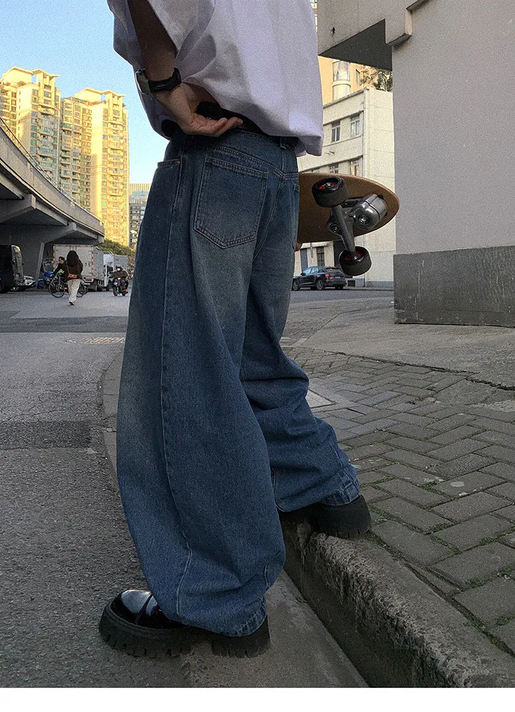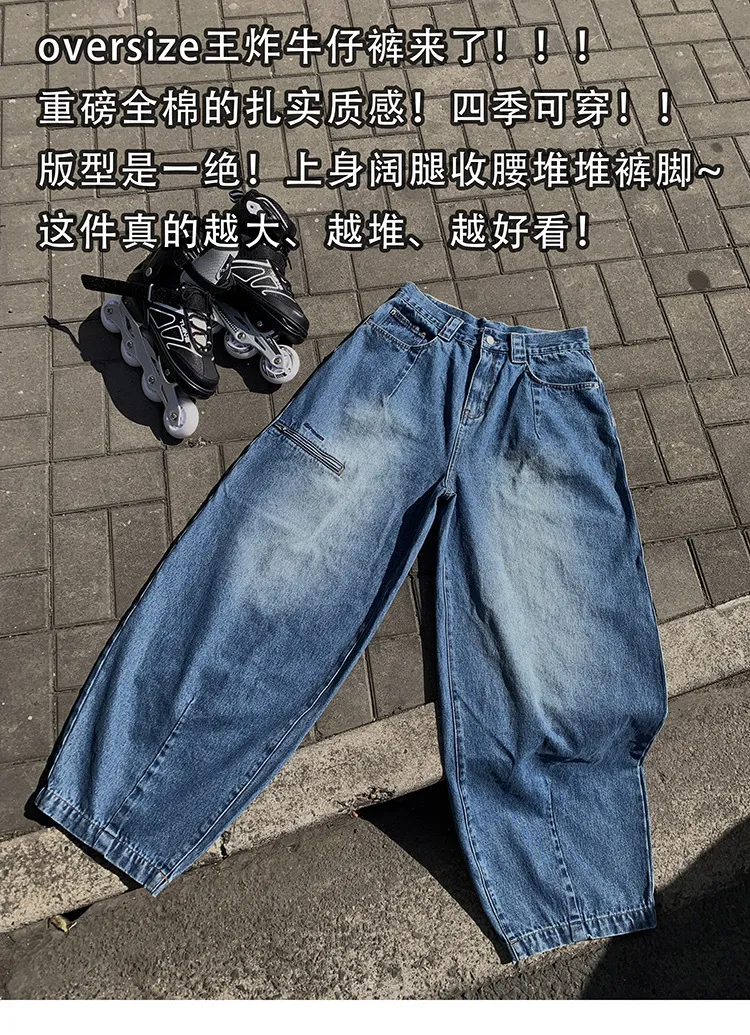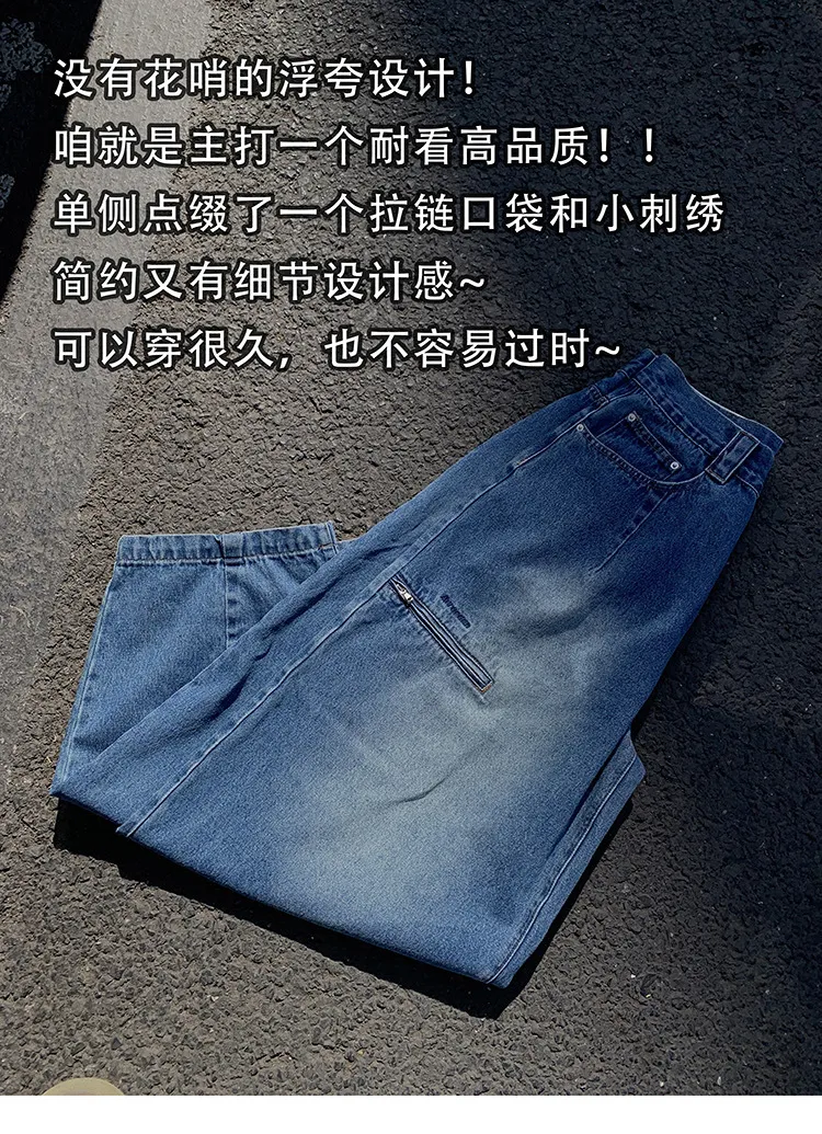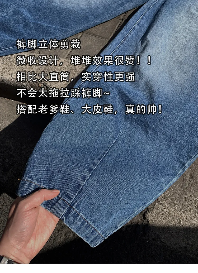 AUROCEAN 水洗 重磅 牛仔褲 闊腿褲 堆堆褲