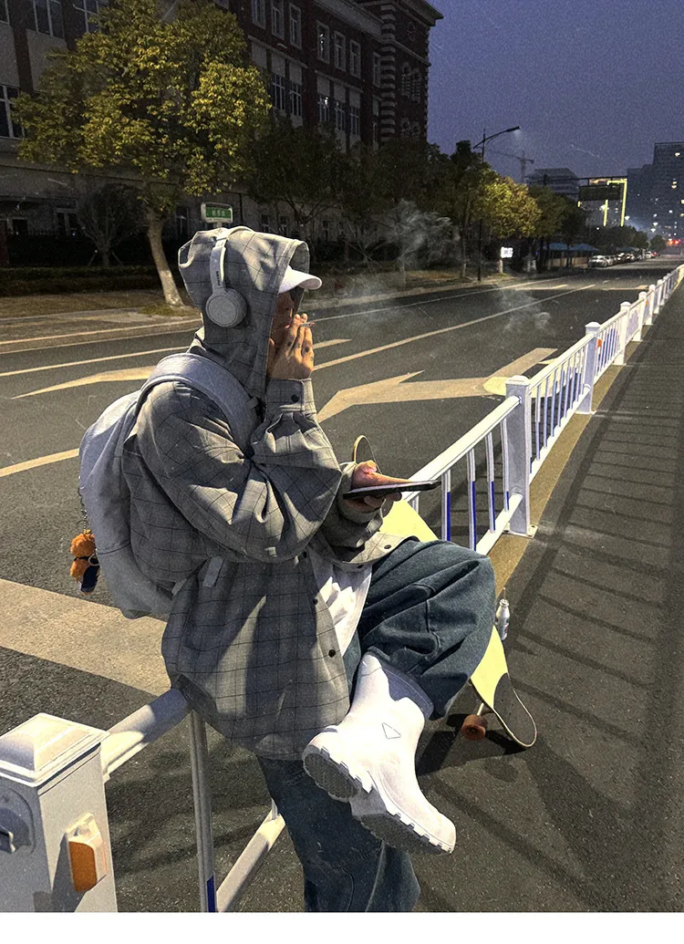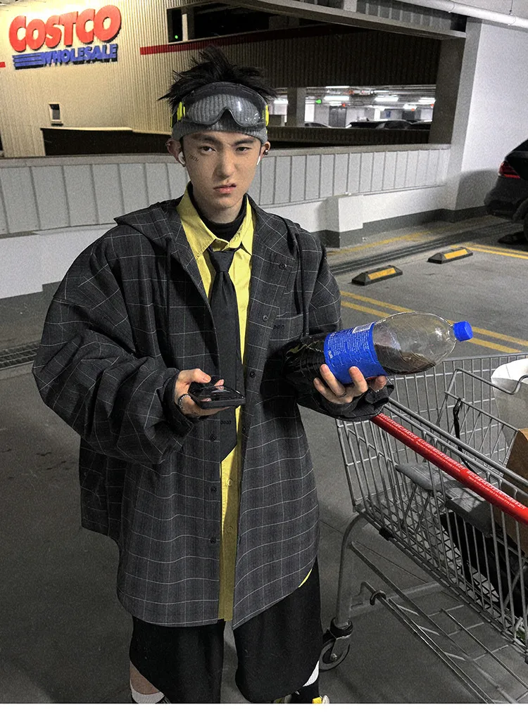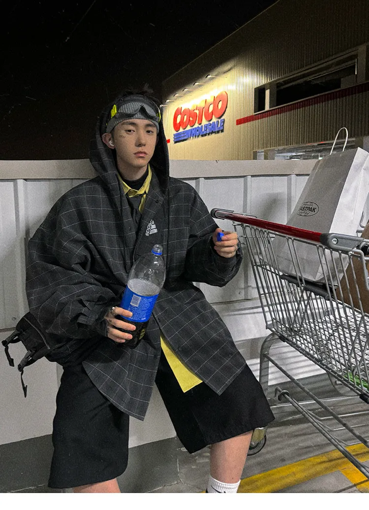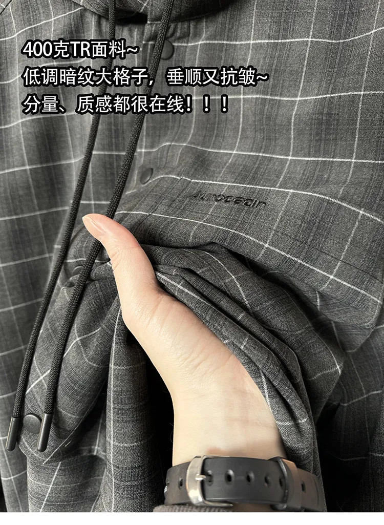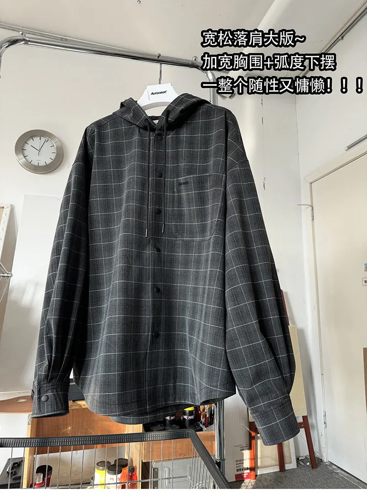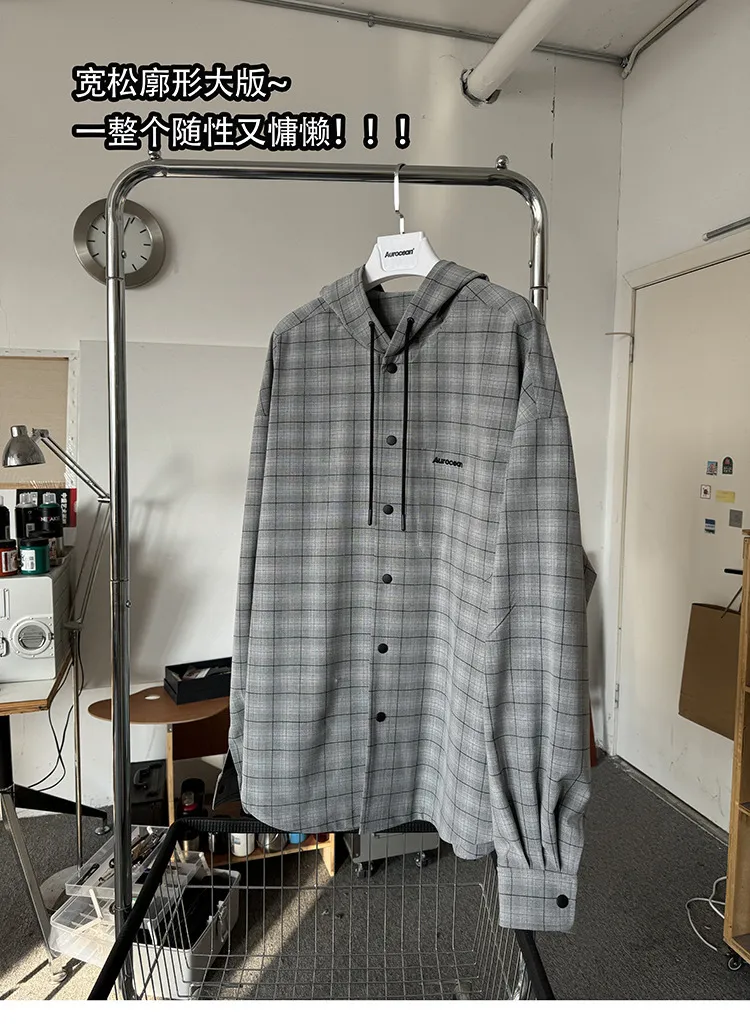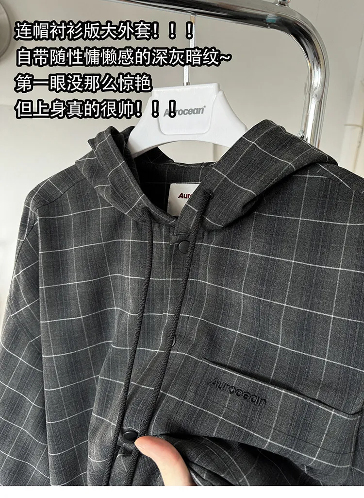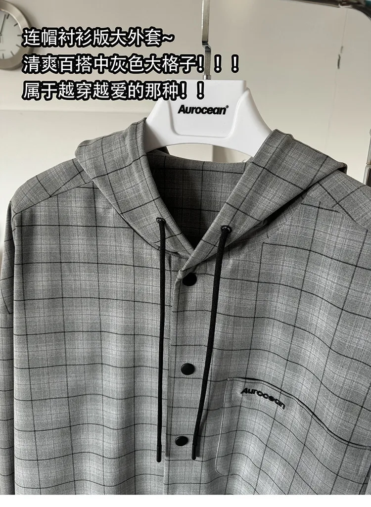 AUROCEAN OS 格紋 防風 連帽 外套(深灰/淺灰)