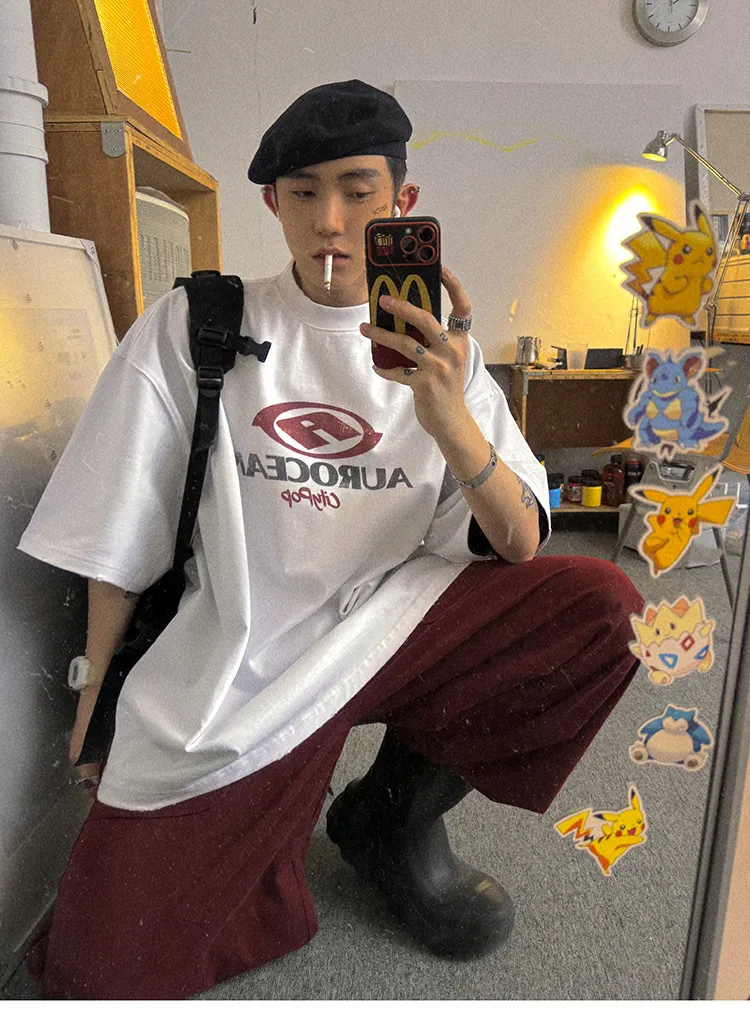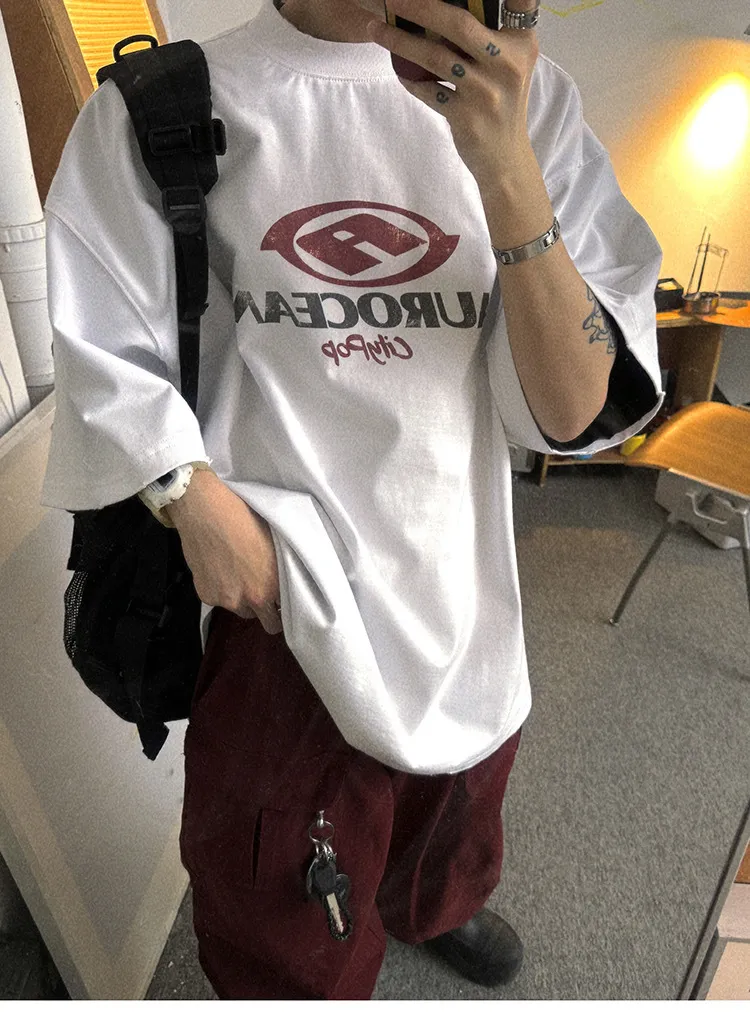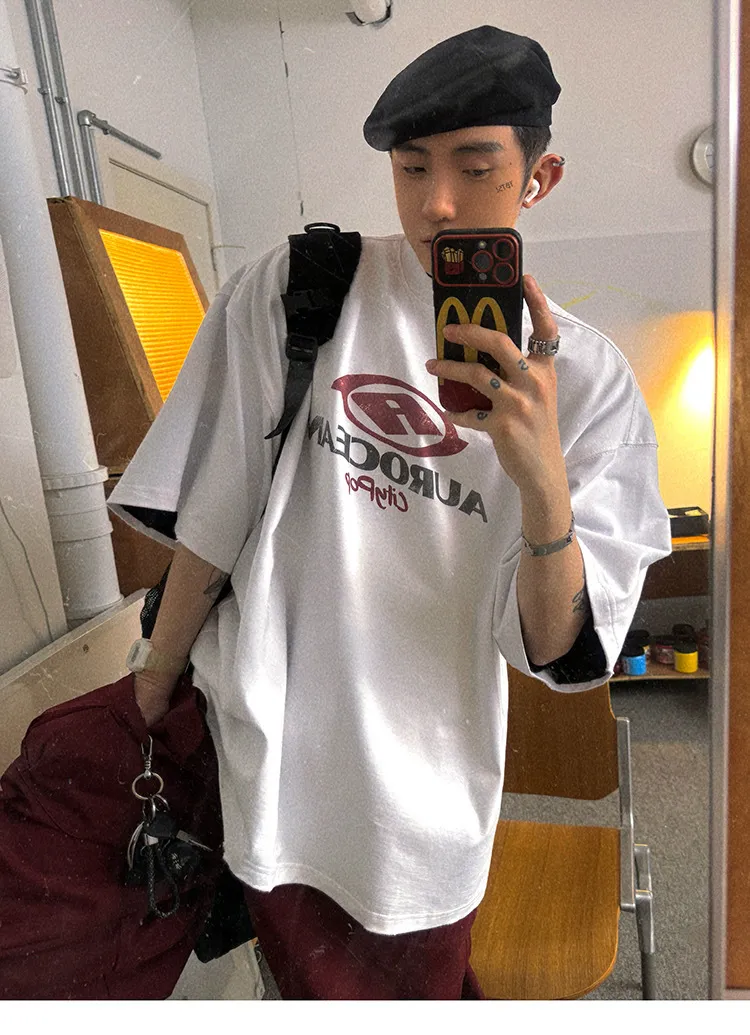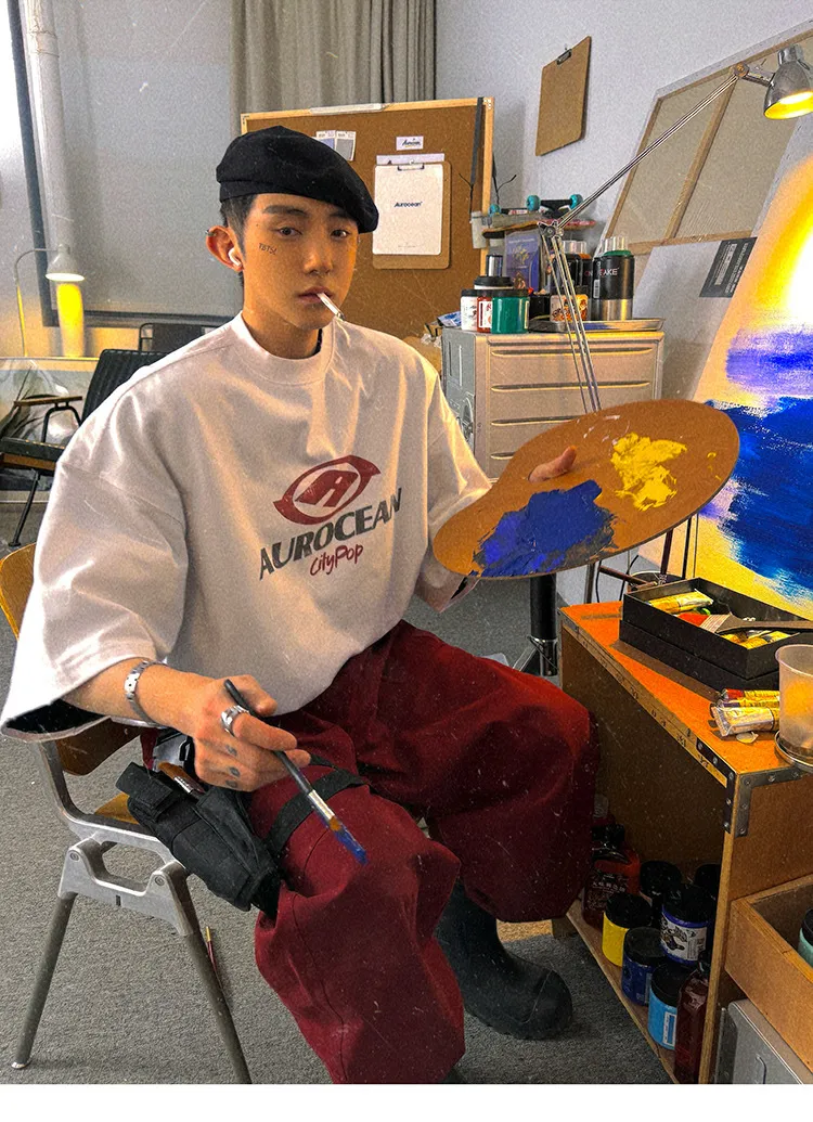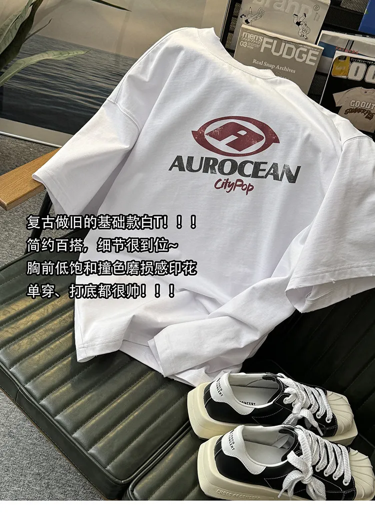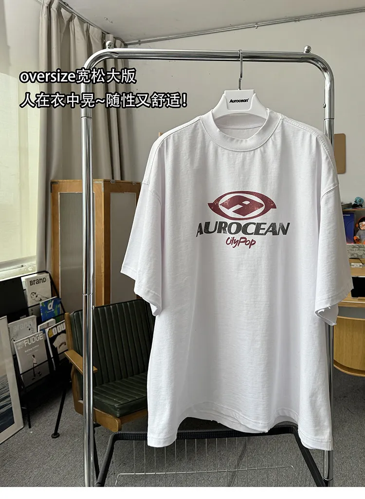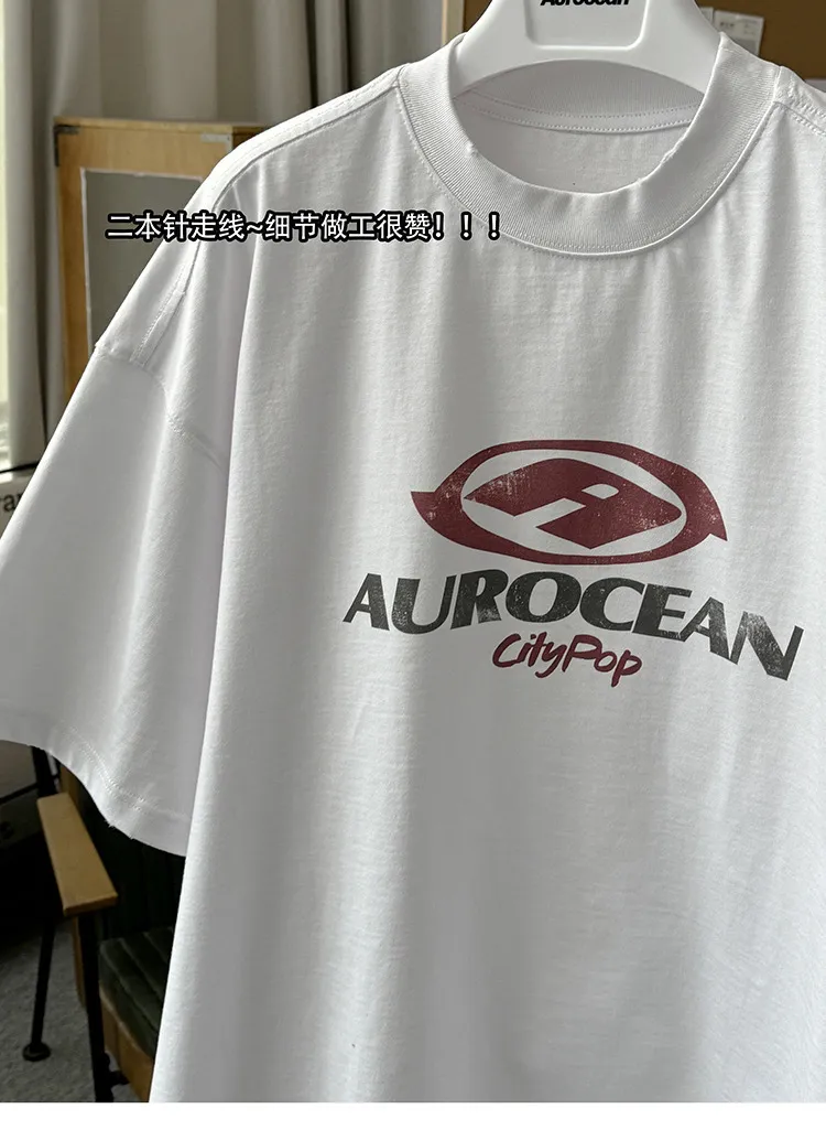 AUROCEAN citypop 做舊 復古感 logo Tee 上衣(白色)