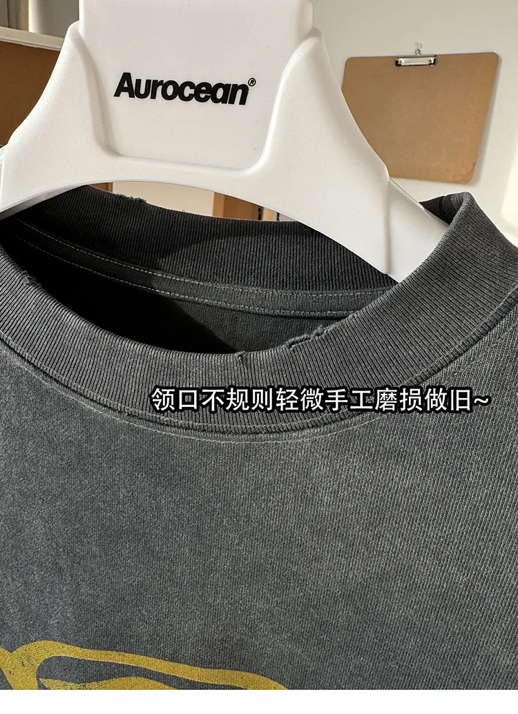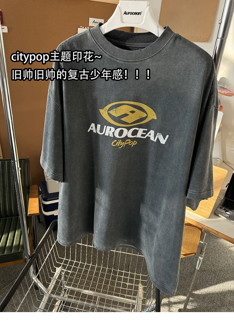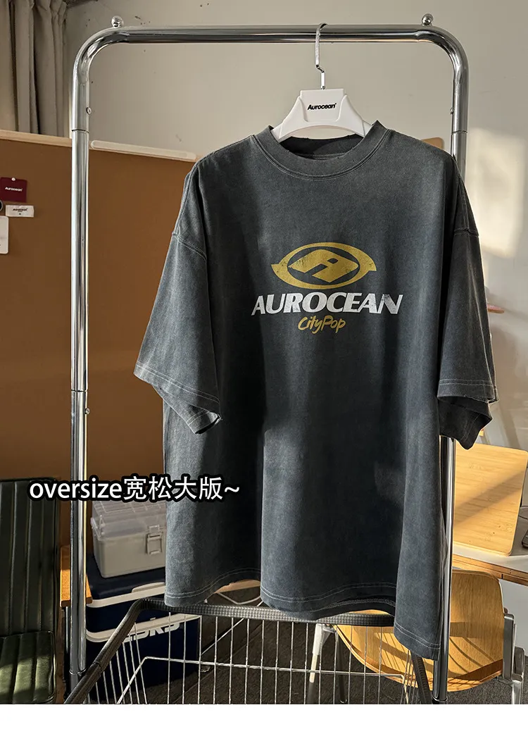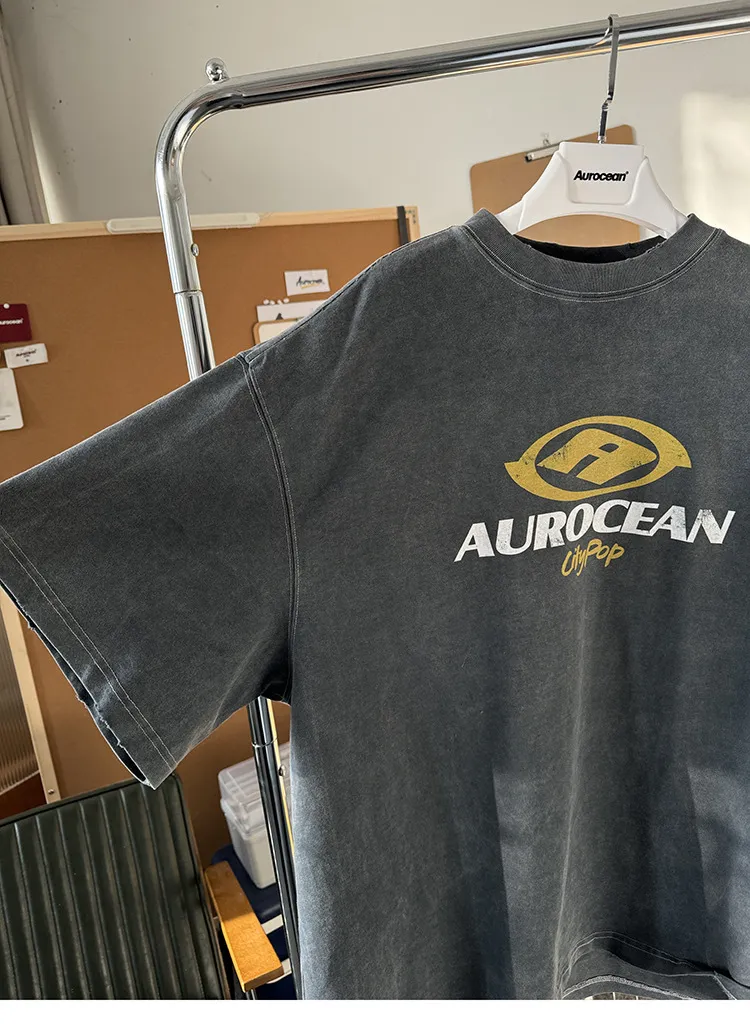 AUROCEAN citypop 做舊 復古感 logo Tee 上衣(灰色)