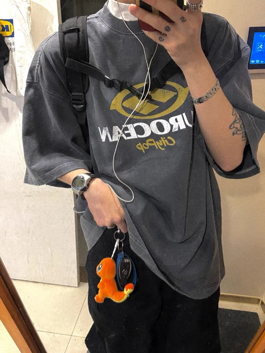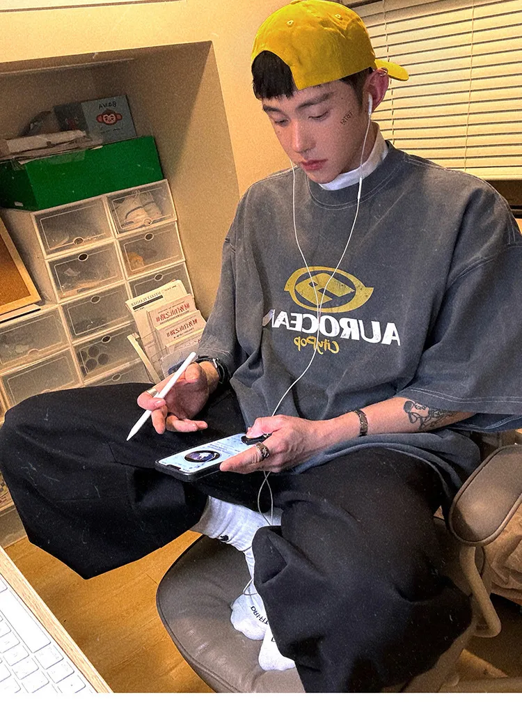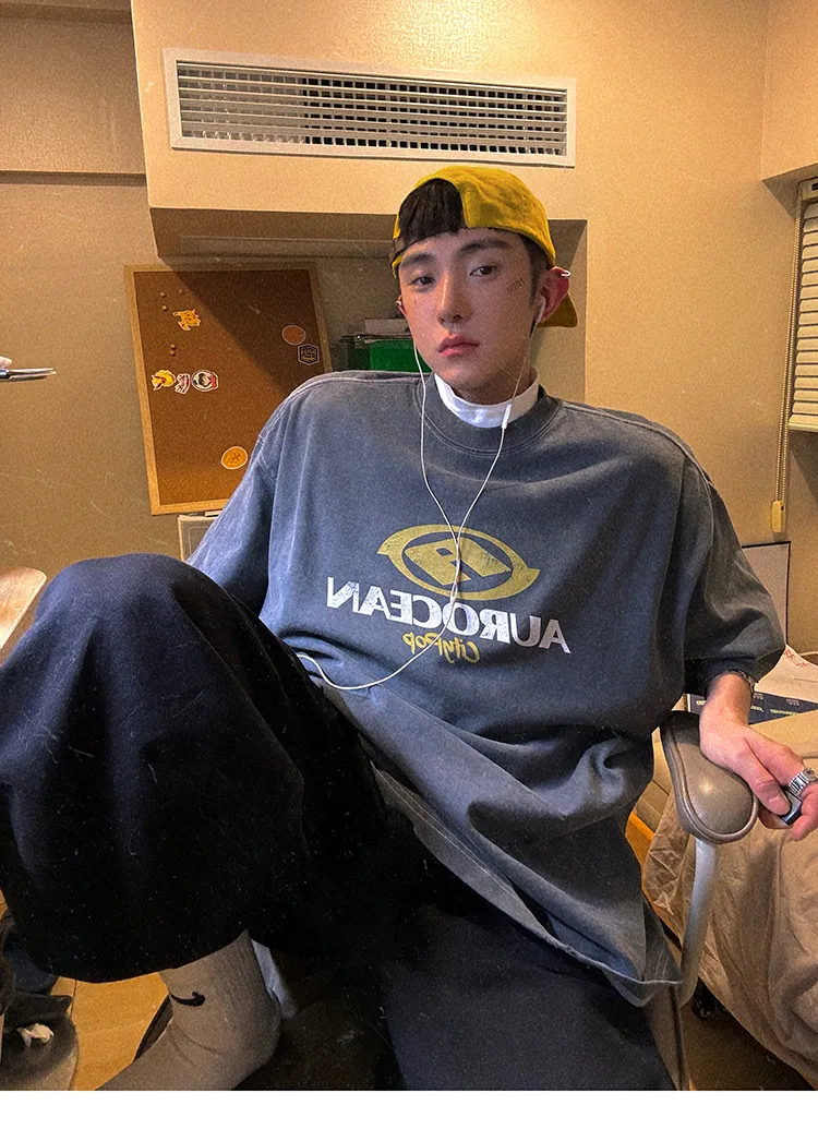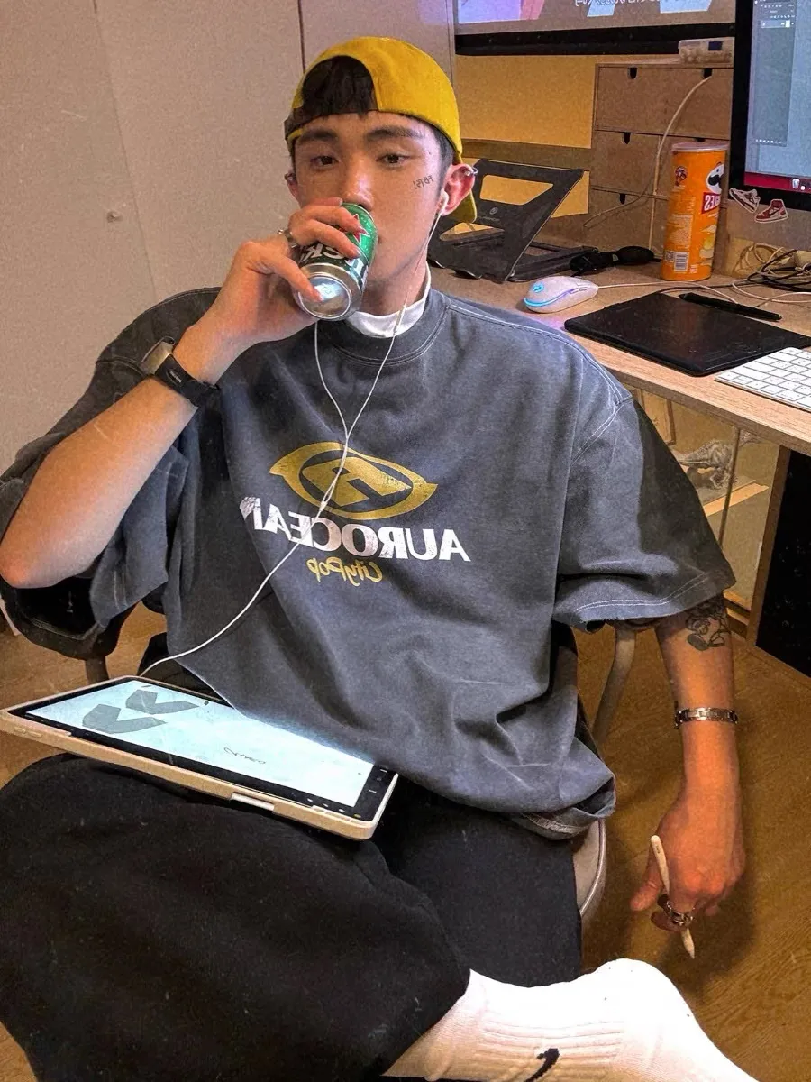 AUROCEAN citypop 做舊 復古感 logo Tee 上衣(灰色)
