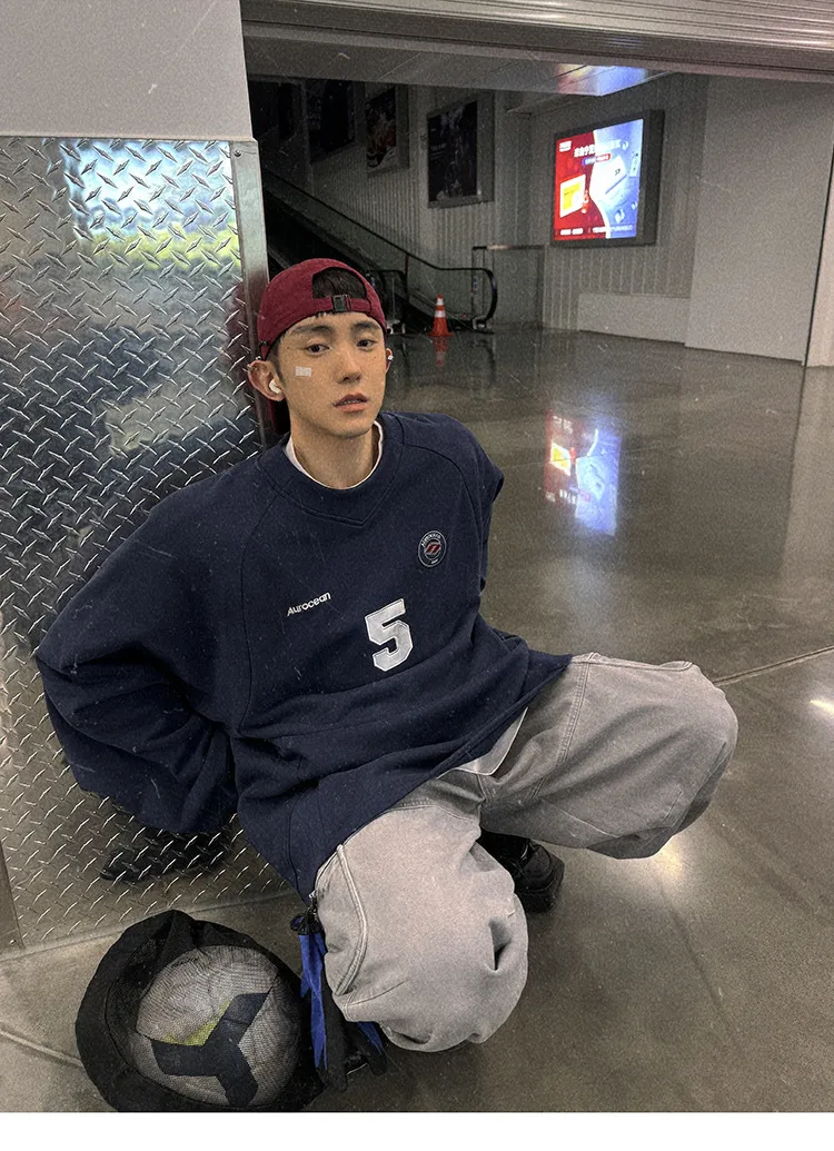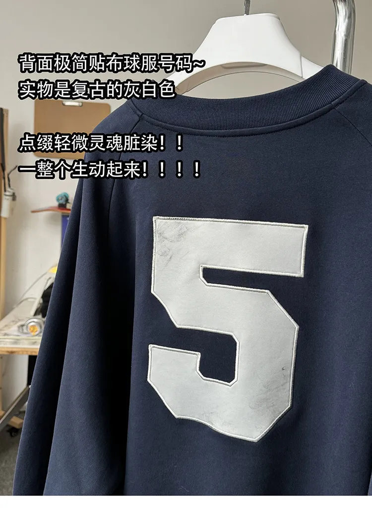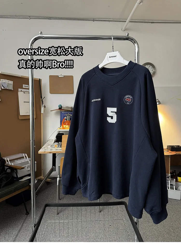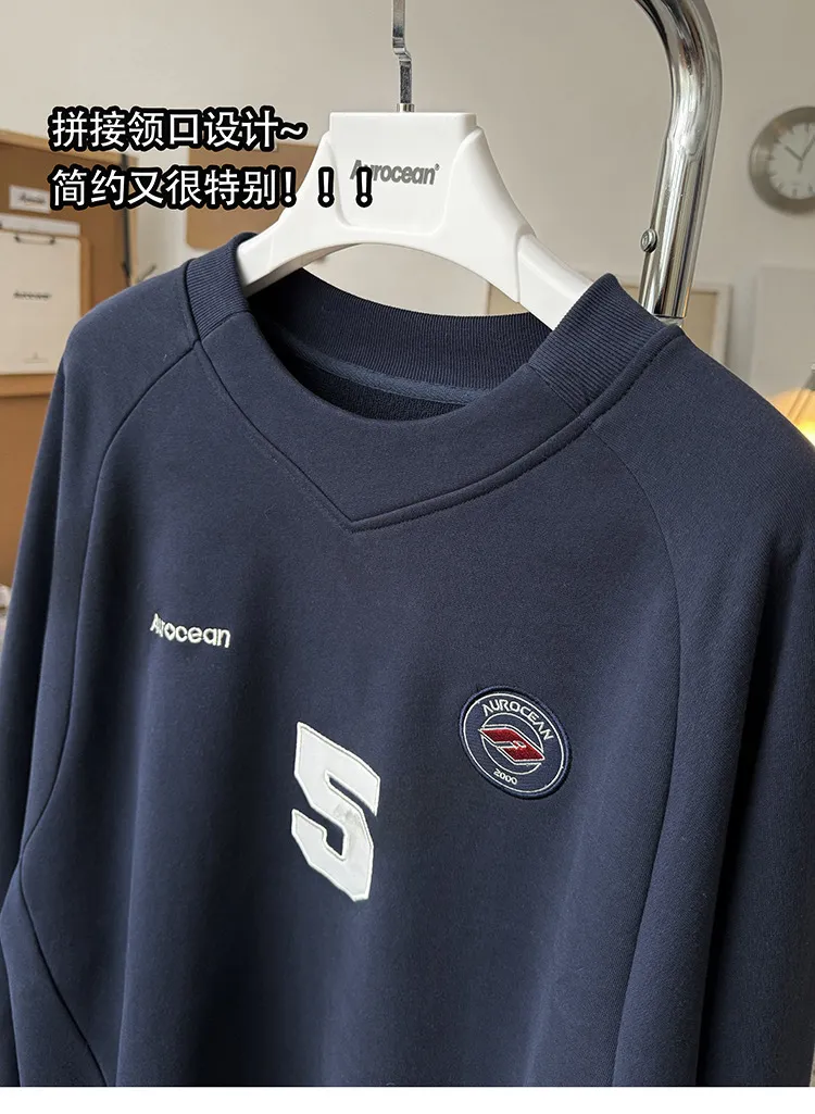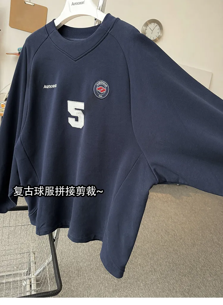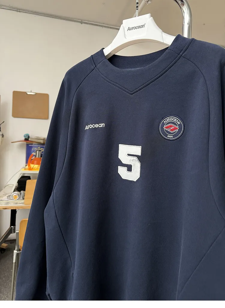 AUROCEAN 刺繡 布章 做舊 球衣 長袖(藏青)