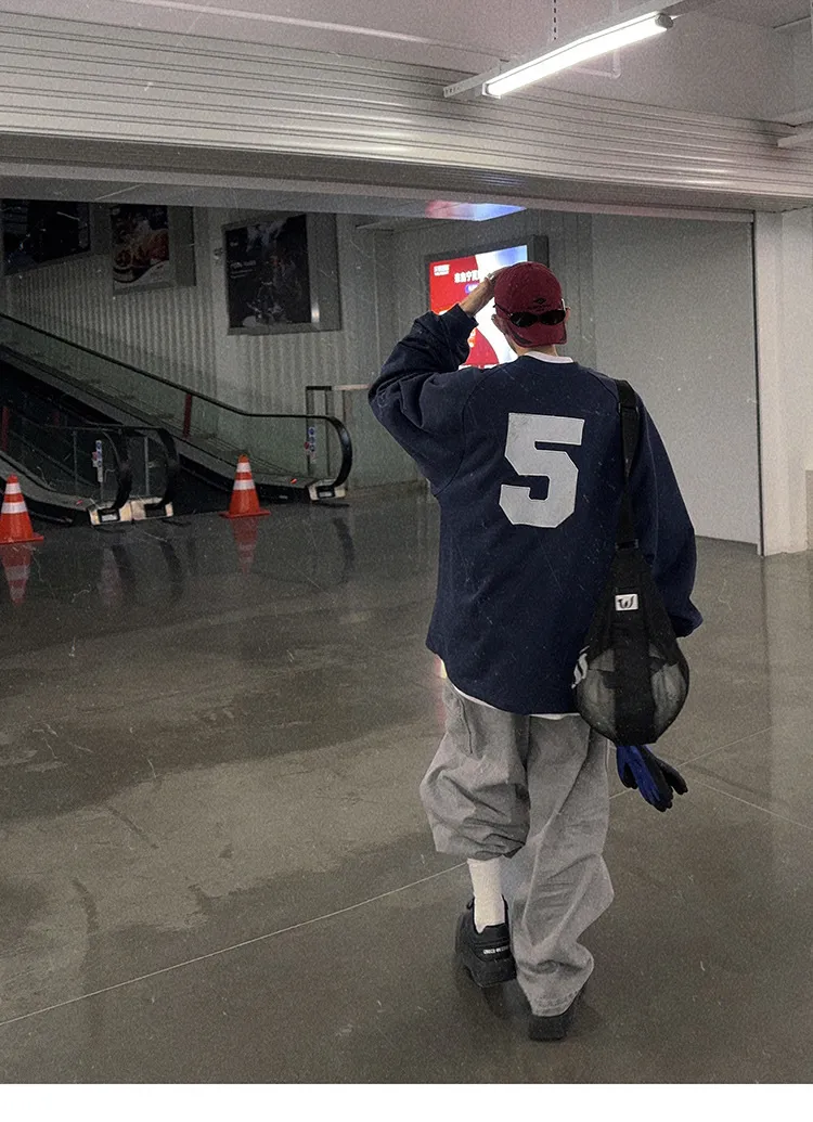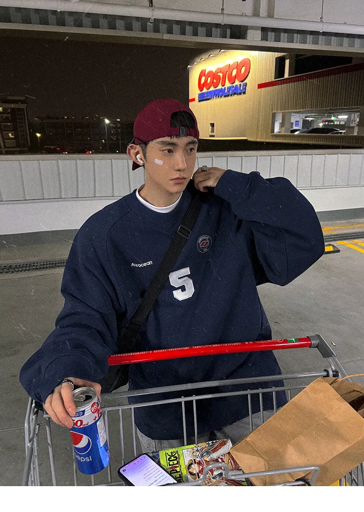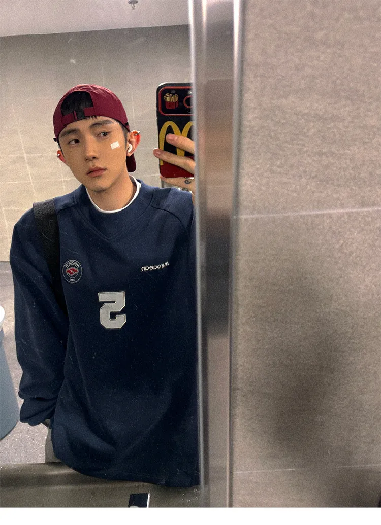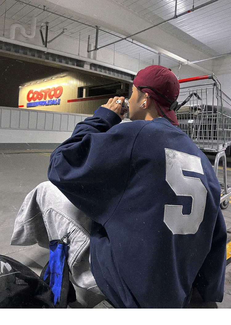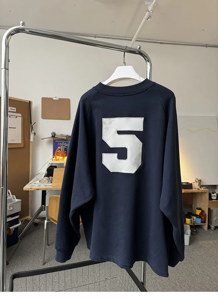 AUROCEAN 刺繡 布章 做舊 球衣 長袖(藏青)