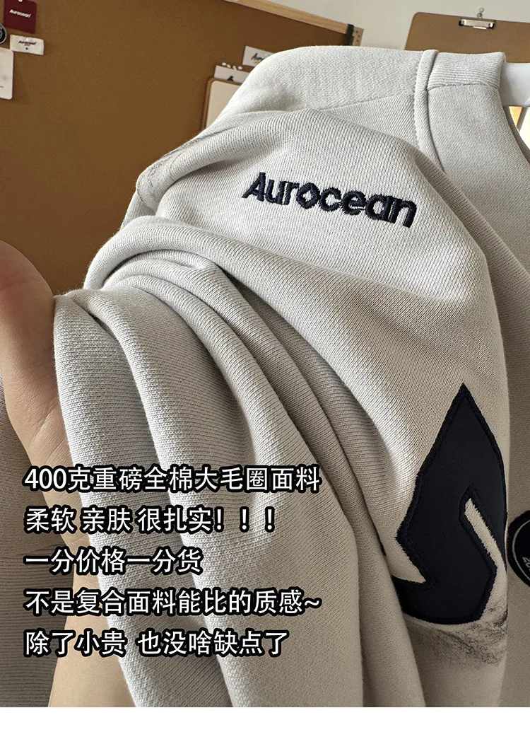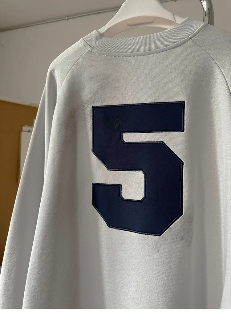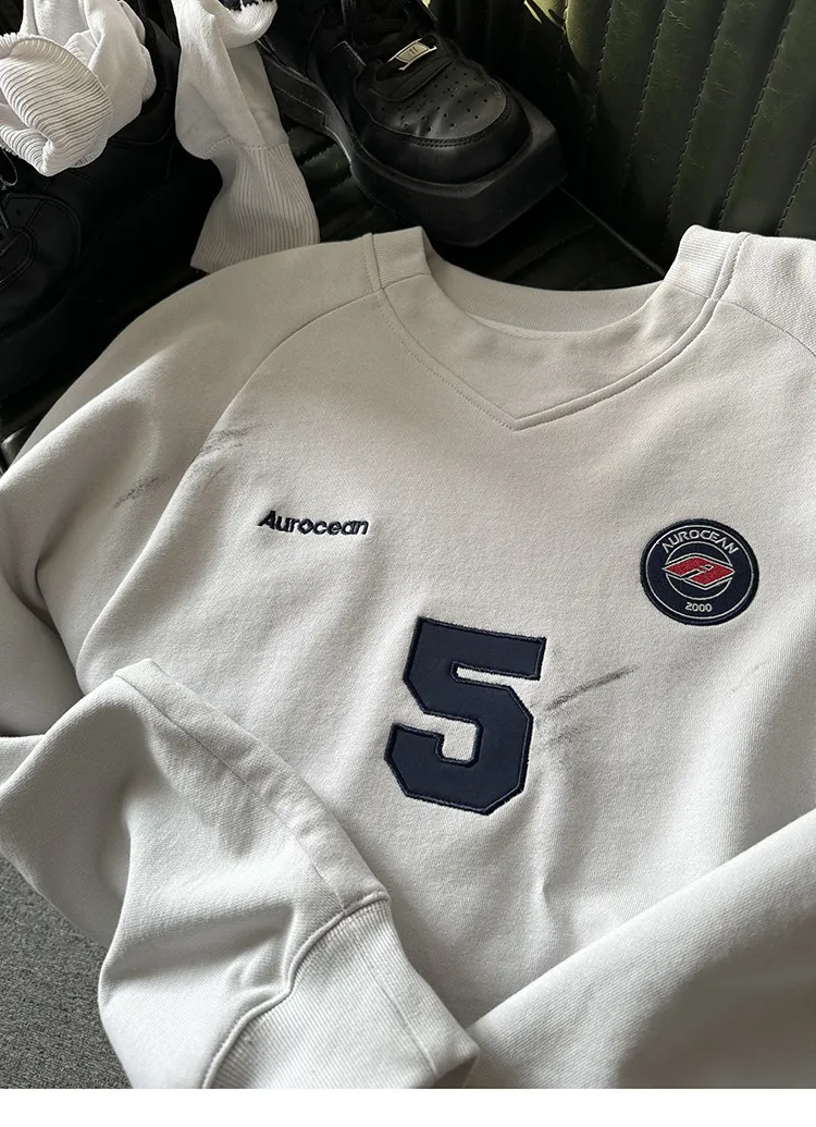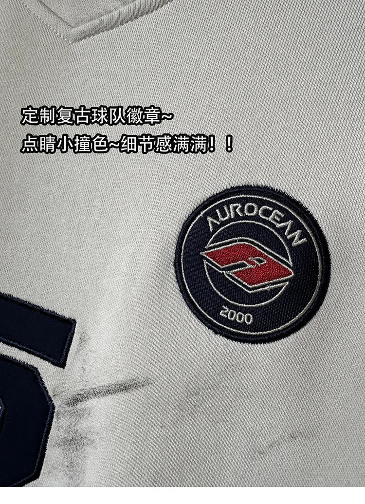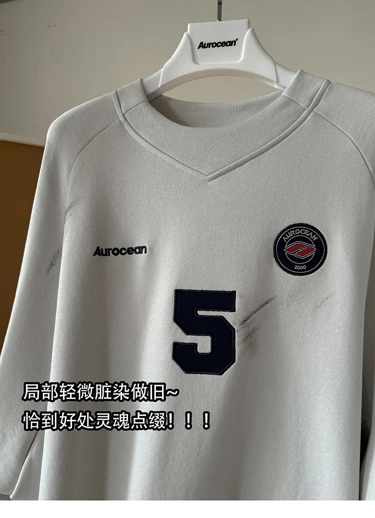 AUROCEAN 刺繡 布章 做舊 球衣 長袖(白色)