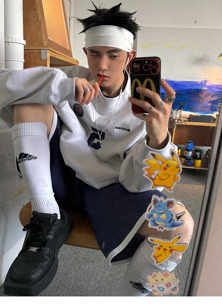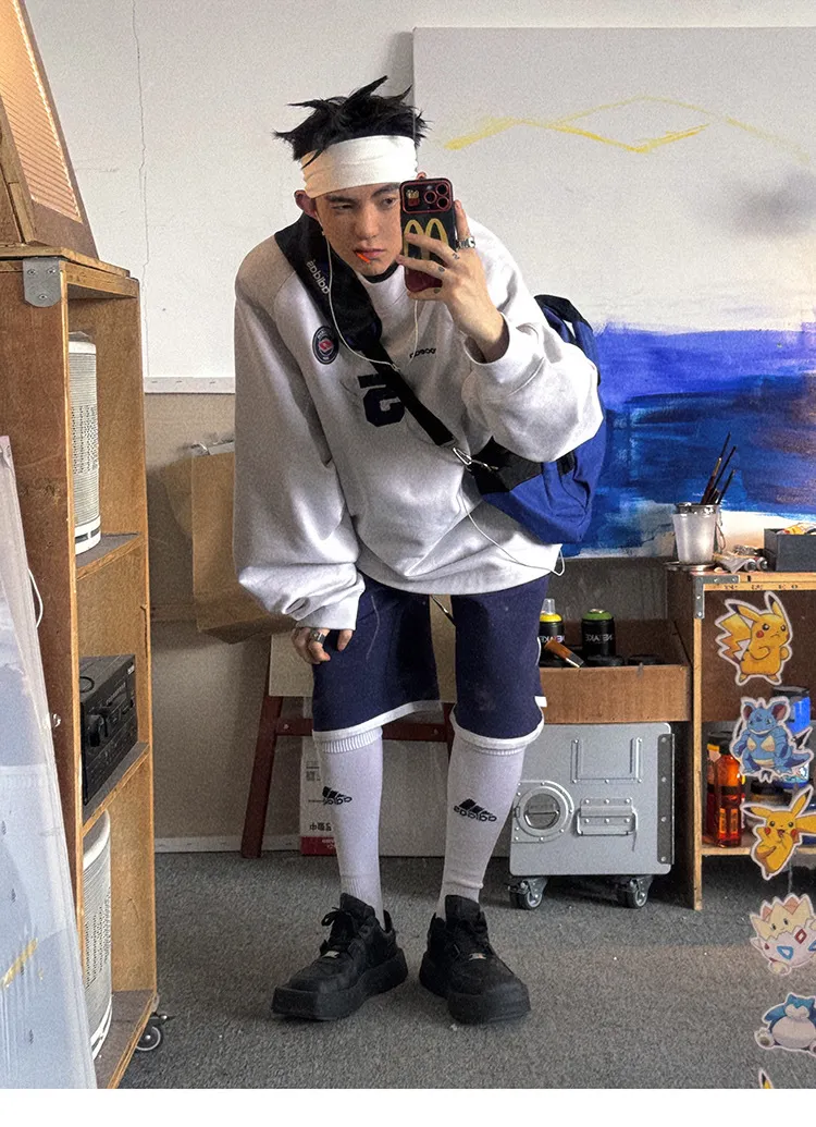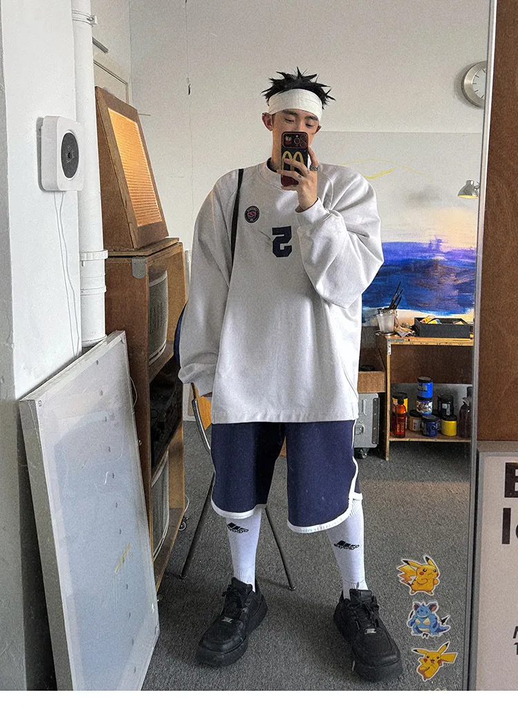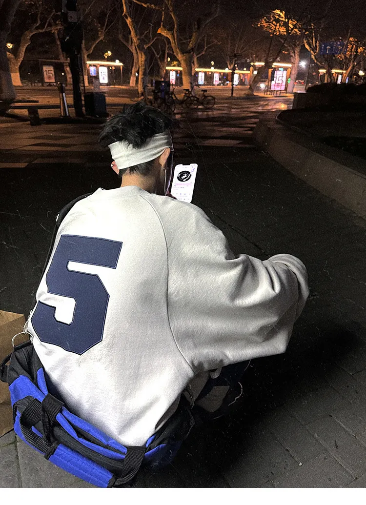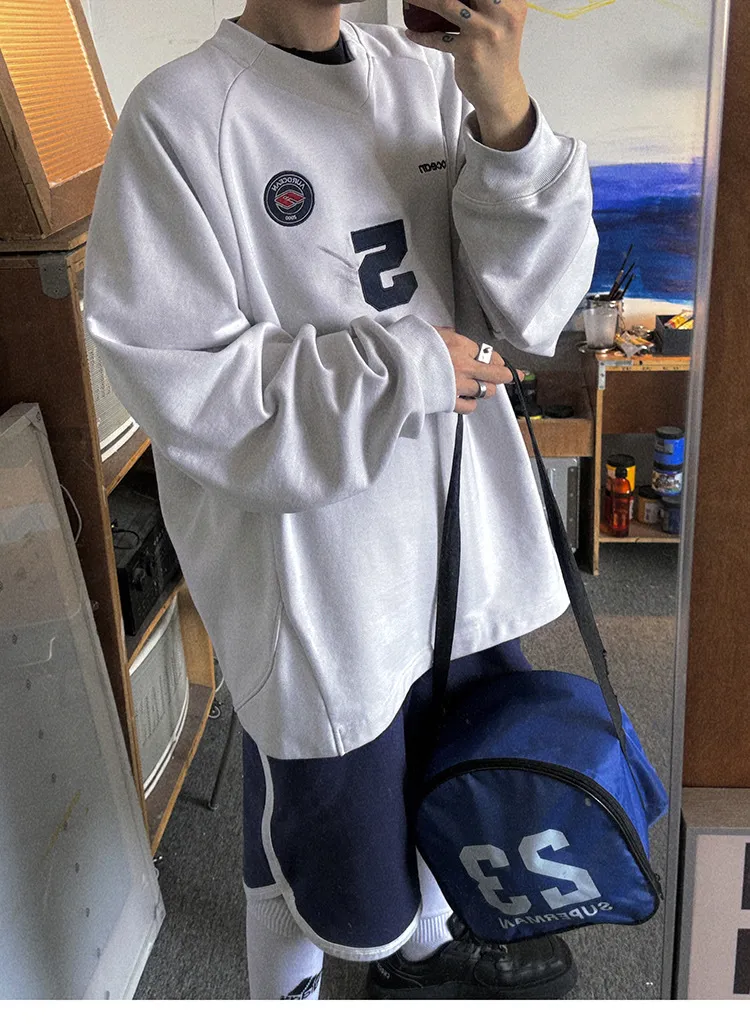 AUROCEAN 刺繡 布章 做舊 球衣 長袖(白色)
