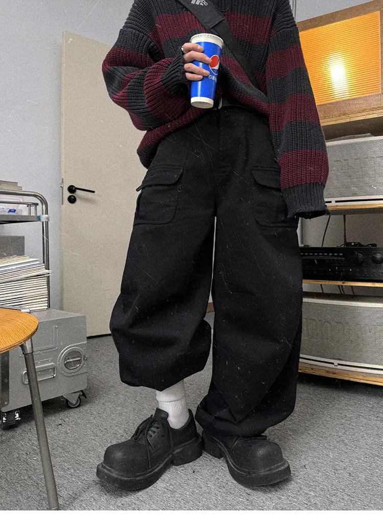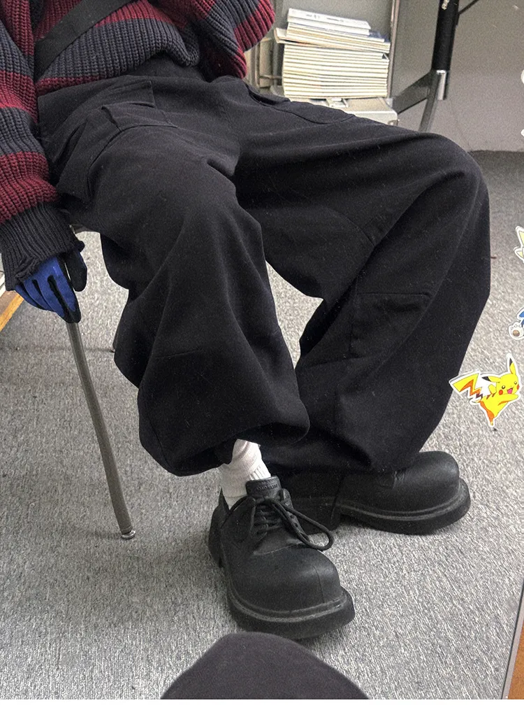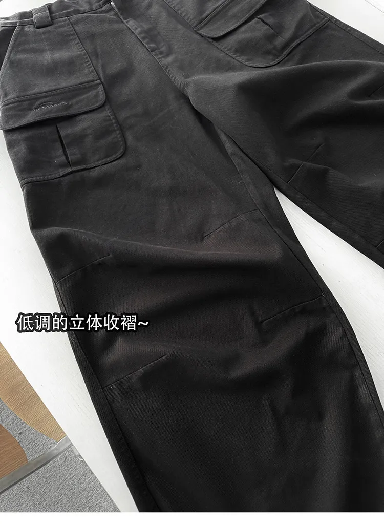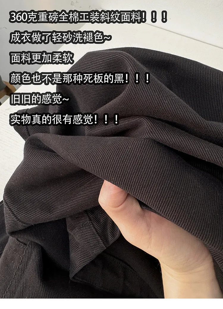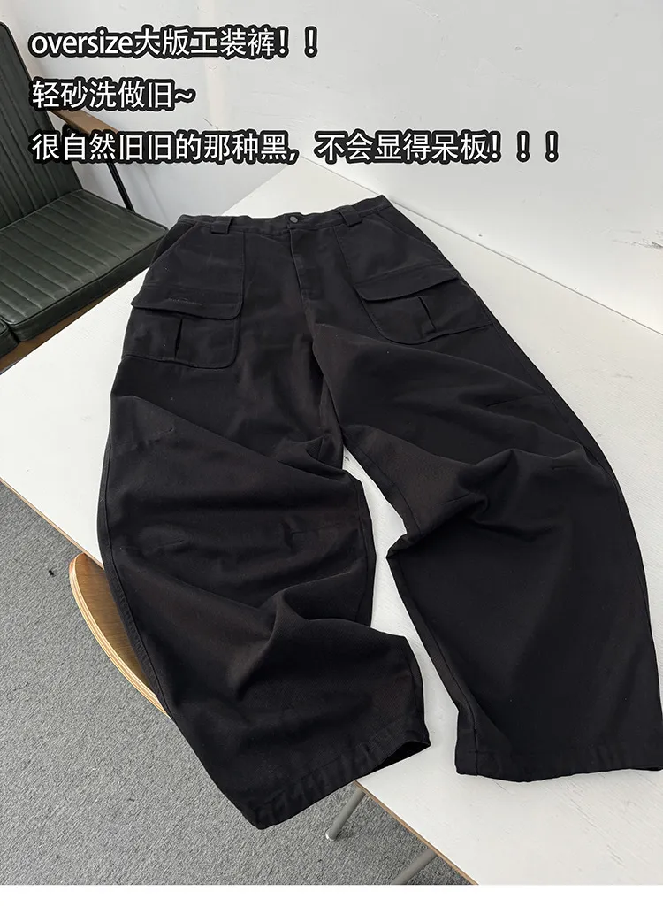 AUROCEAN 砂洗黑 做舊 寬鬆 闊腿褲 堆堆褲