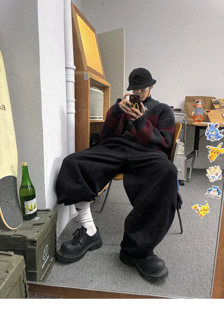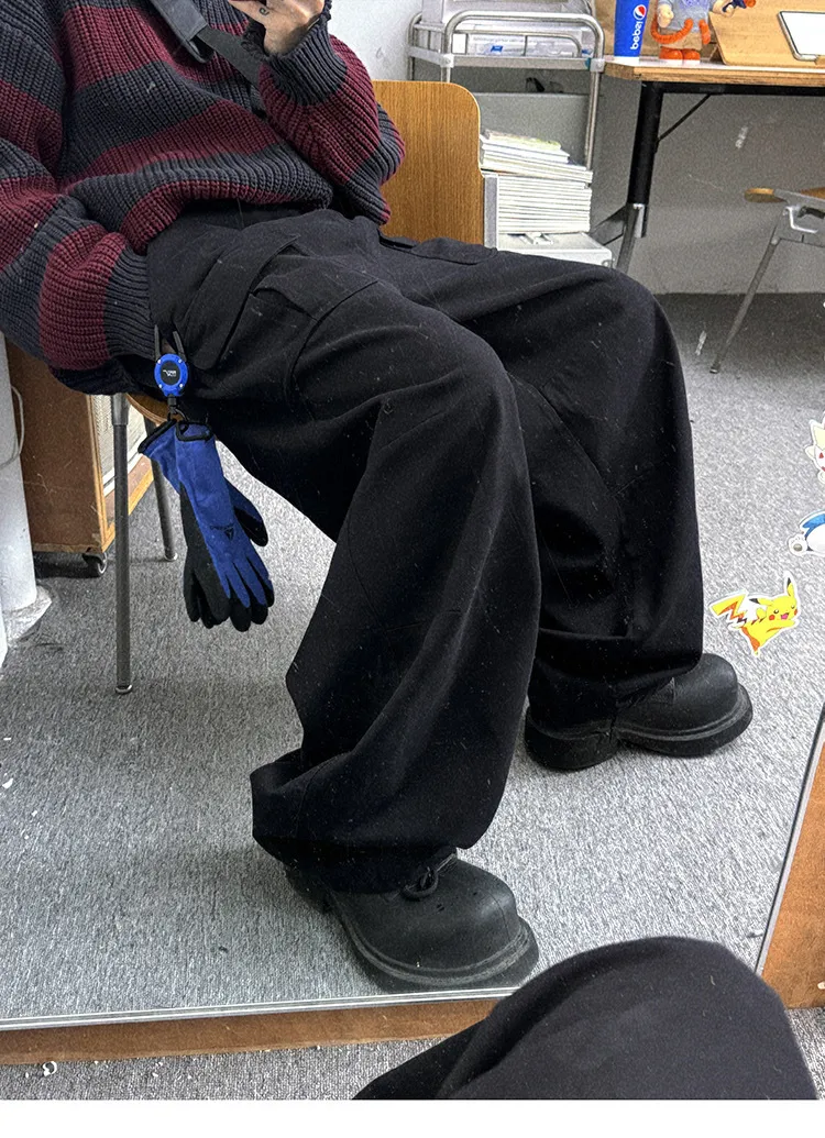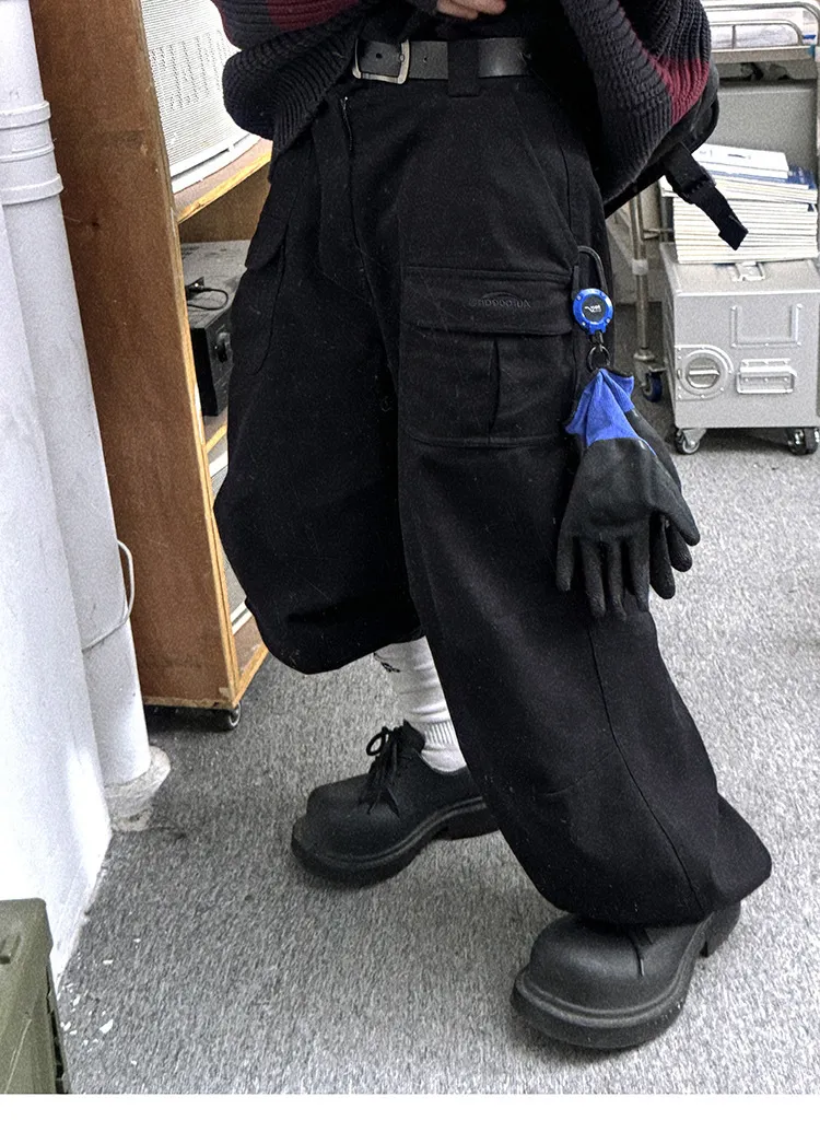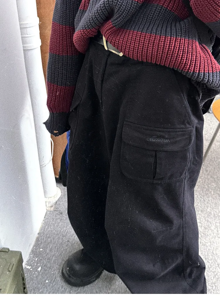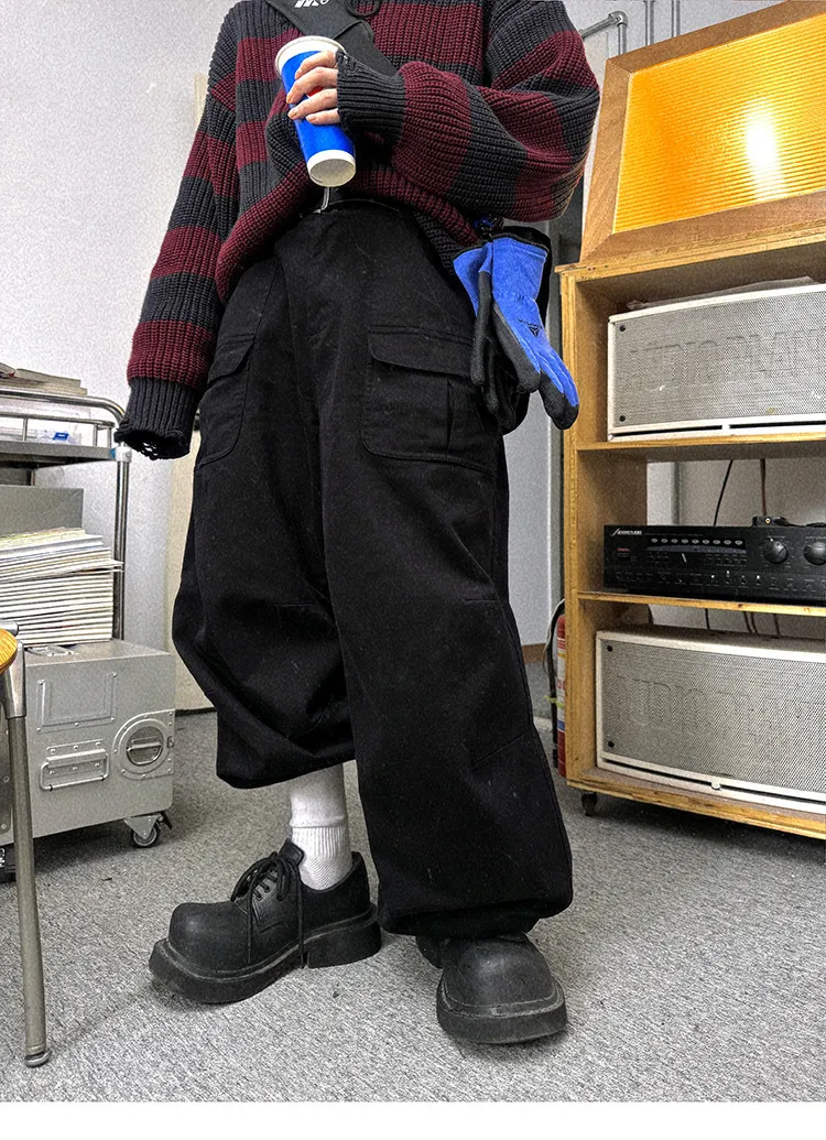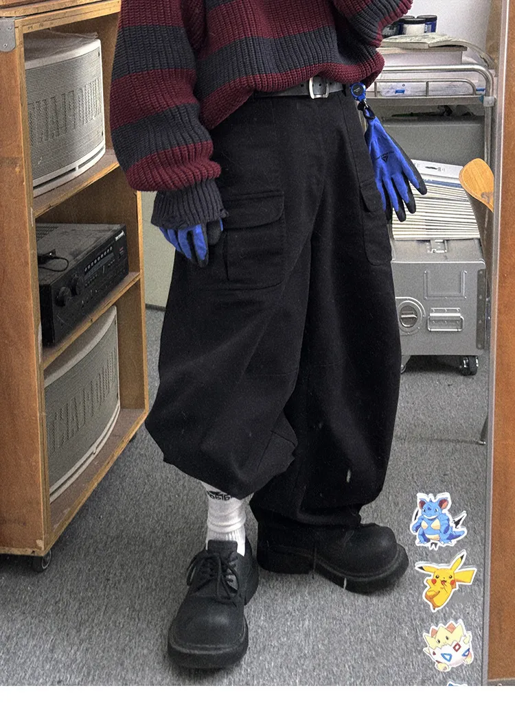 AUROCEAN 砂洗黑 做舊 寬鬆 闊腿褲 堆堆褲