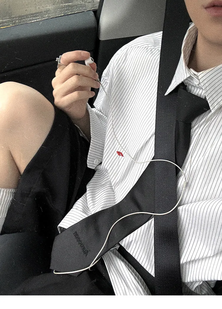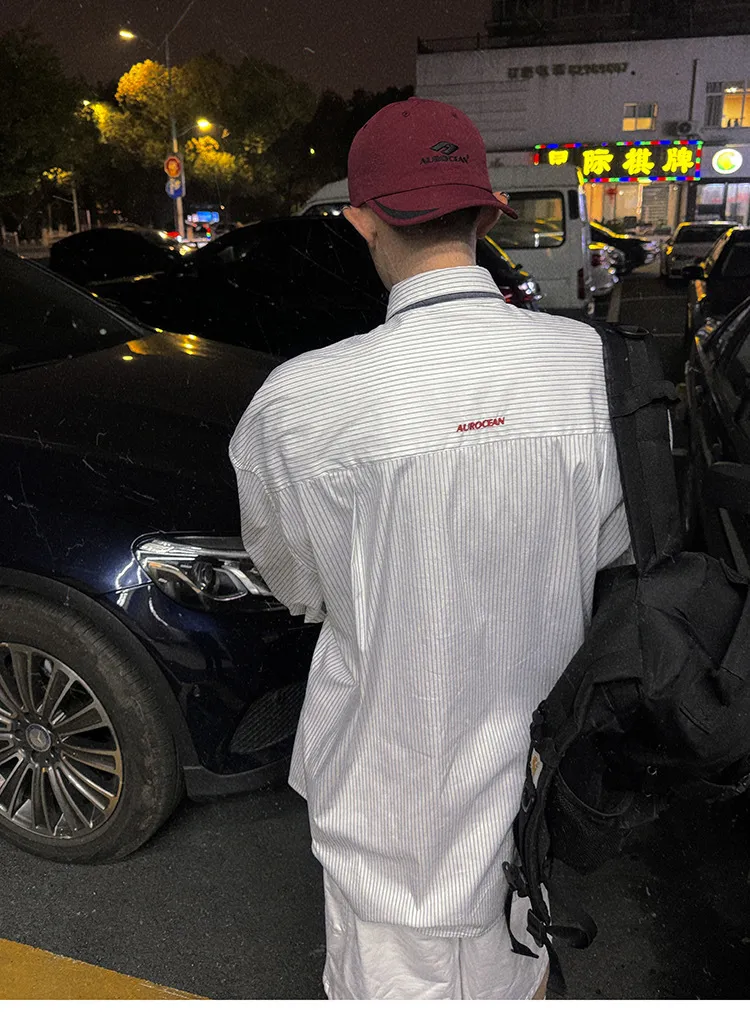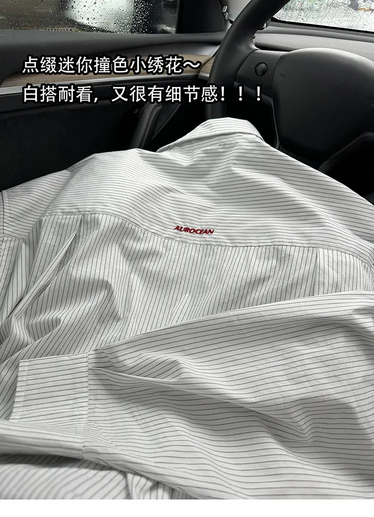 AUROCEAN 寬鬆廓形 條紋 學院風 長袖 襯衫(白色)