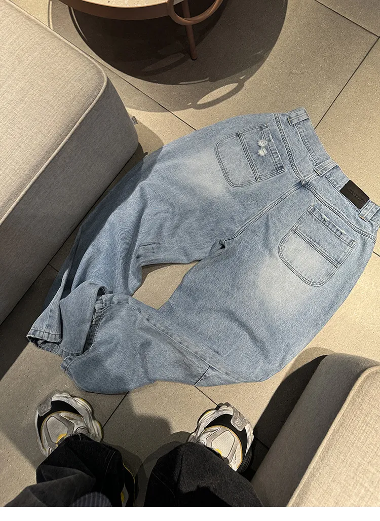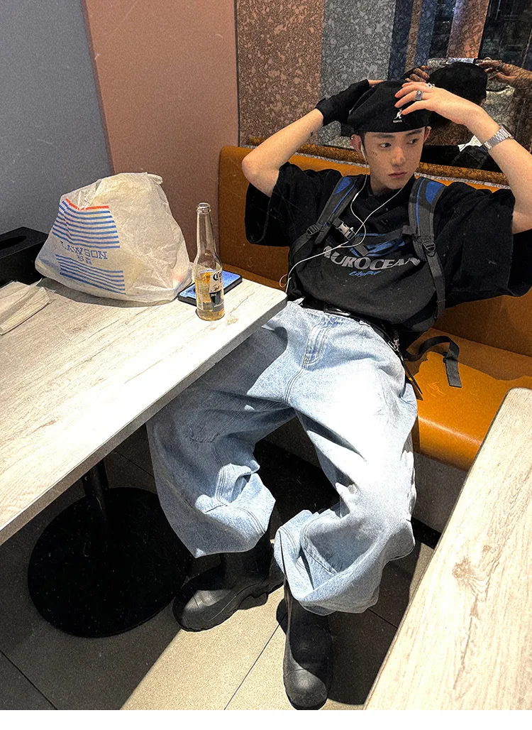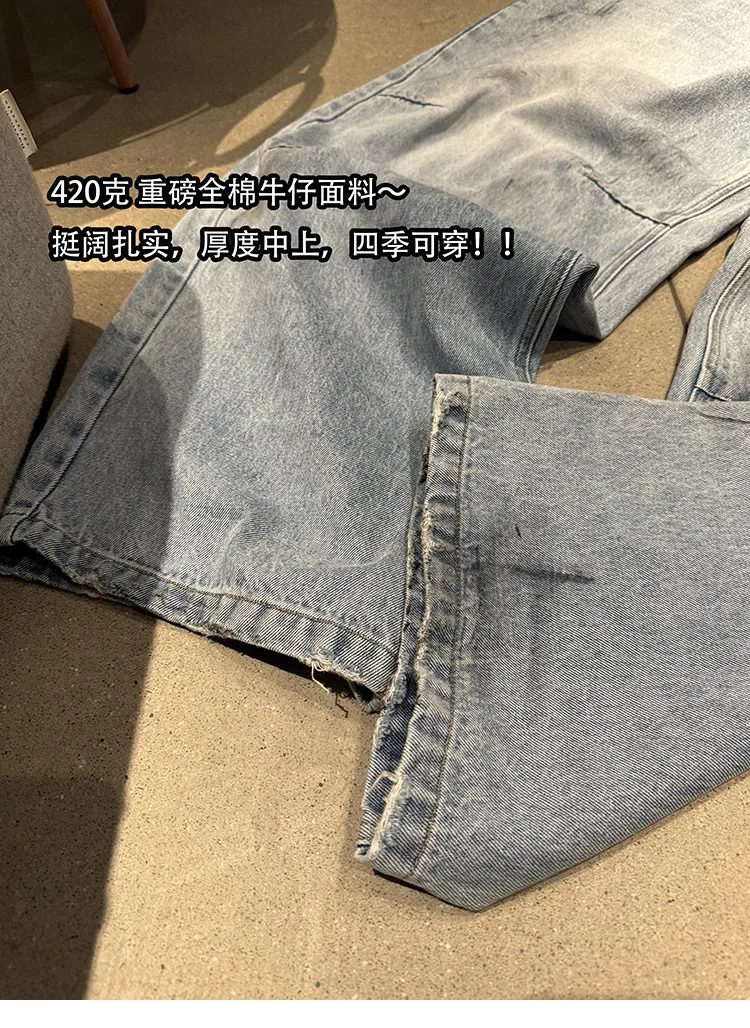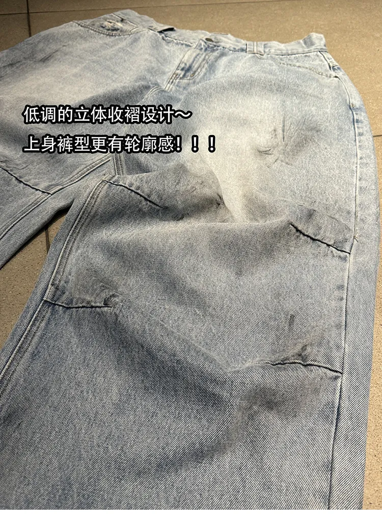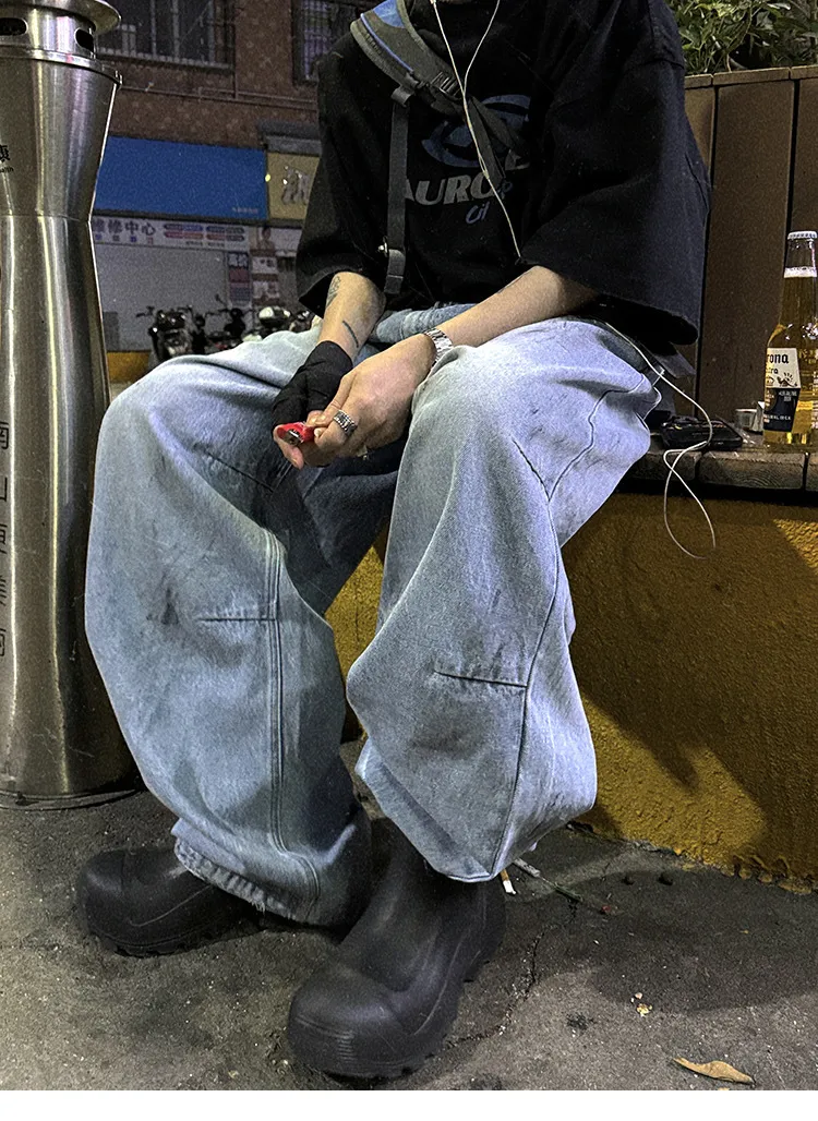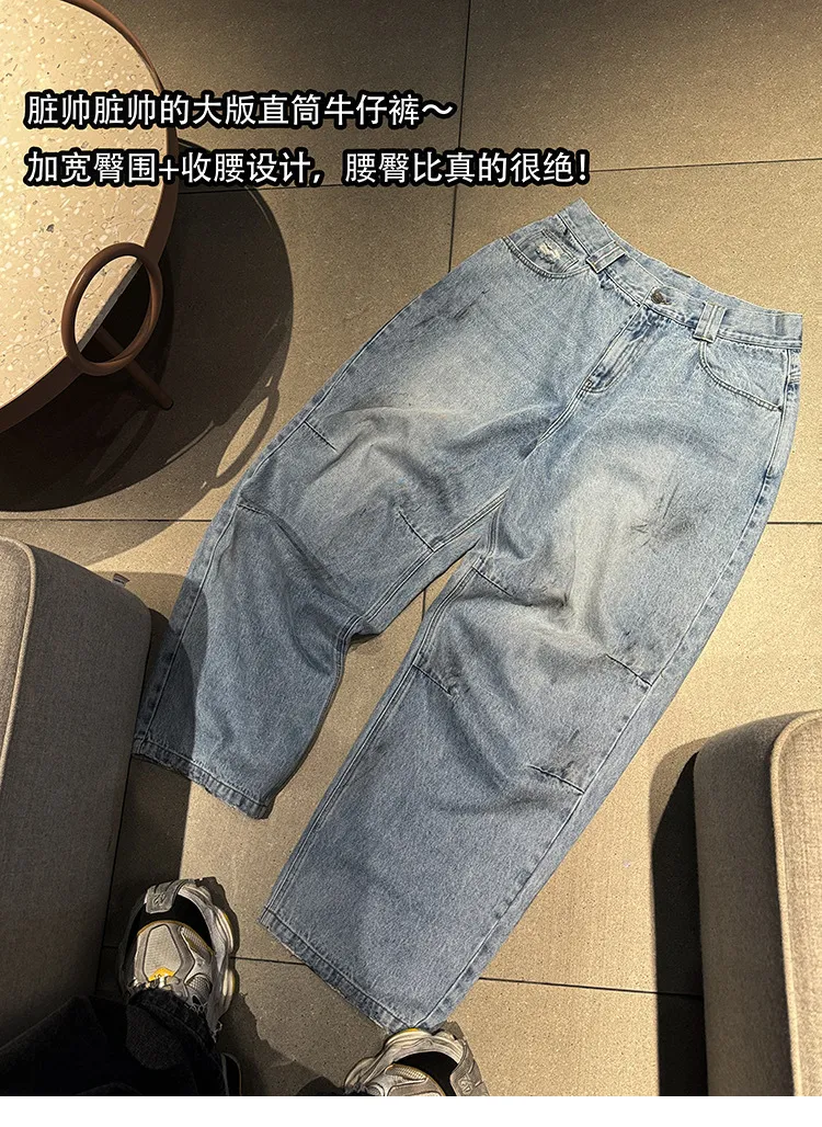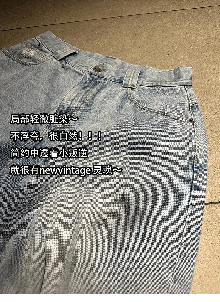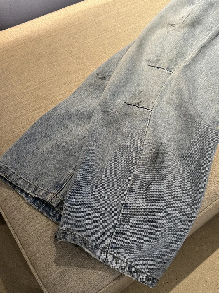 AUROCEAN 廓形 髒染做舊 牛仔褲