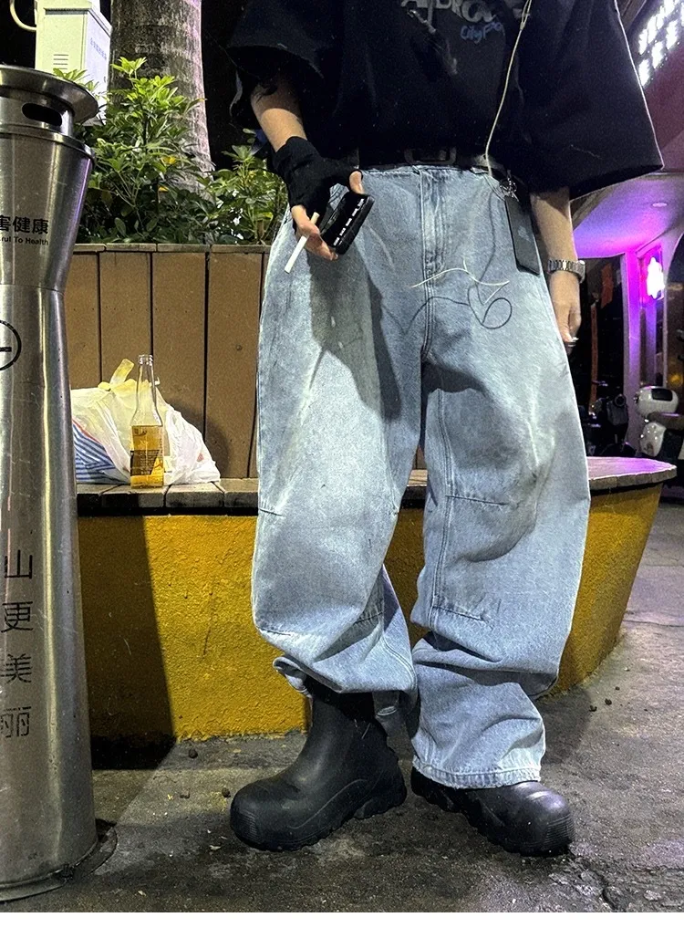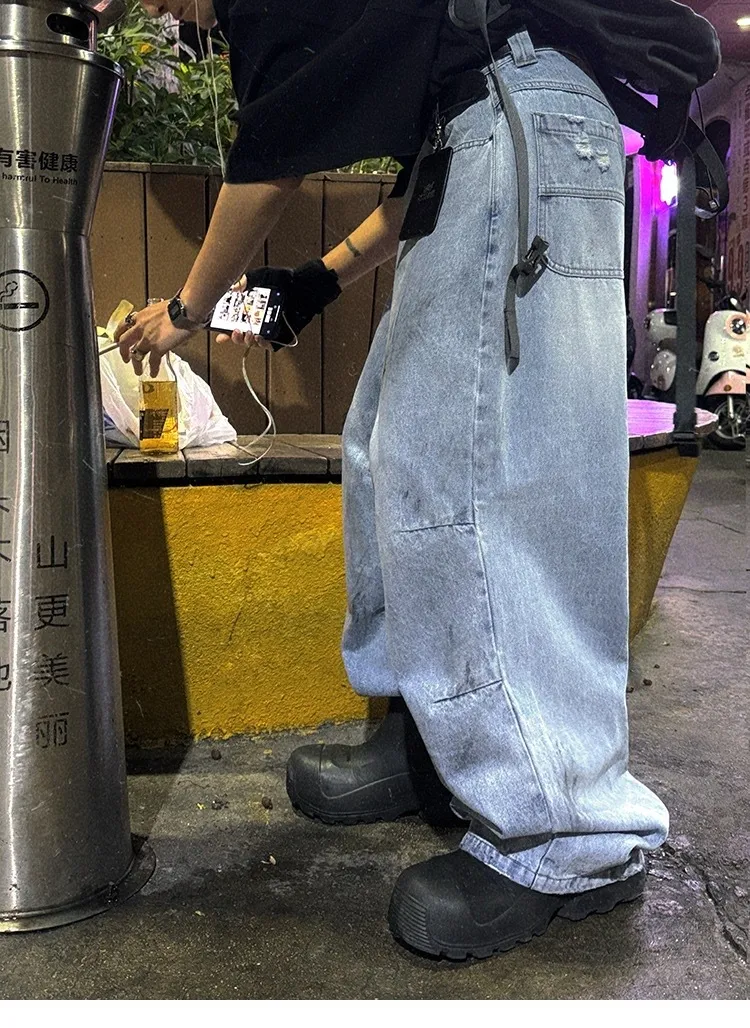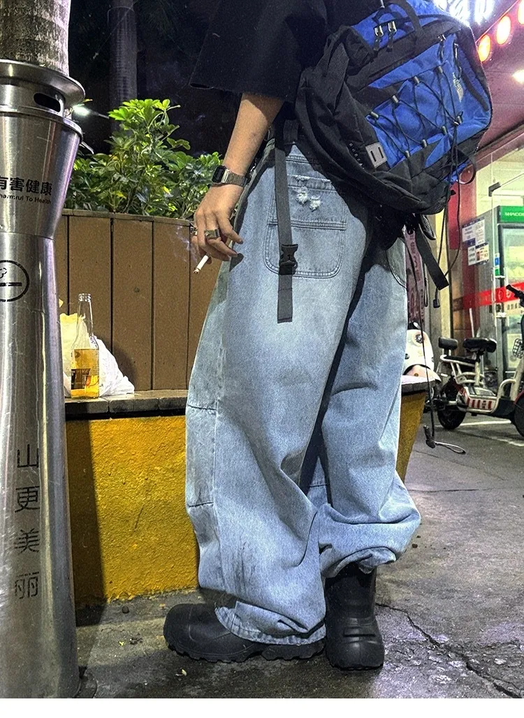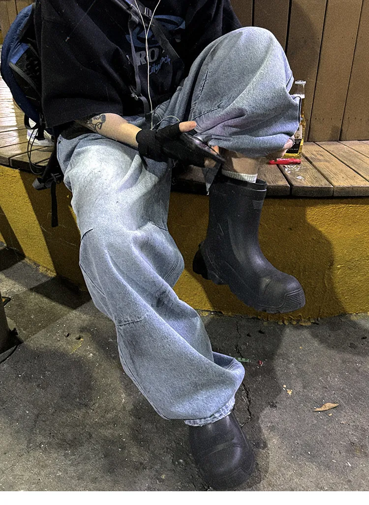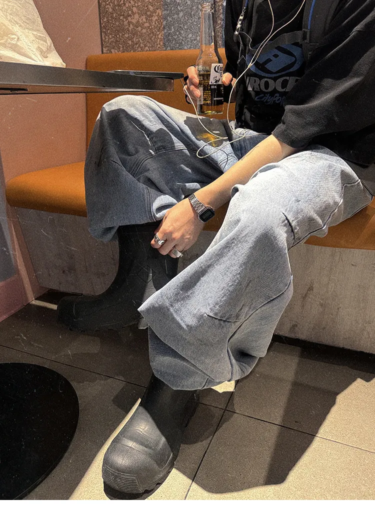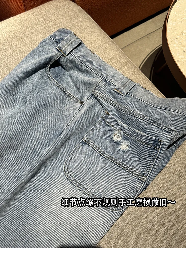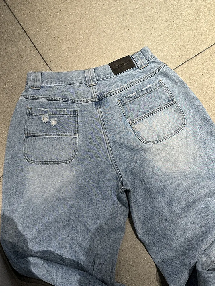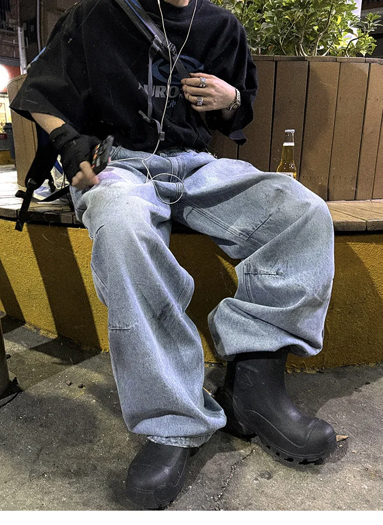 AUROCEAN 廓形 髒染做舊 牛仔褲