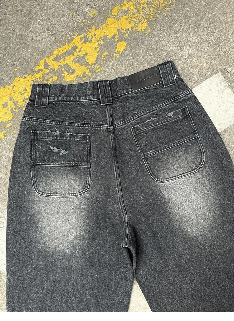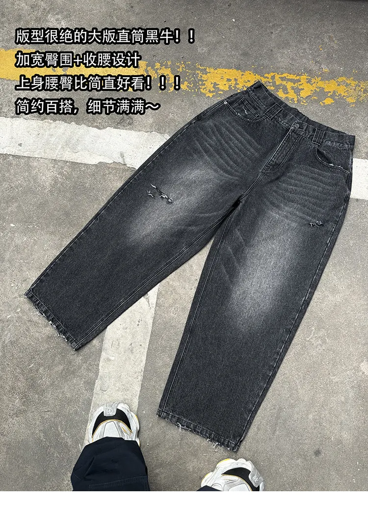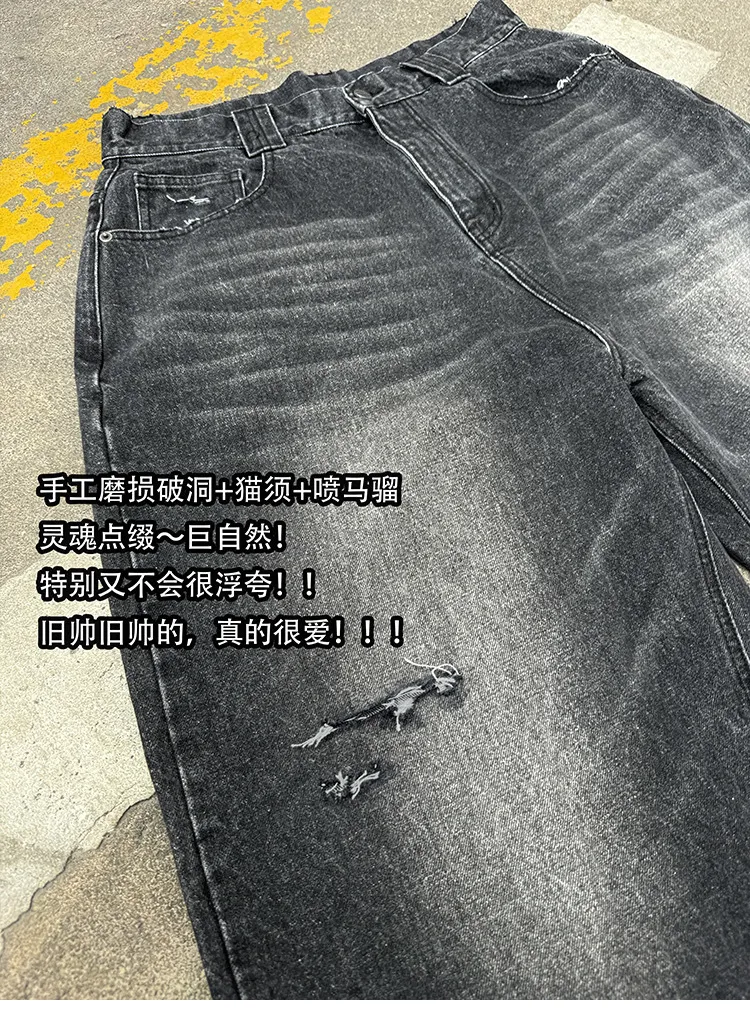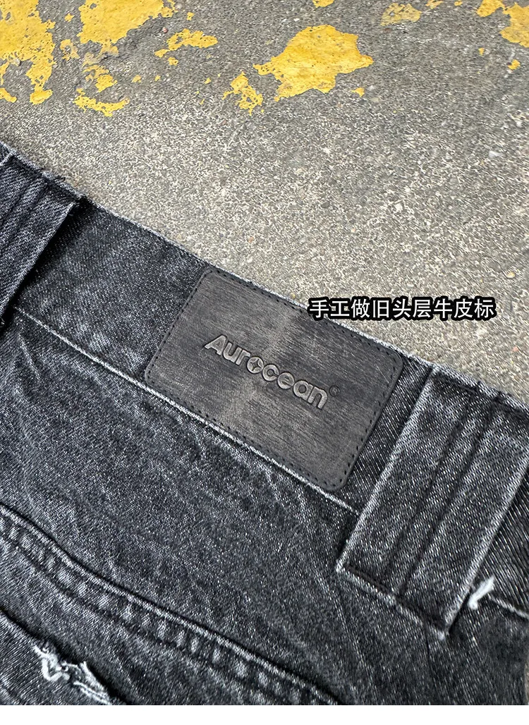 AUROCEAN 手工破壞 百搭 牛仔褲