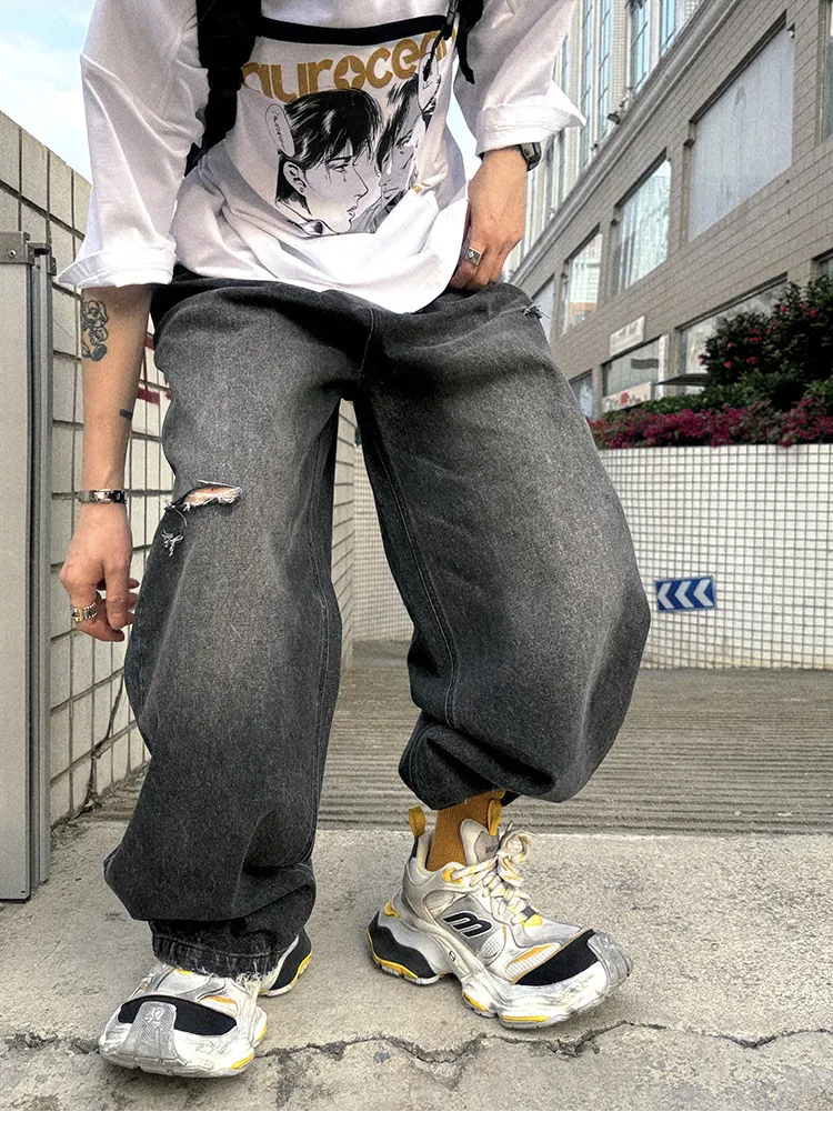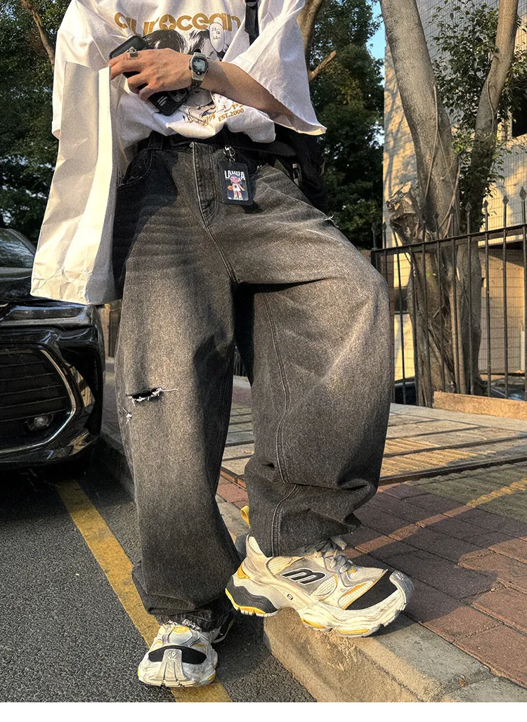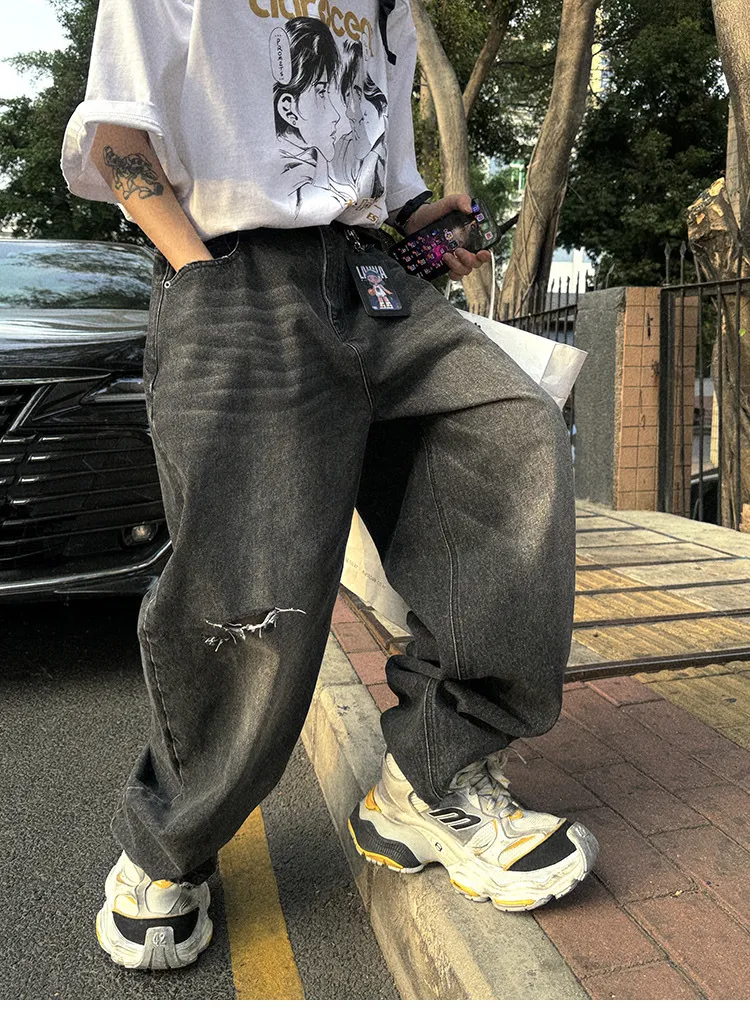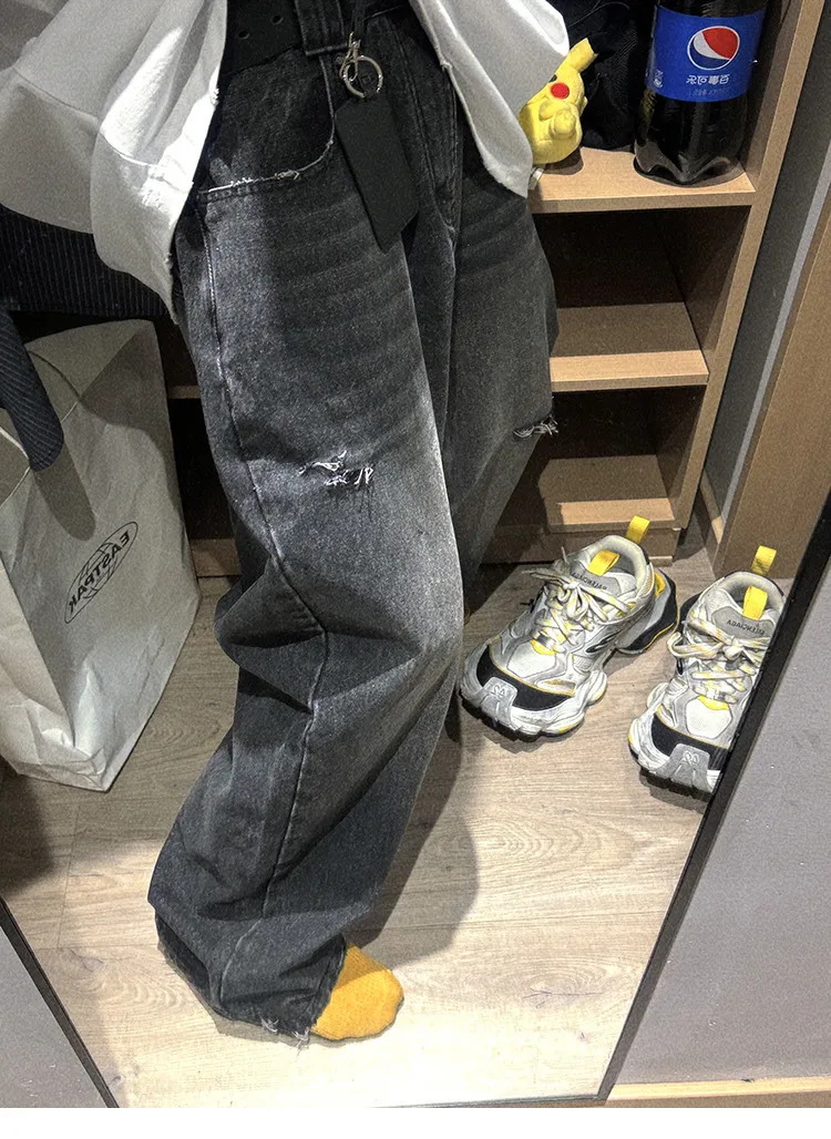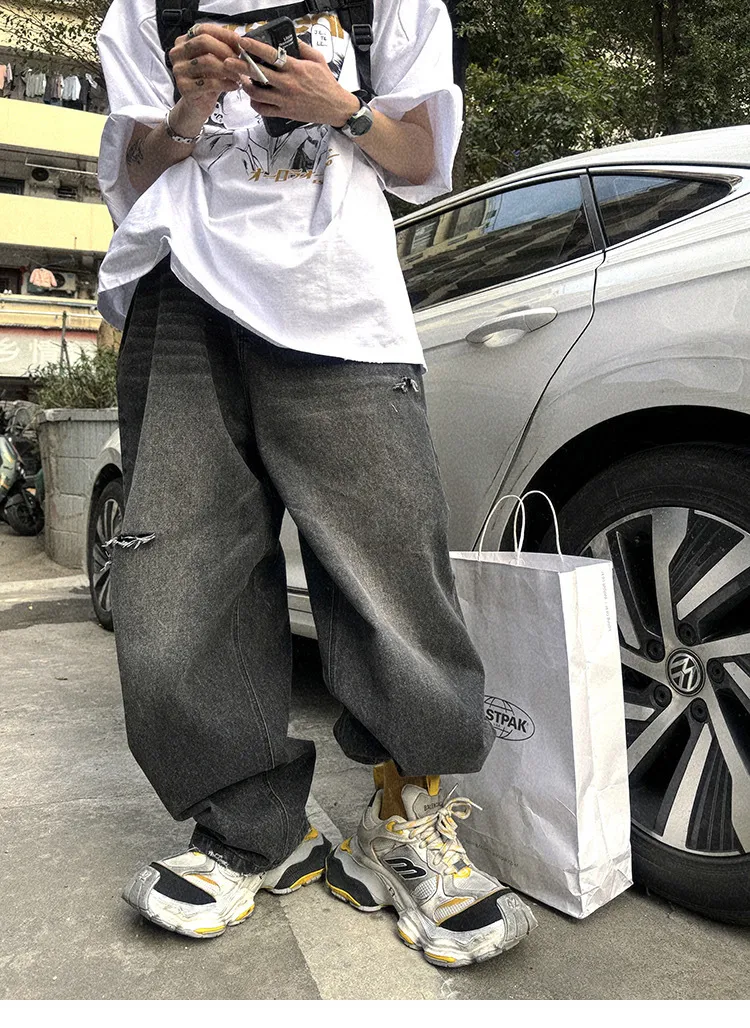 AUROCEAN 手工破壞 百搭 牛仔褲