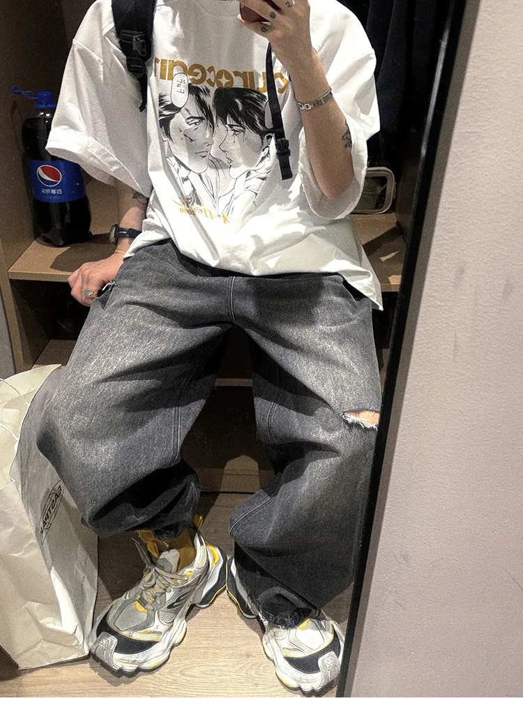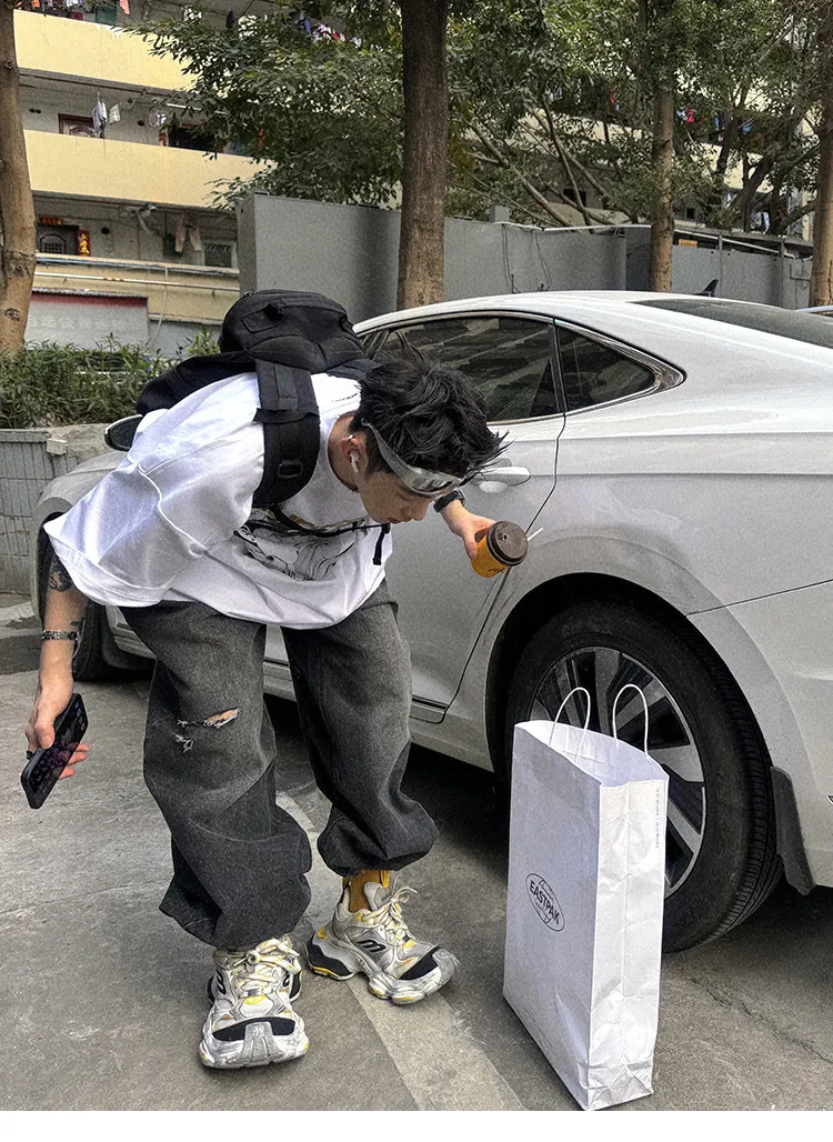 AUROCEAN 漫畫感 320G 重磅 破壞感 短袖 (灰色)