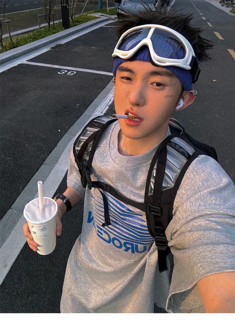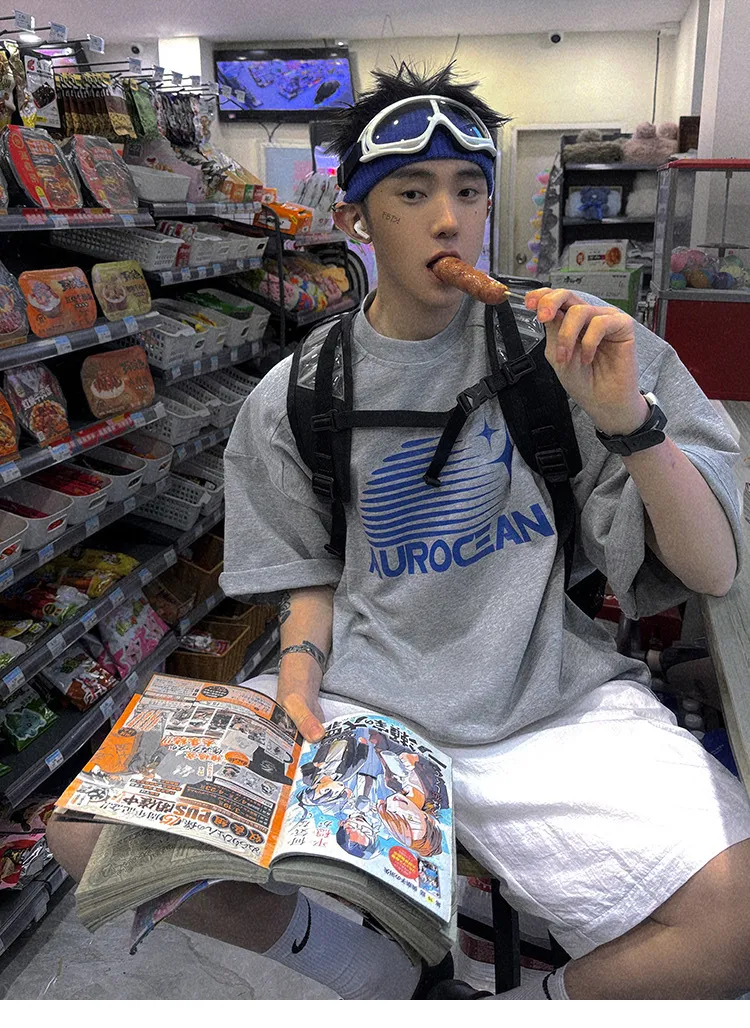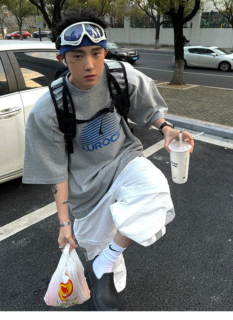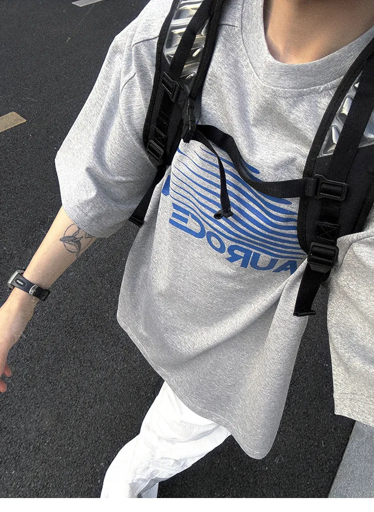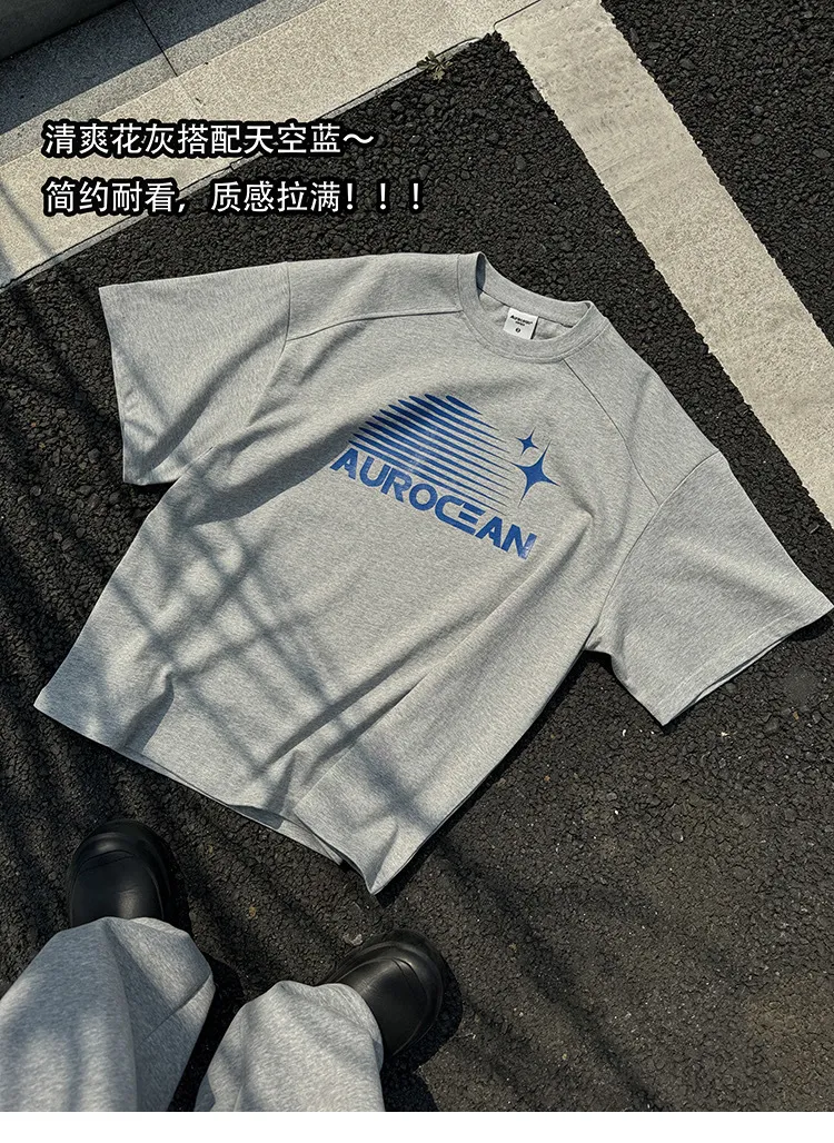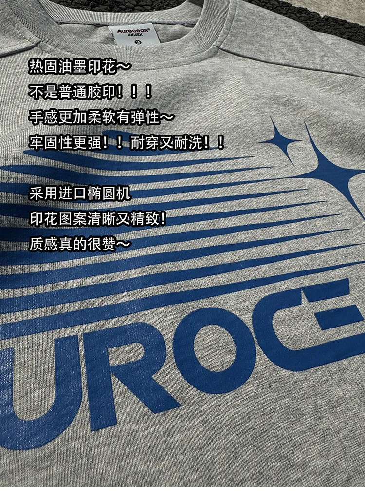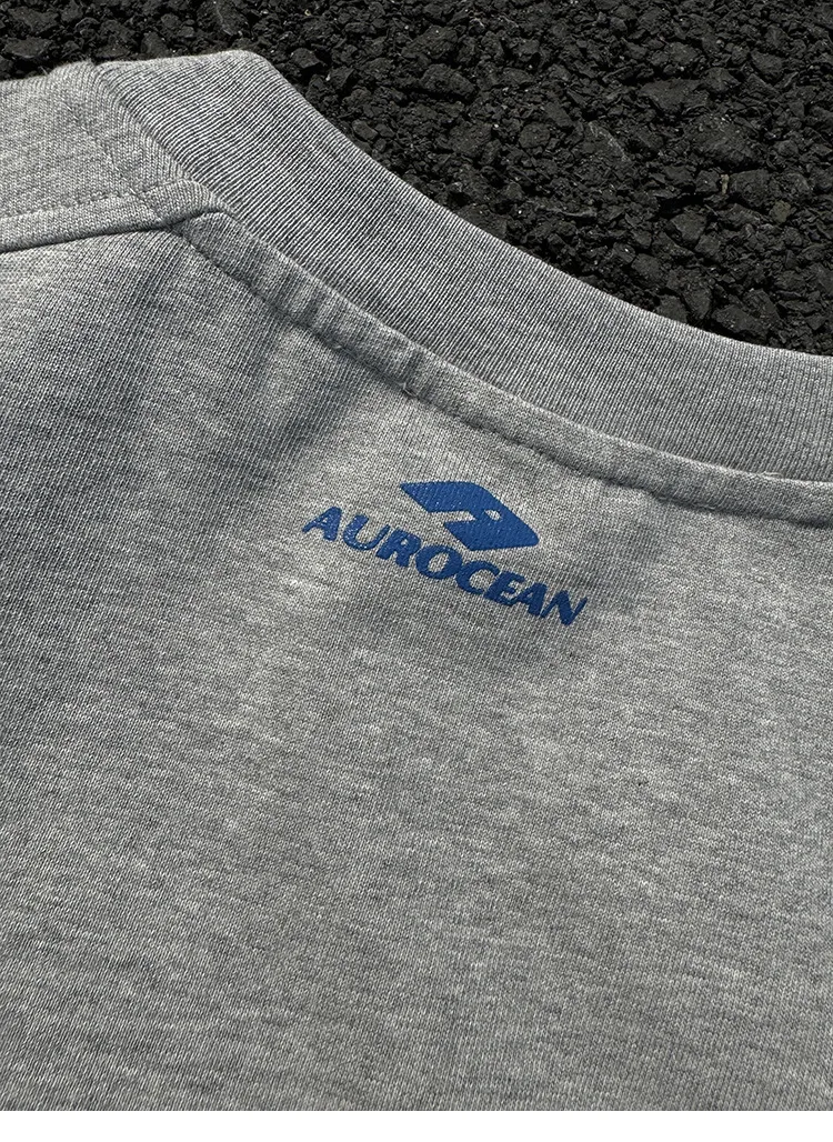 AUROCEAN 油墨熱固印花 花灰色 短袖 TEE