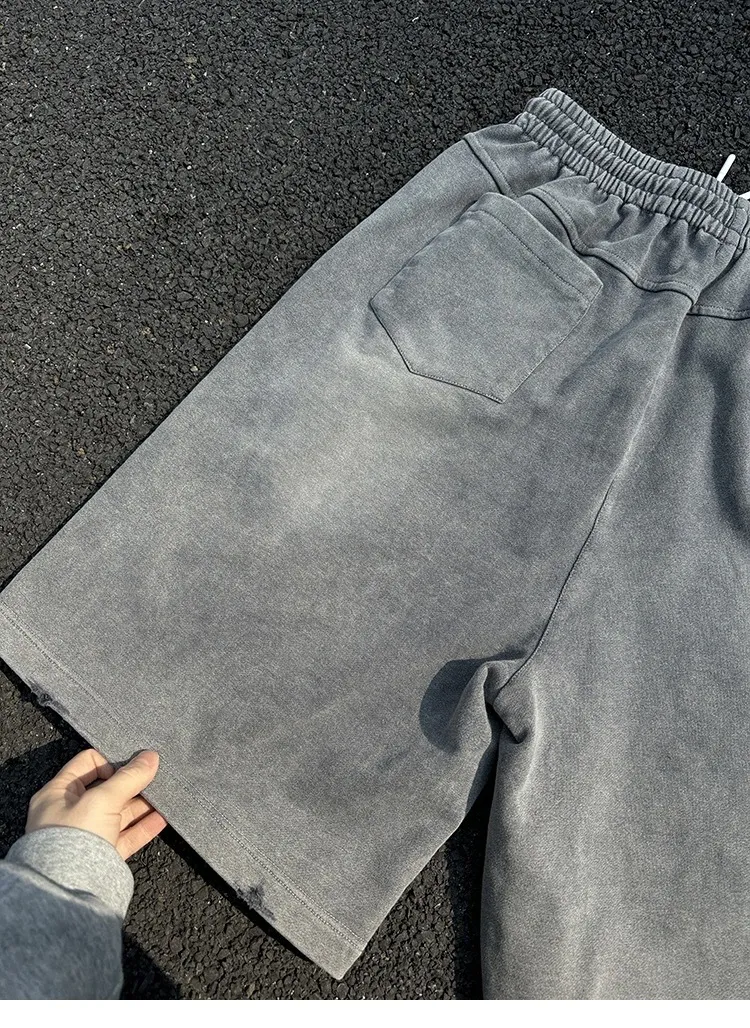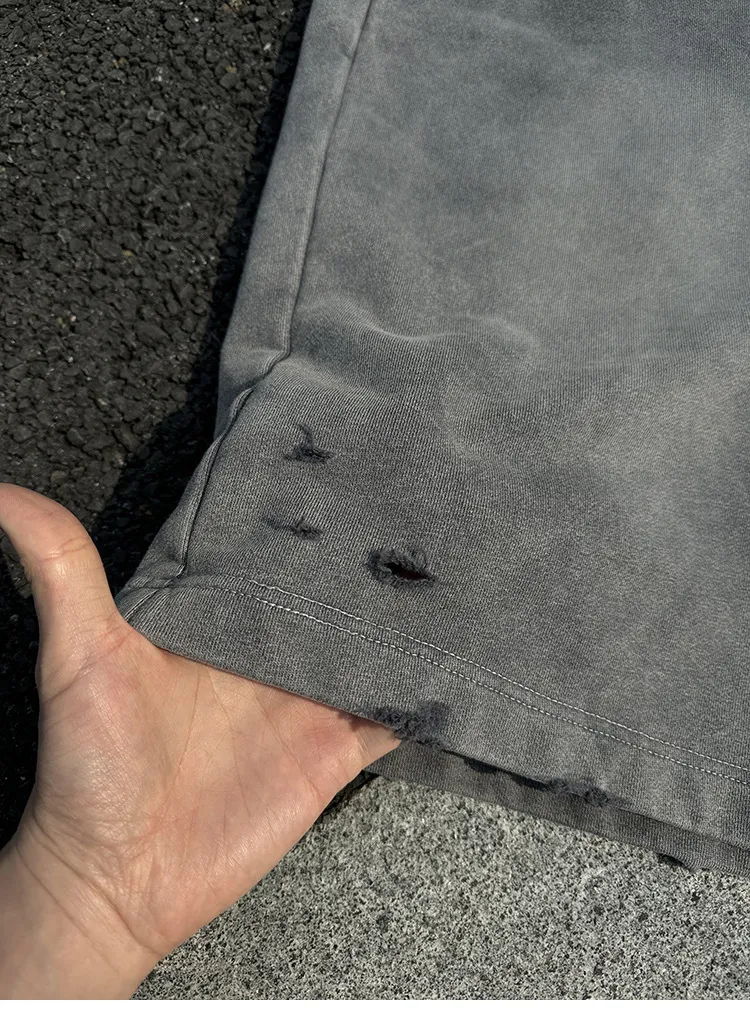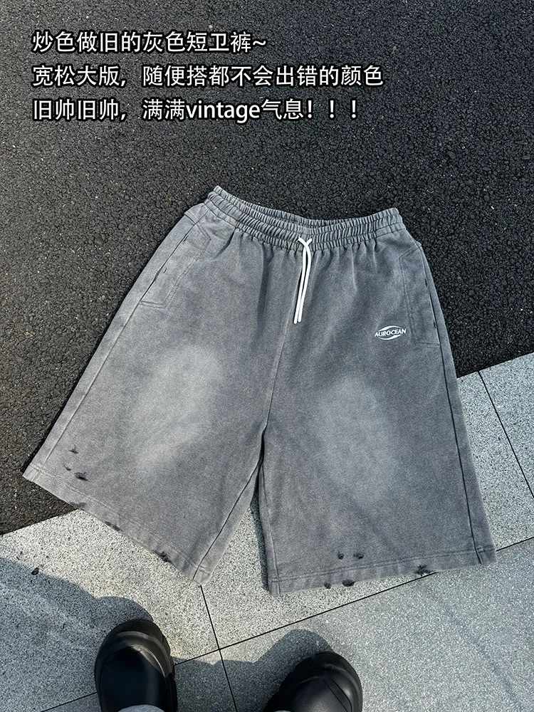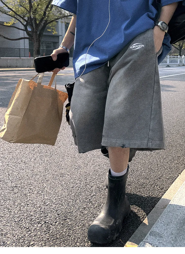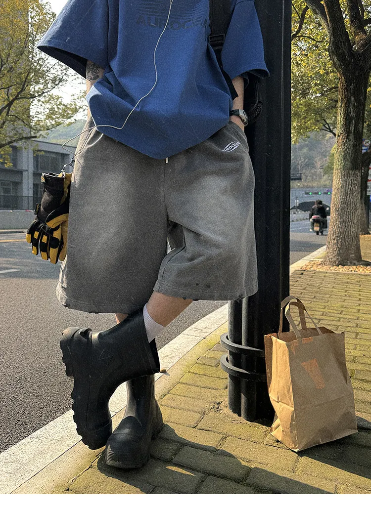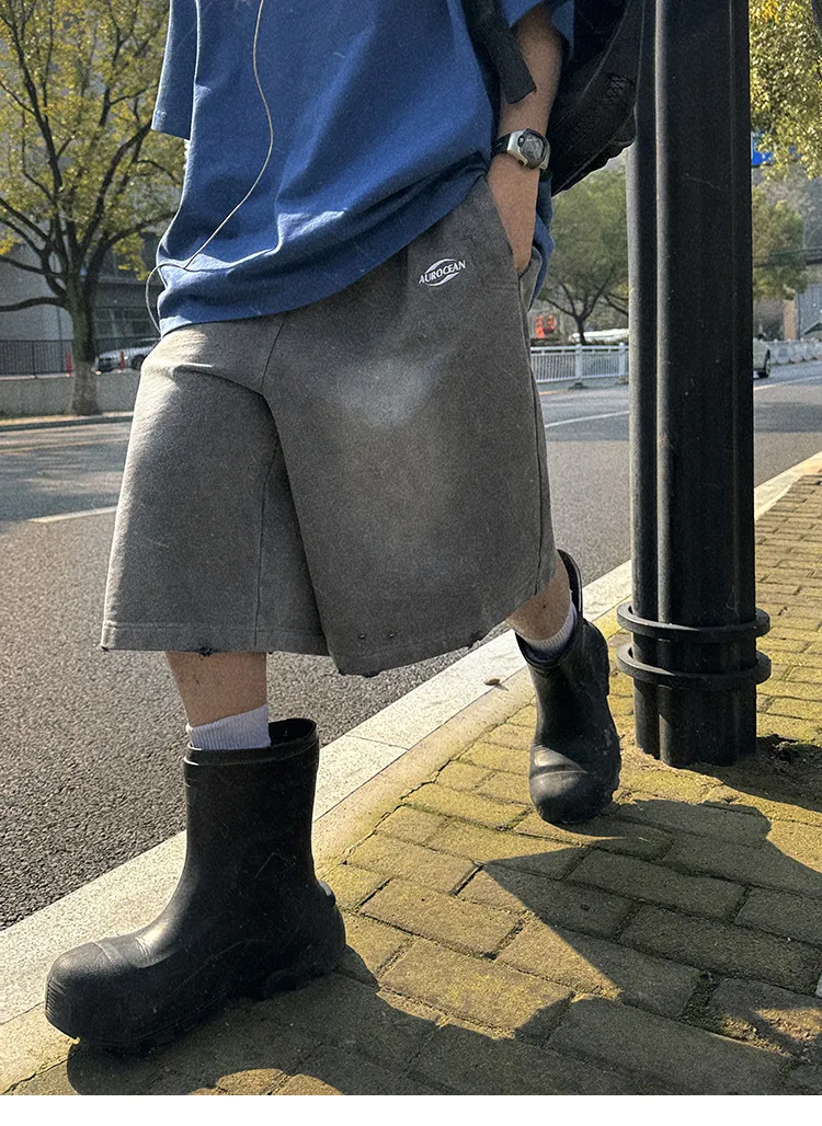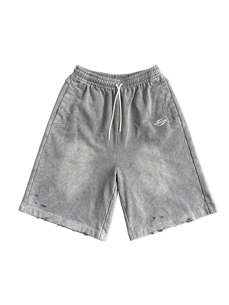 AUROCEAN 官方正貨 水洗做舊 破壞 全棉 短褲 灰色