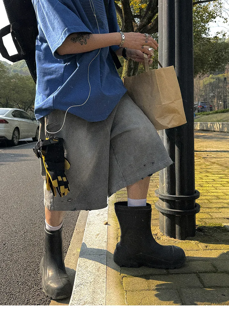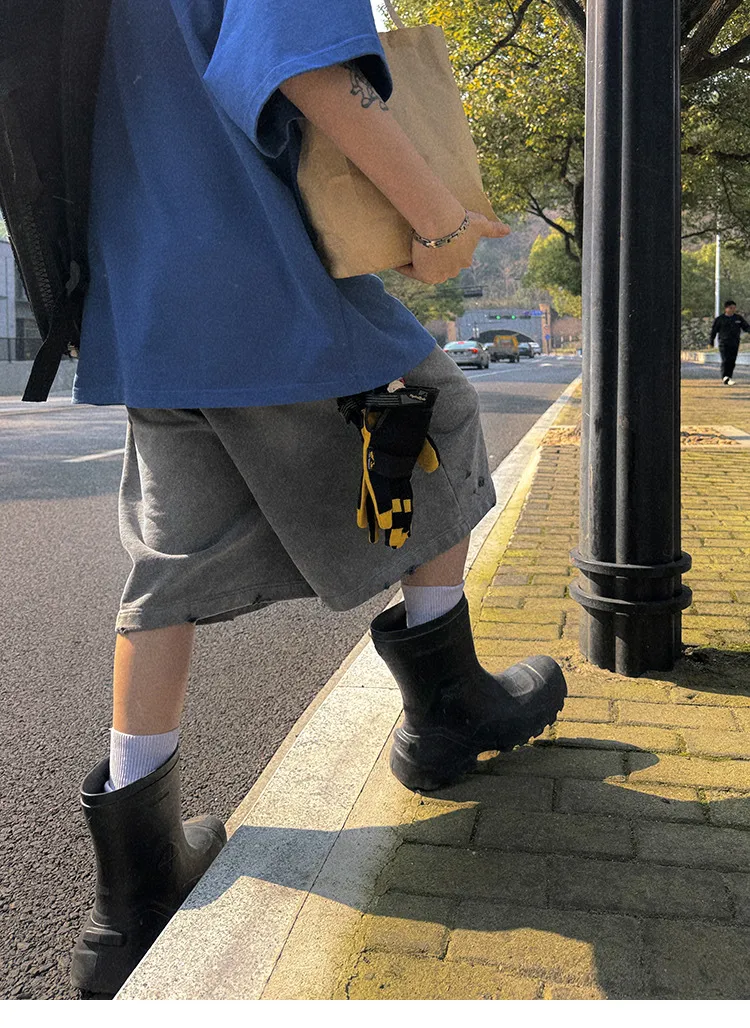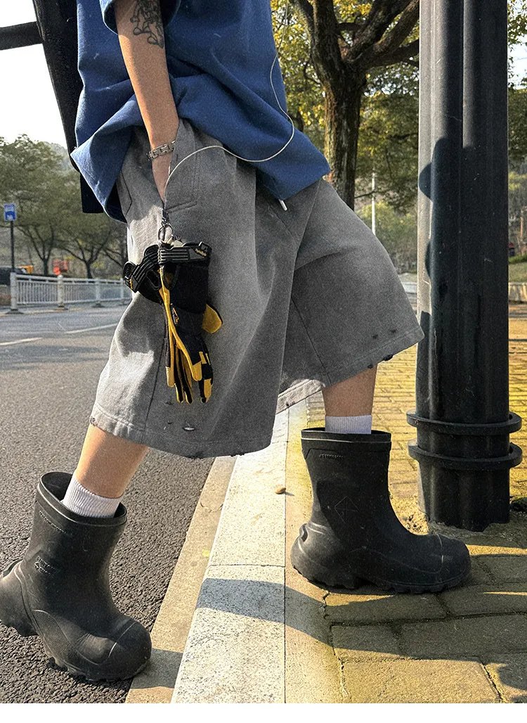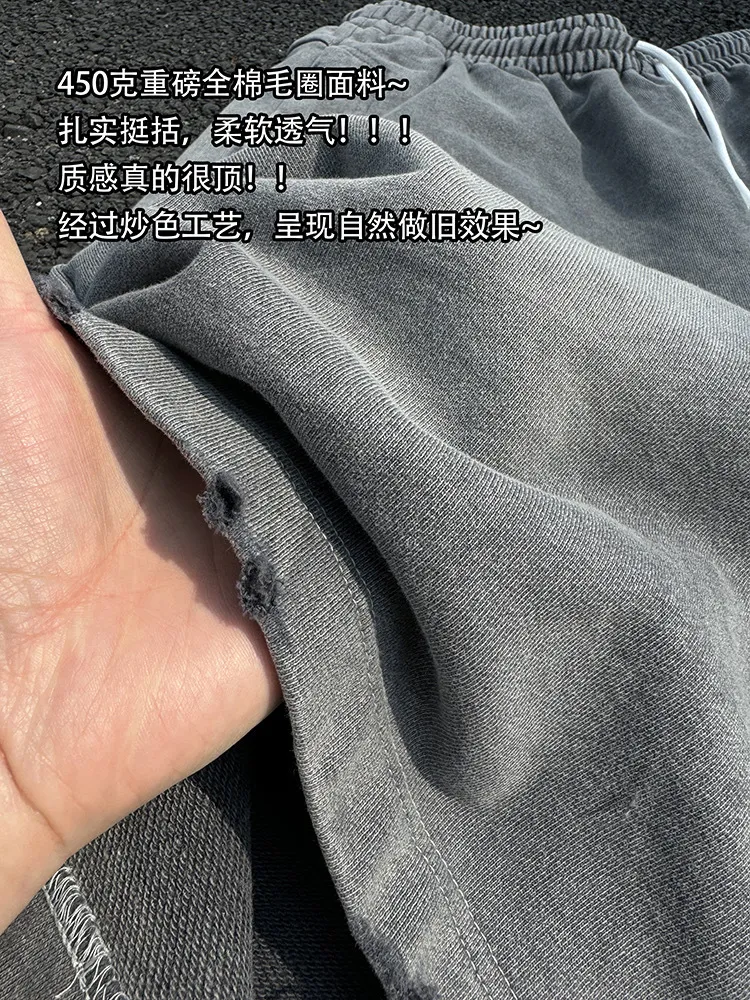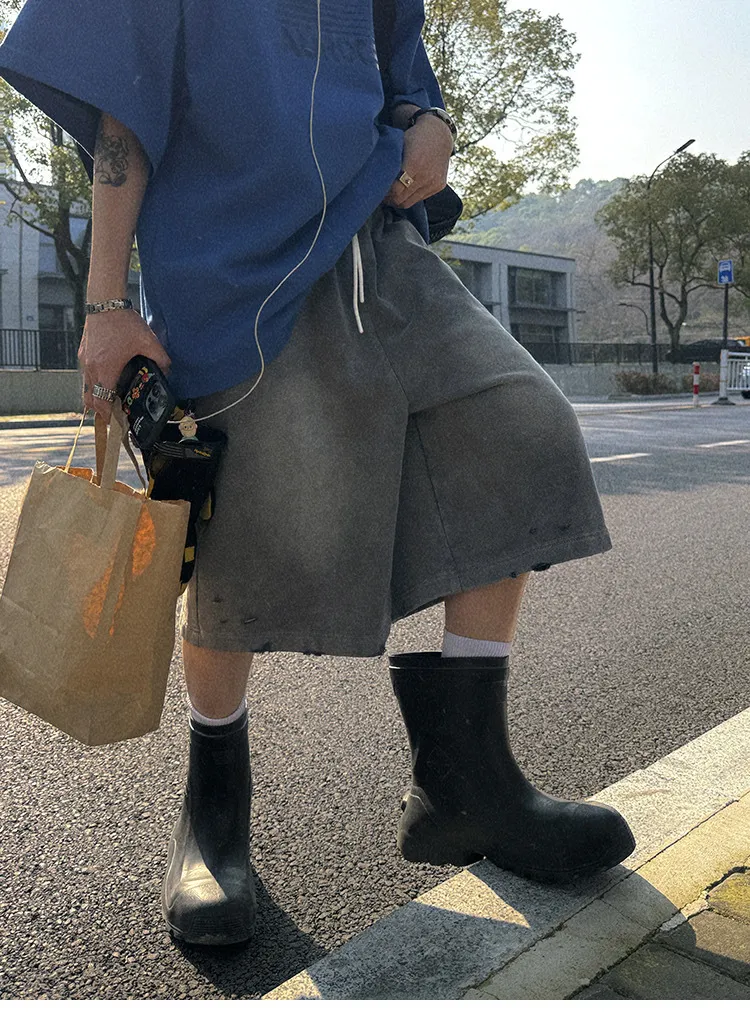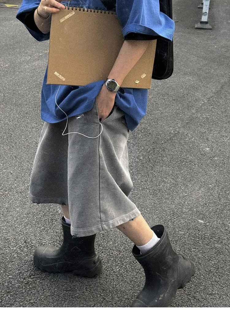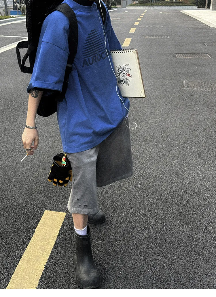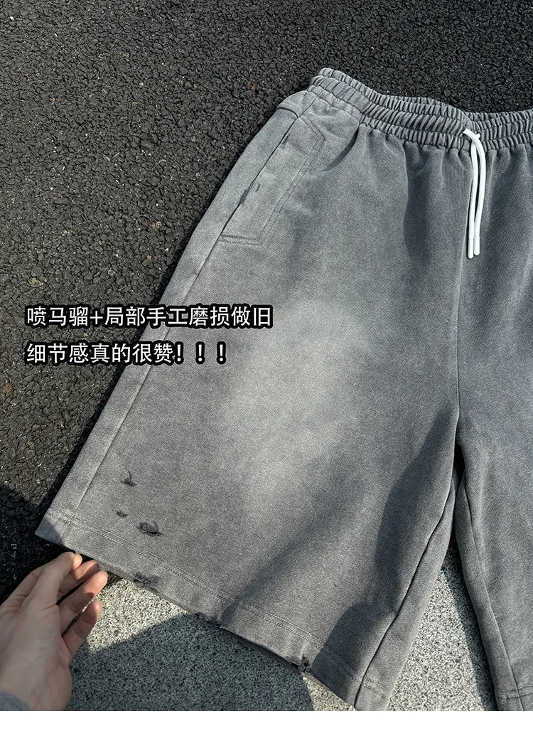 AUROCEAN 官方正貨 水洗做舊 破壞 全棉 短褲 灰色
