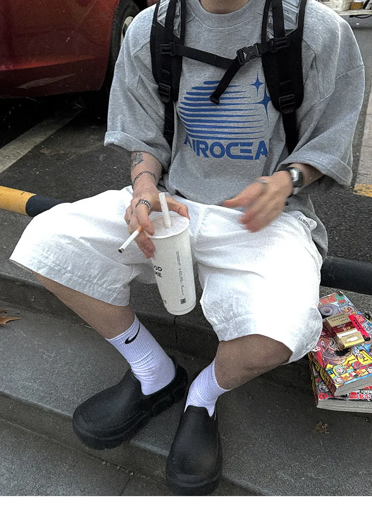 AUROCEAN 油墨熱固印花 花灰色 短袖 TEE