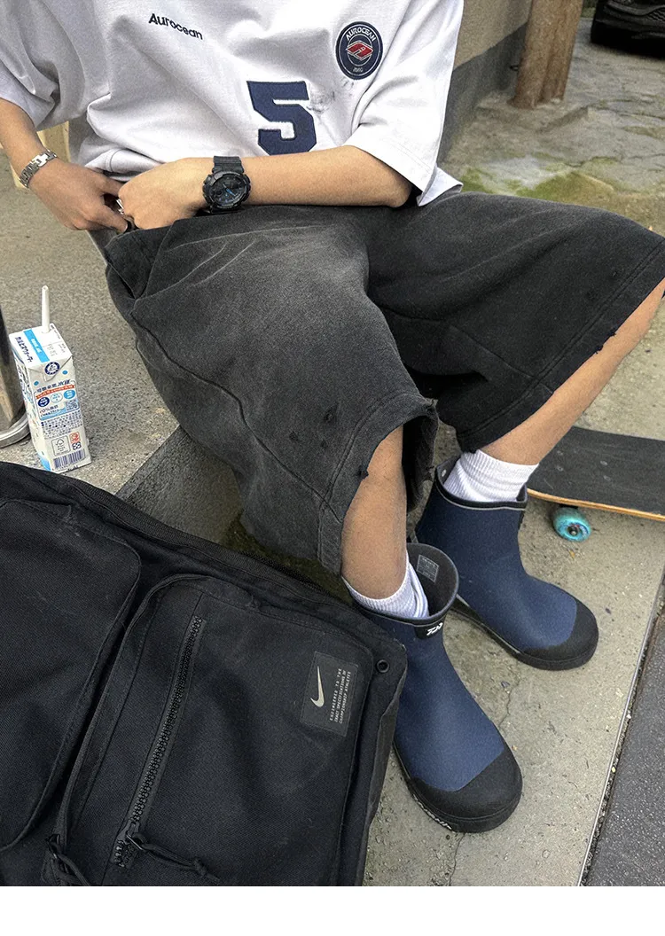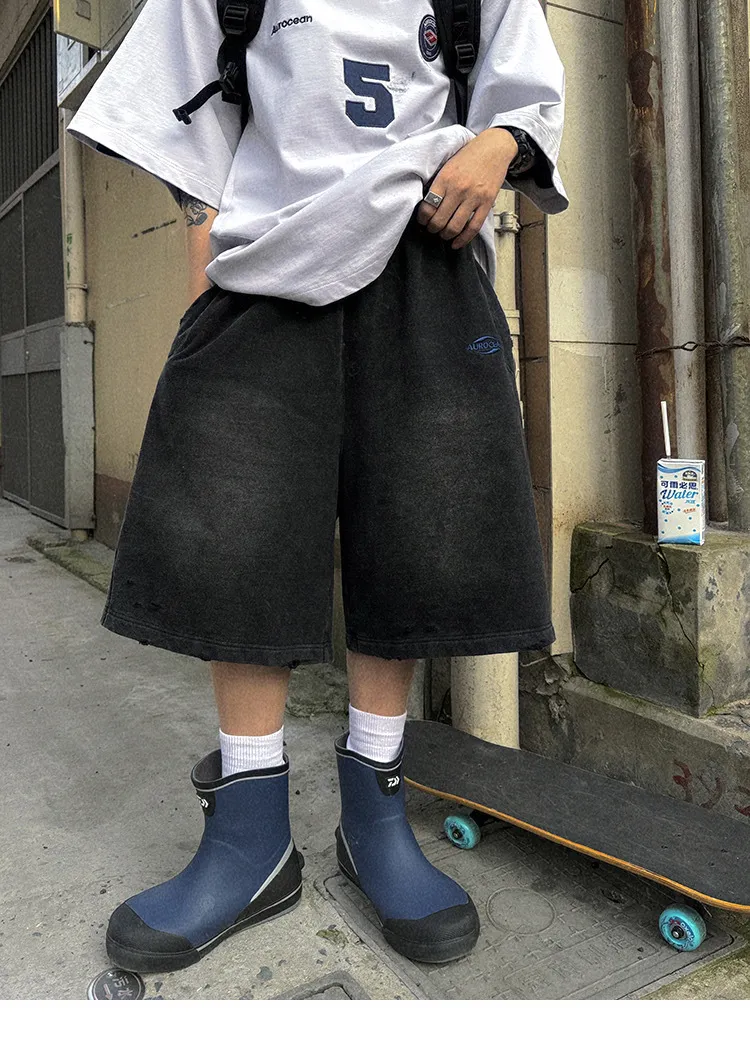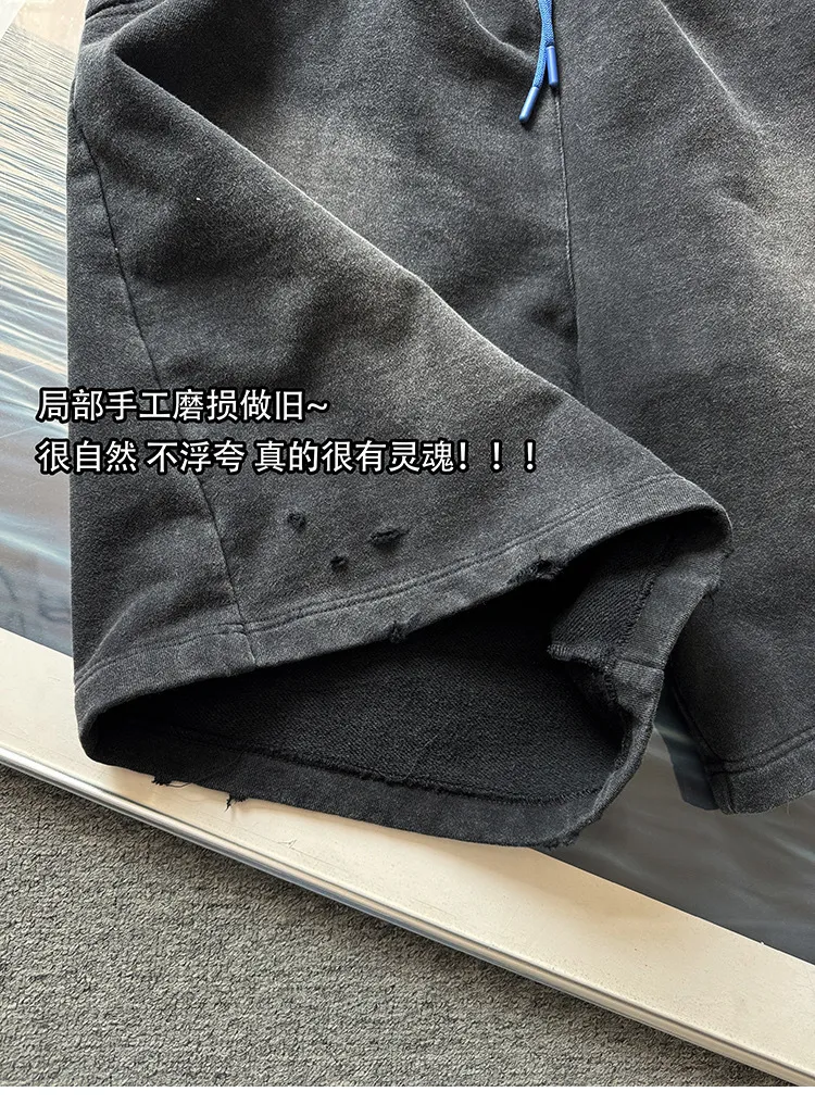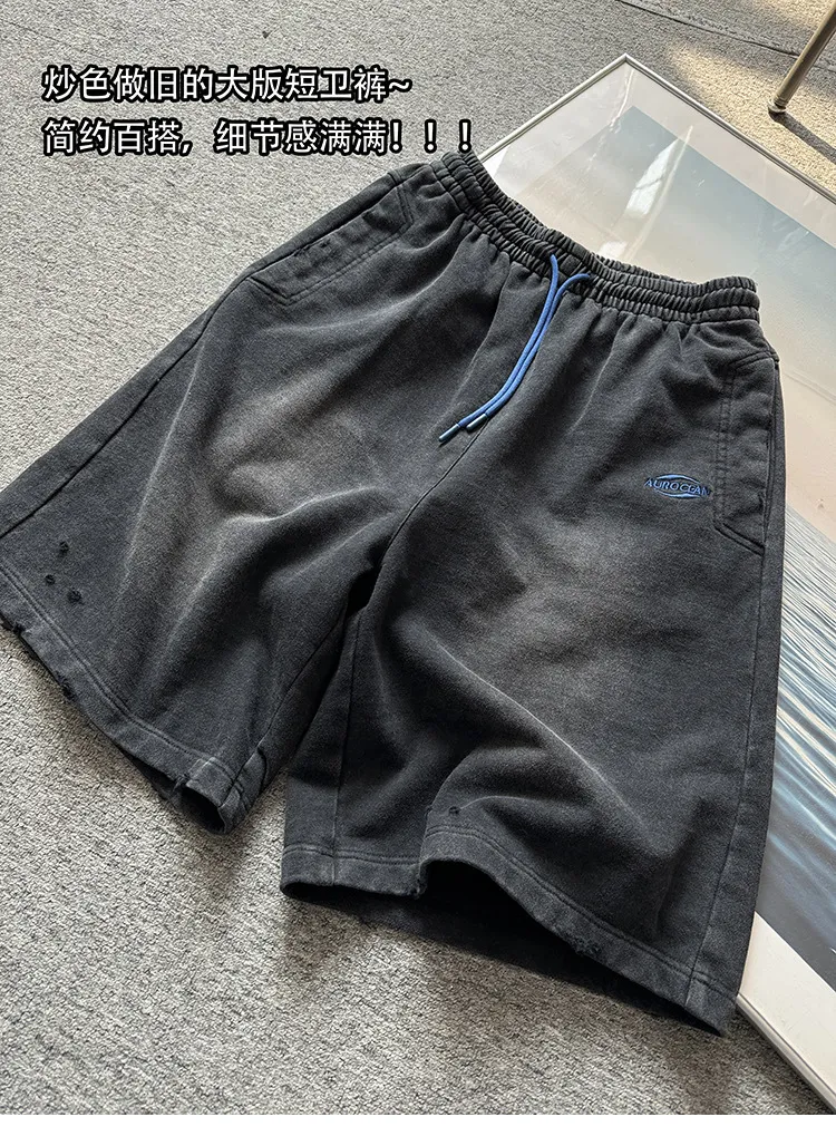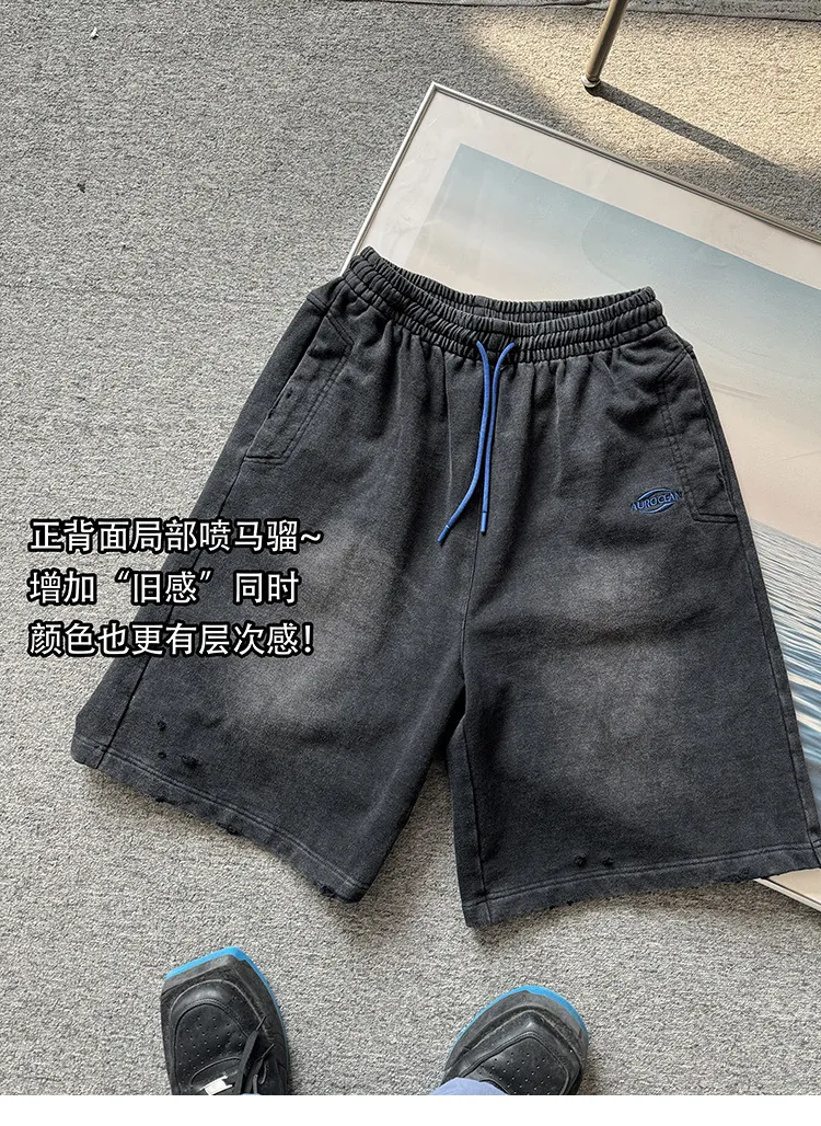 AUROCEAN 官方正貨 水洗做舊 破壞 全棉 短褲 黑色