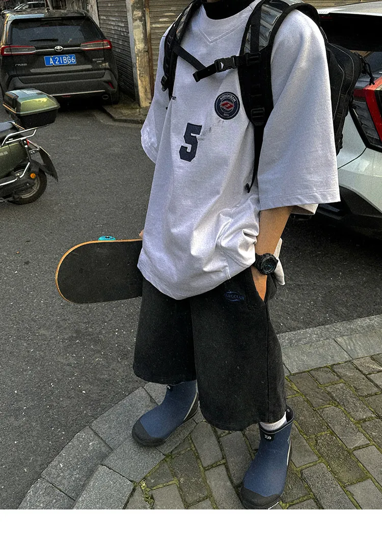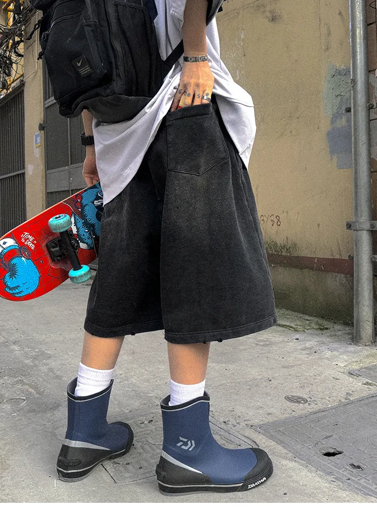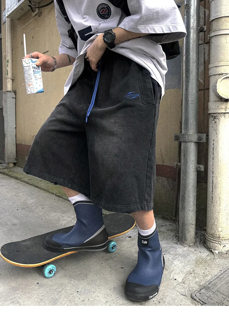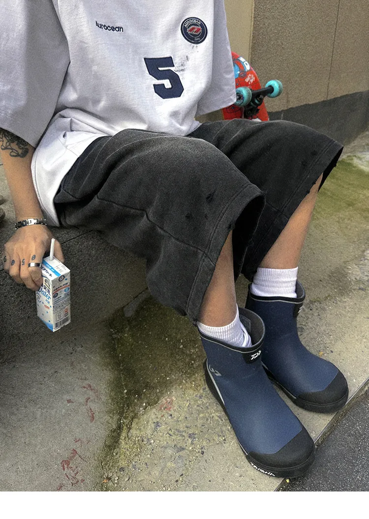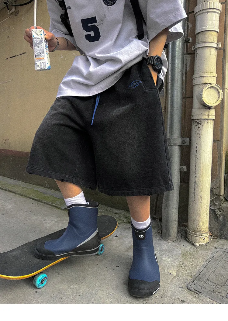 AUROCEAN 官方正貨 水洗做舊 破壞 全棉 短褲 黑色