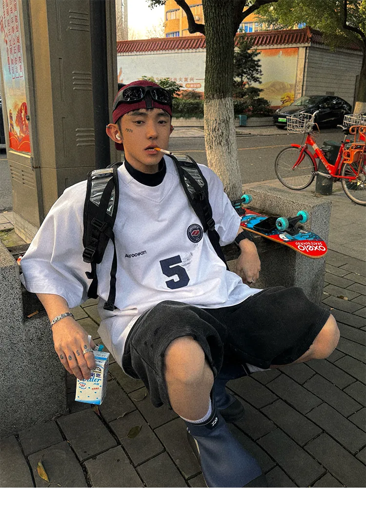 AUROCEAN 官方正貨 髒染做舊 刺繡貼布 短袖 球衣 做舊白