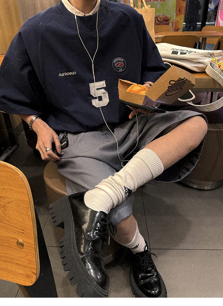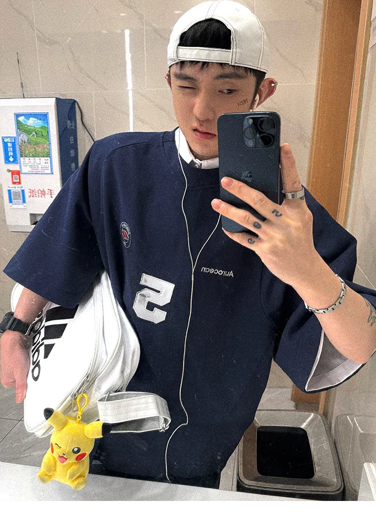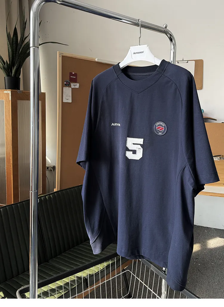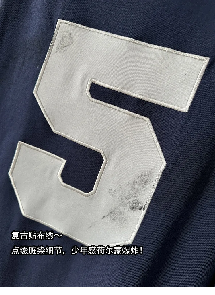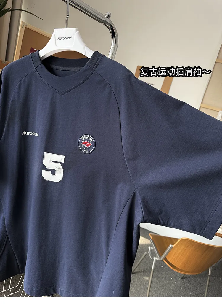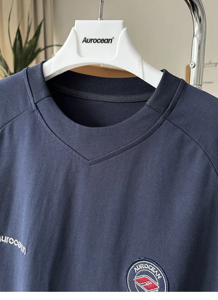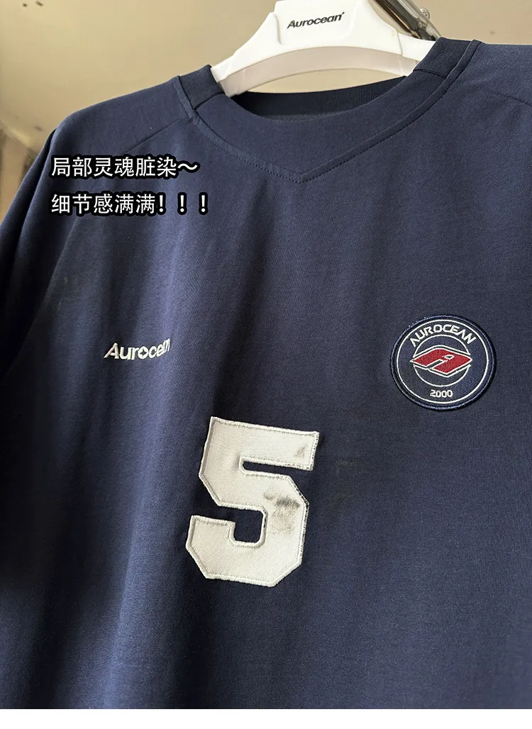 AUROCEAN 官方正貨 髒染做舊 刺繡貼布 短袖 球衣 做舊藏青