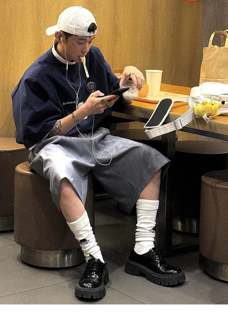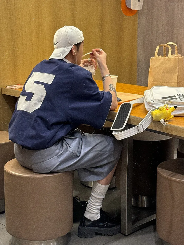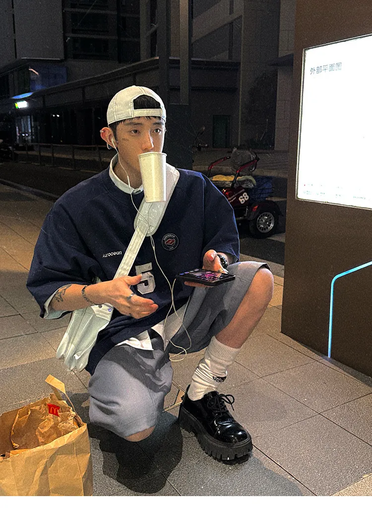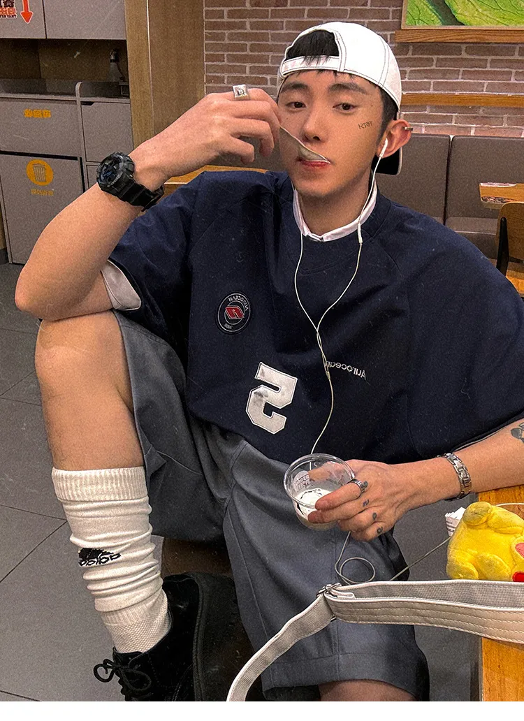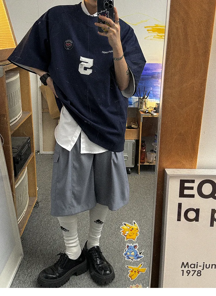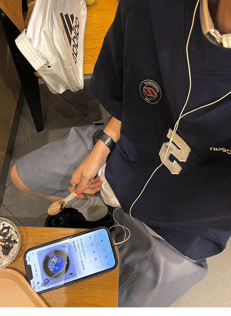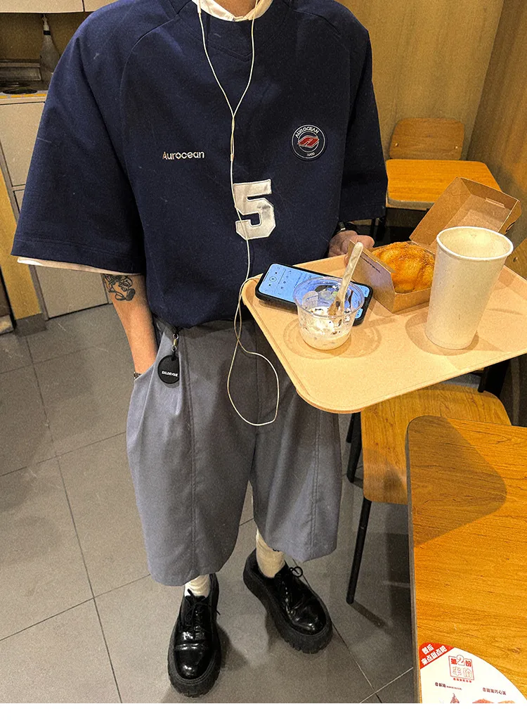 AUROCEAN 官方正貨 髒染做舊 刺繡貼布 短袖 球衣 做舊藏青
