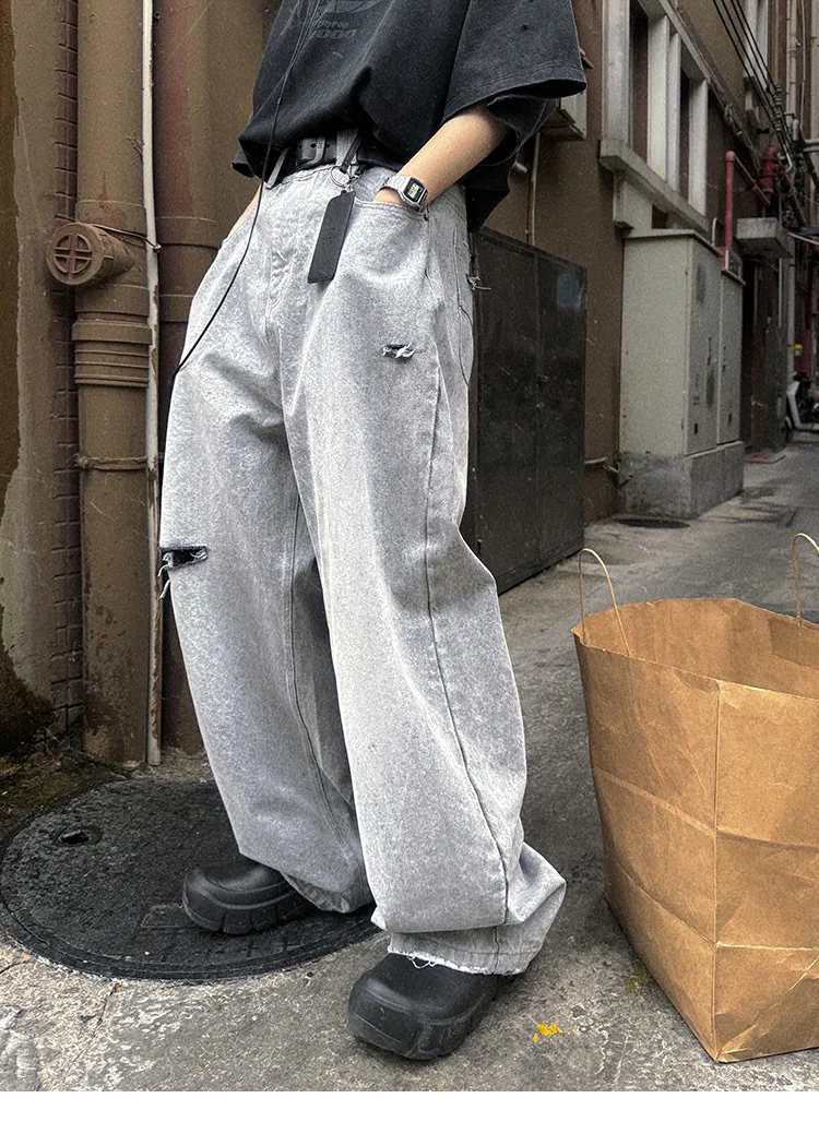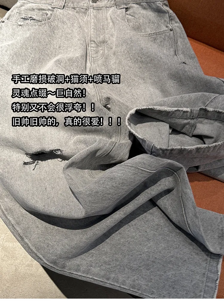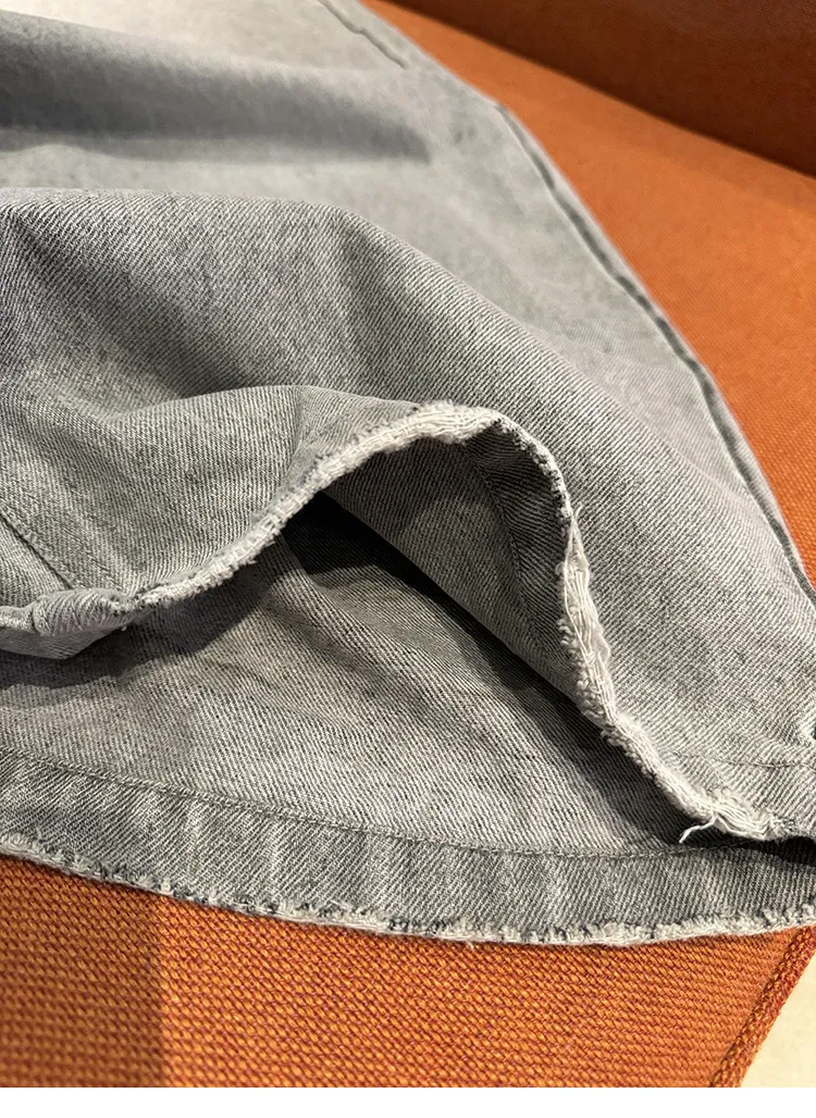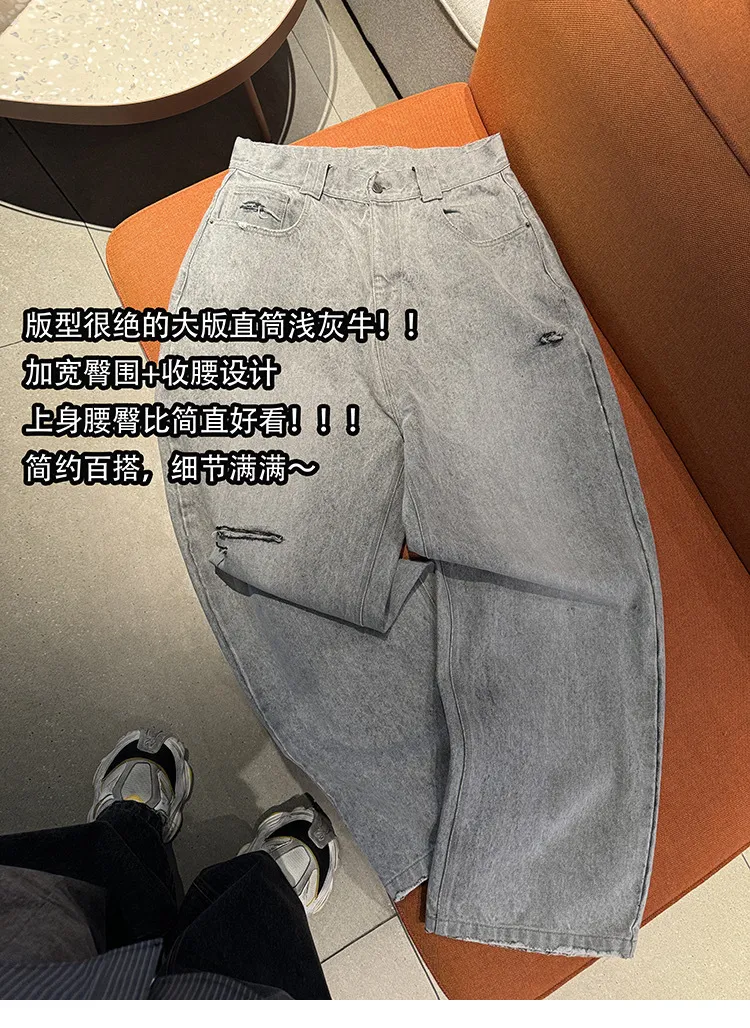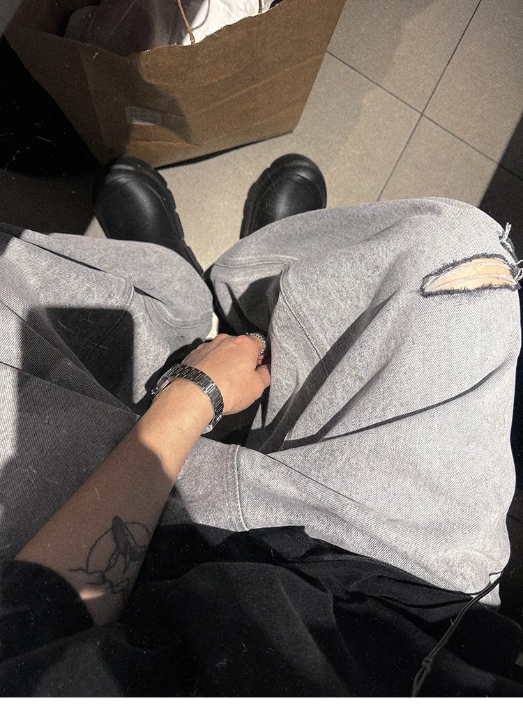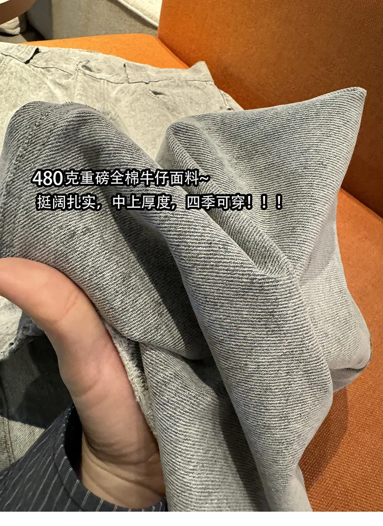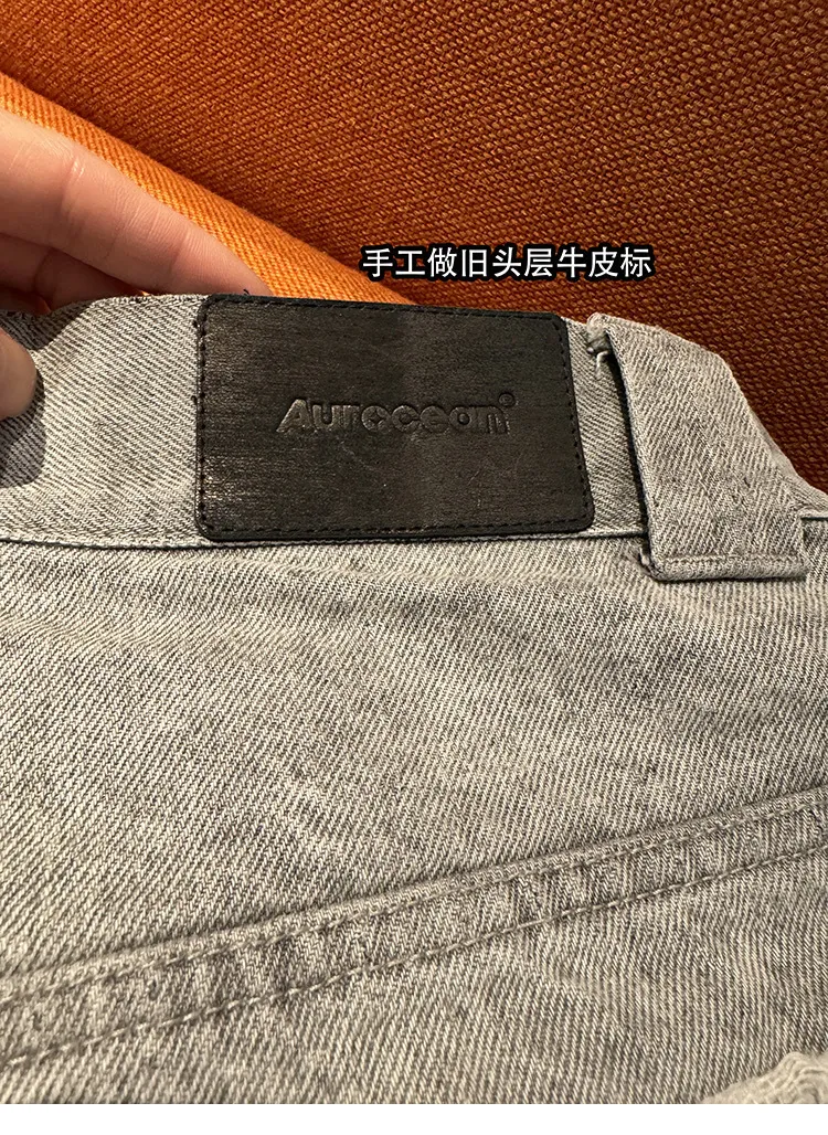 AUROCEAN 官方正貨 水洗做舊 破壞 直筒 闊腿 牛仔褲 淺灰色
