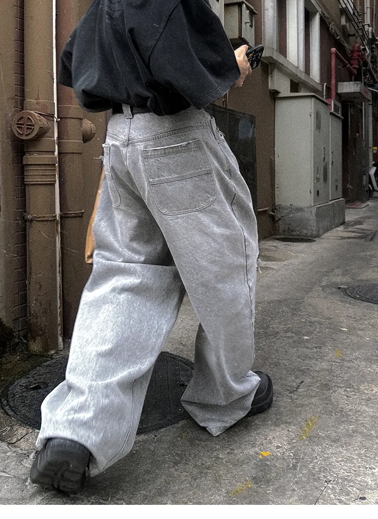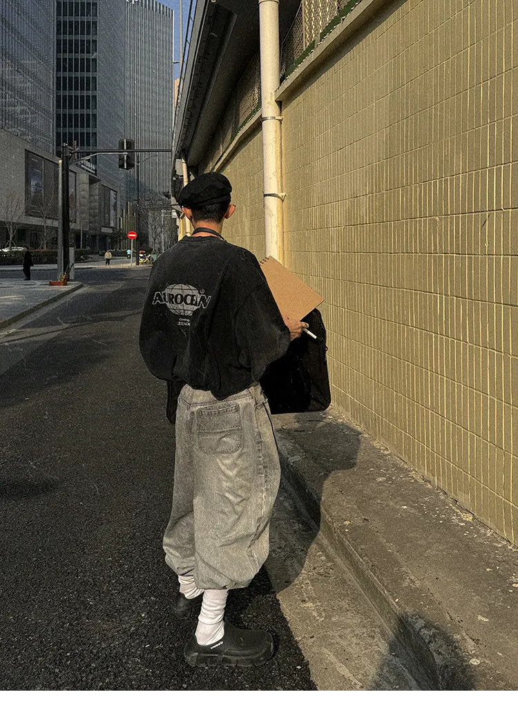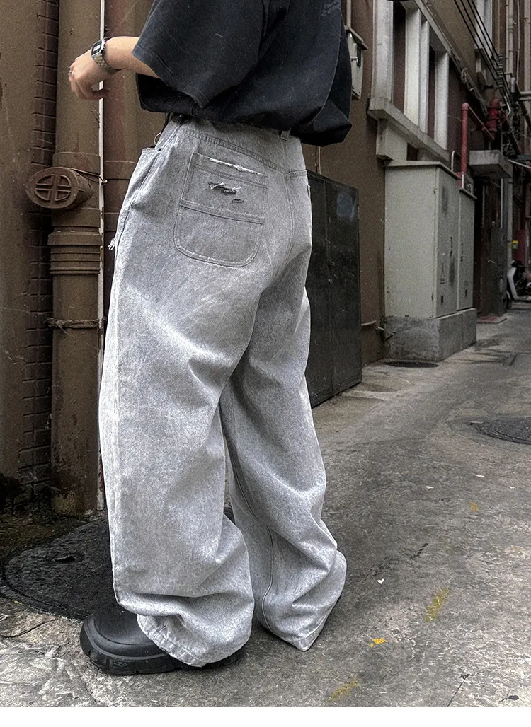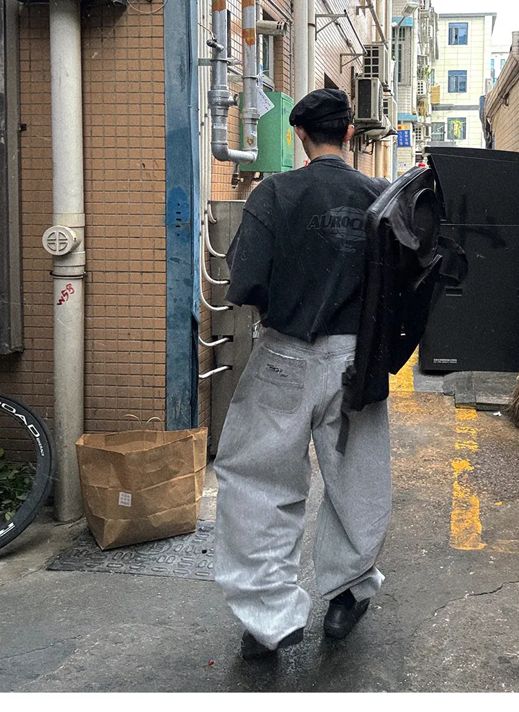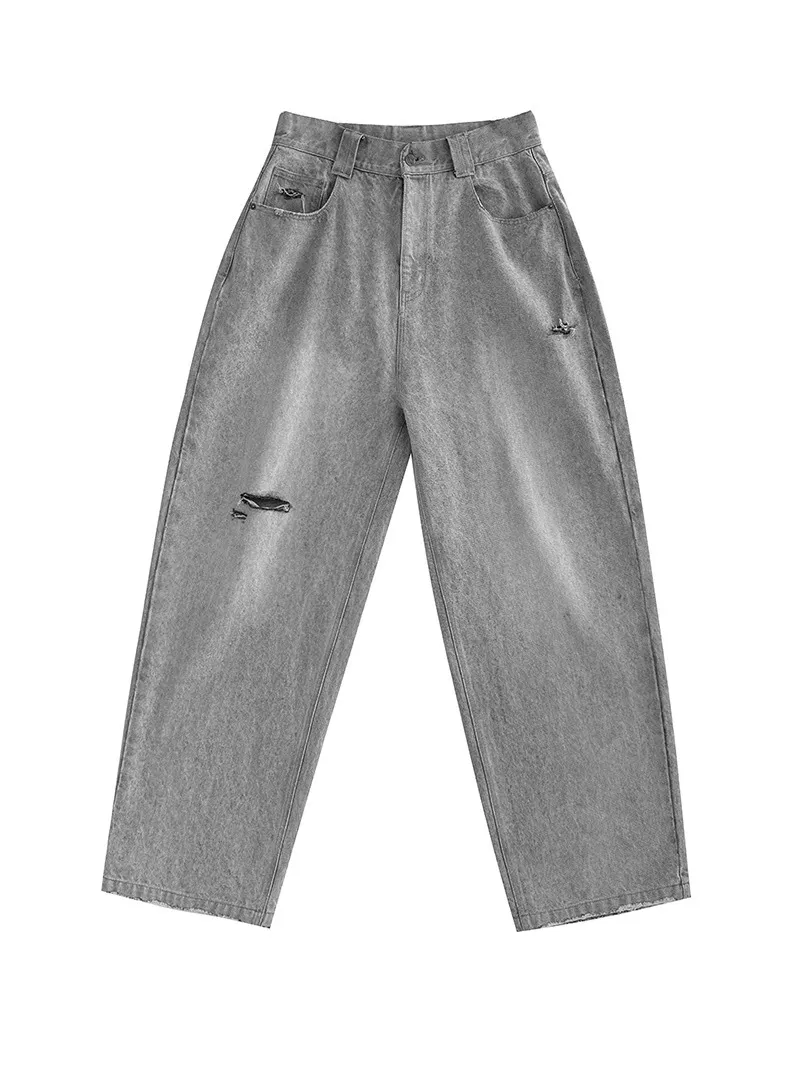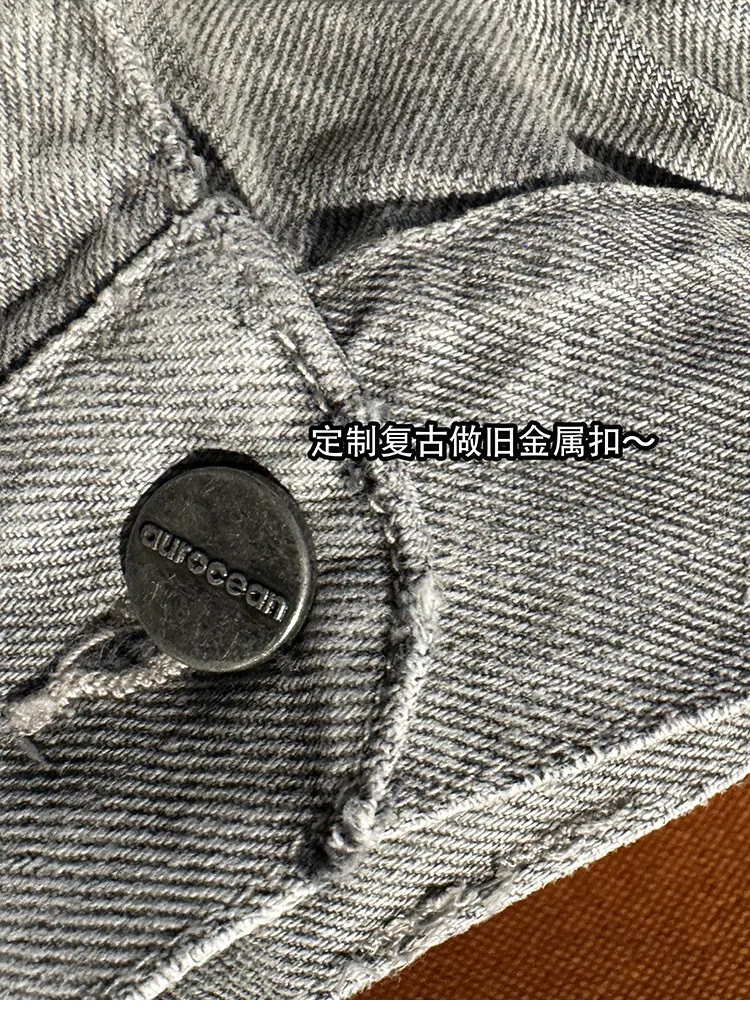 AUROCEAN 官方正貨 水洗做舊 破壞 直筒 闊腿 牛仔褲 淺灰色