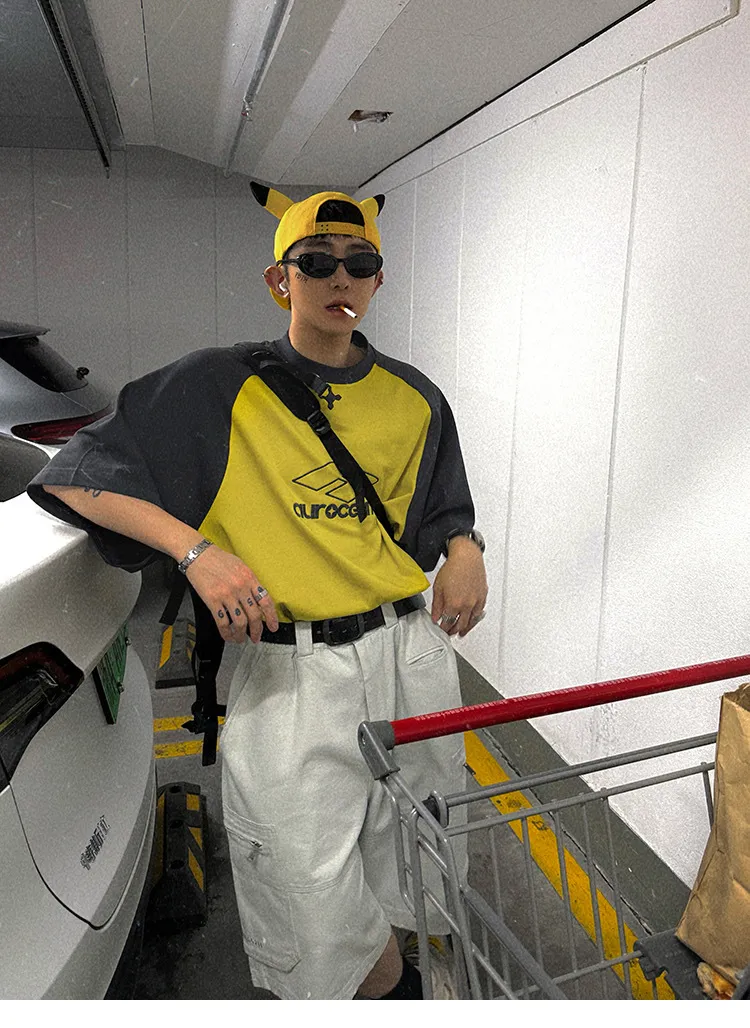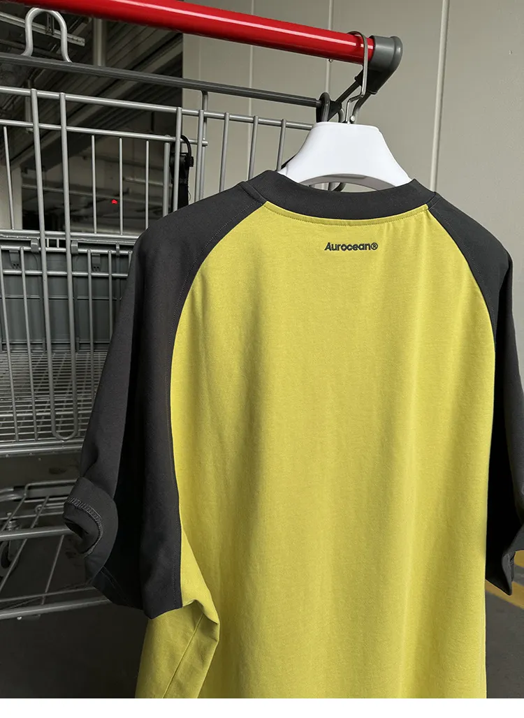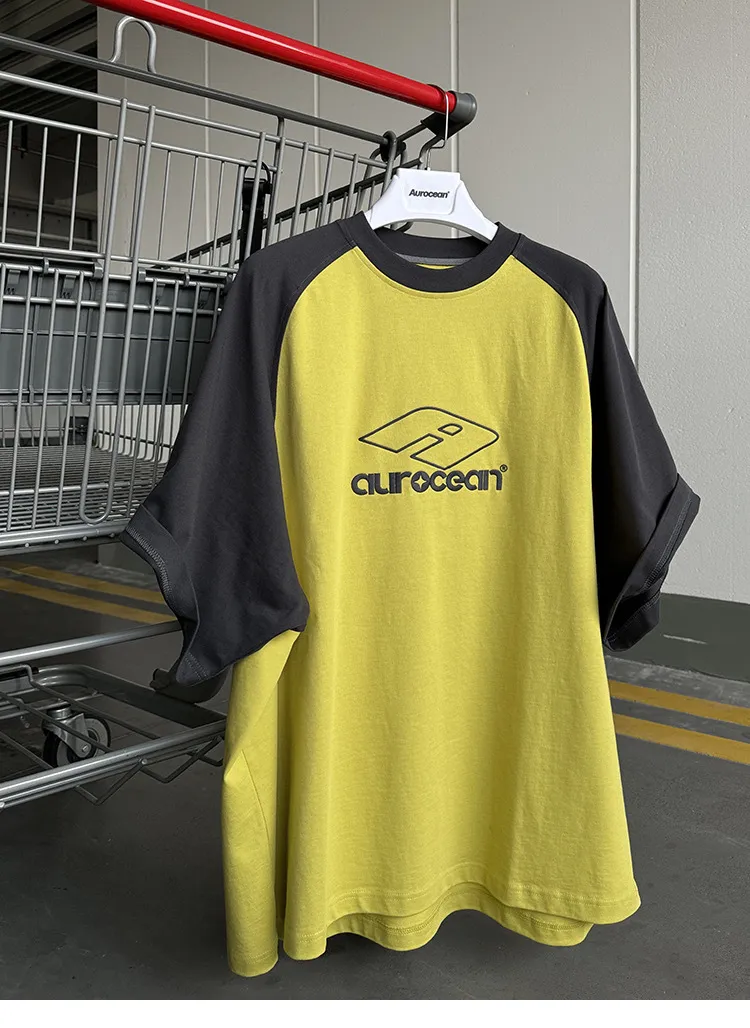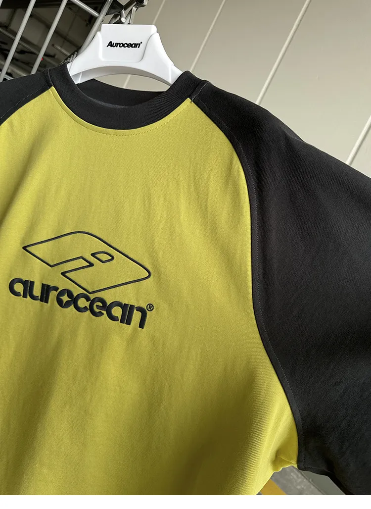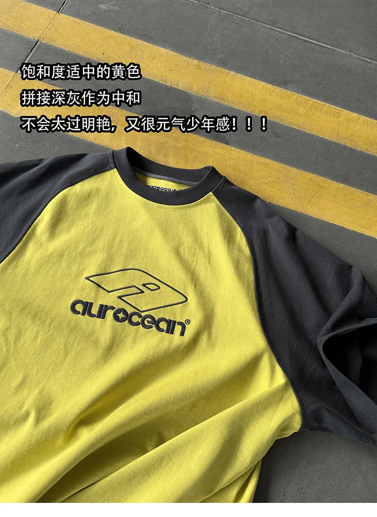 AUROCEAN 元氣少年 刺繡 插肩 撞色 320G 重磅 寬鬆 短袖 TEE(黃色)