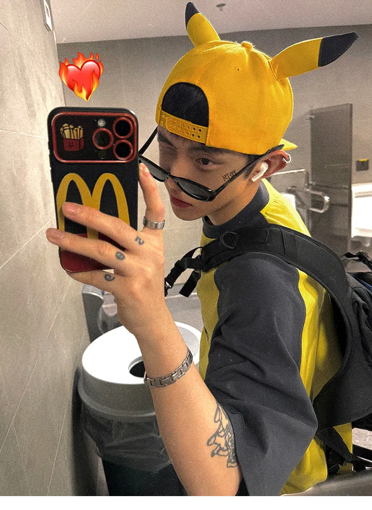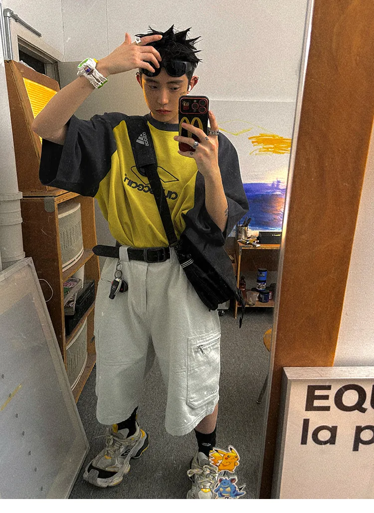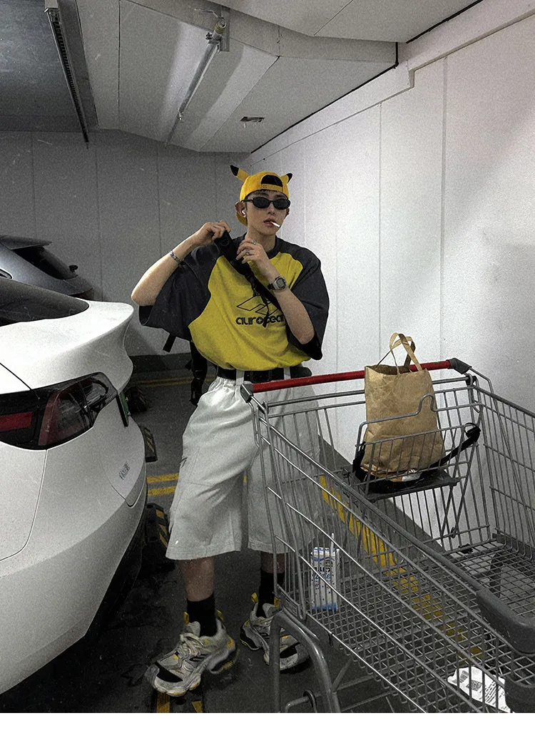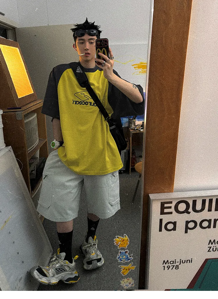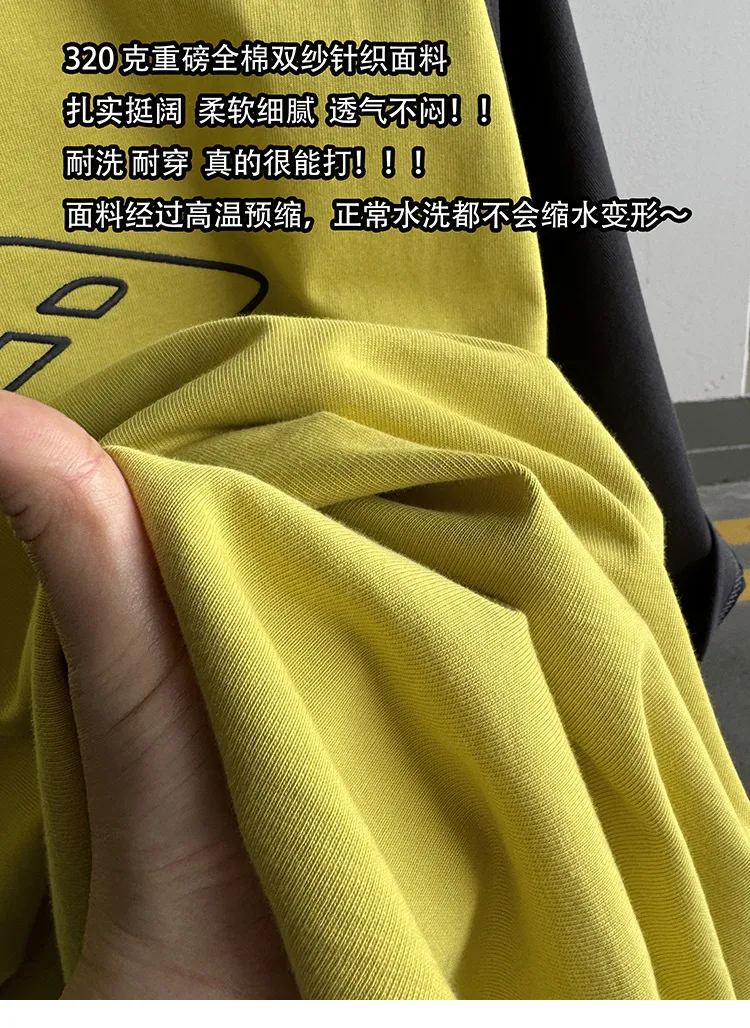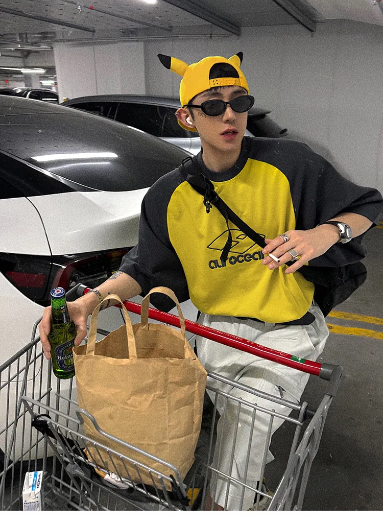 AUROCEAN 元氣少年 刺繡 插肩 撞色 320G 重磅 寬鬆 短袖 TEE(黃色)