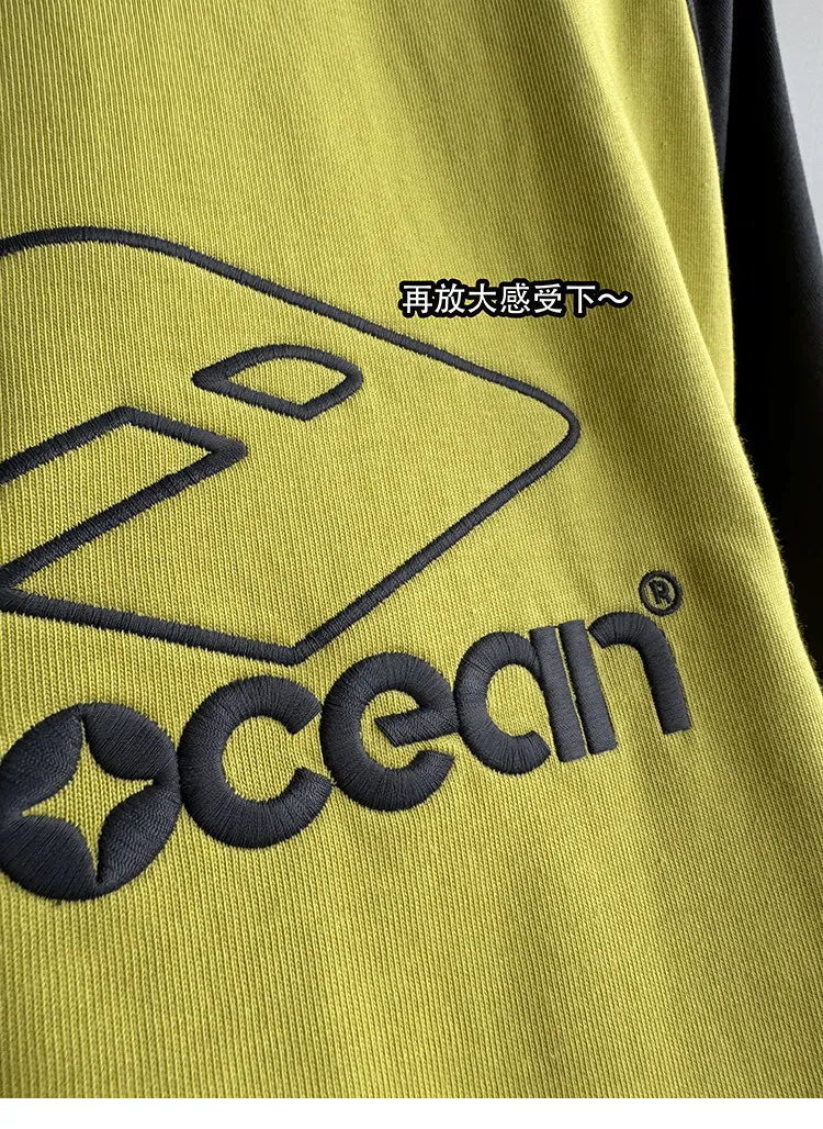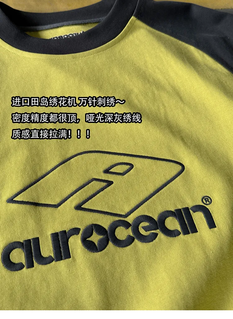 AUROCEAN 復古撞色 刺繡 寬肩闊形 重磅 短袖 TEE(綠色)