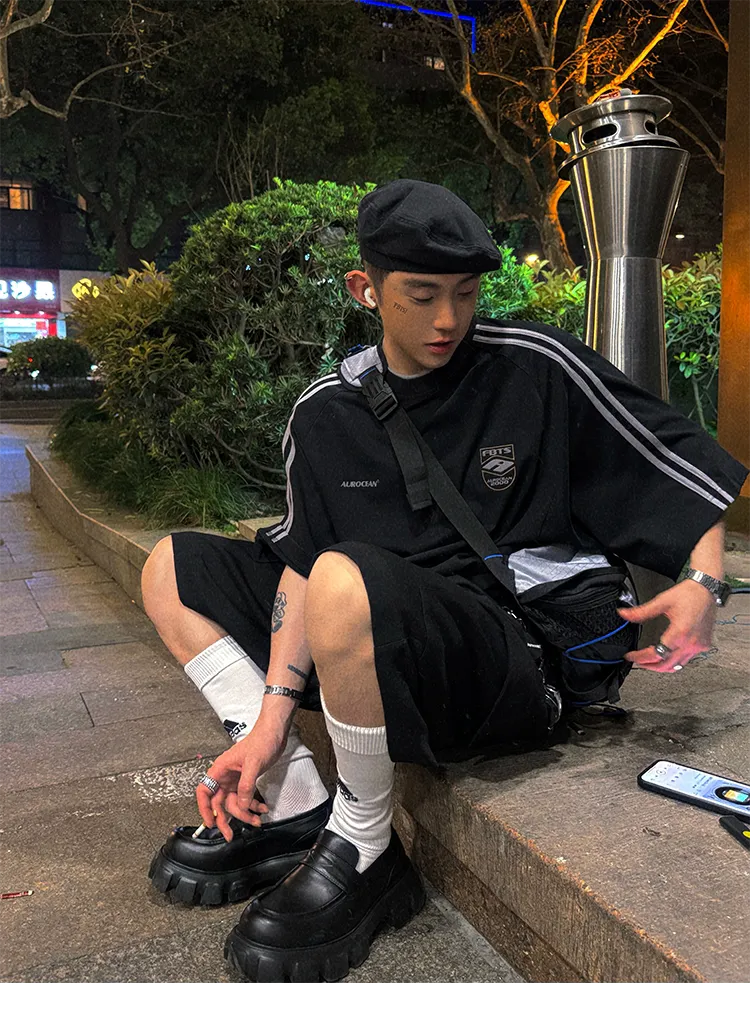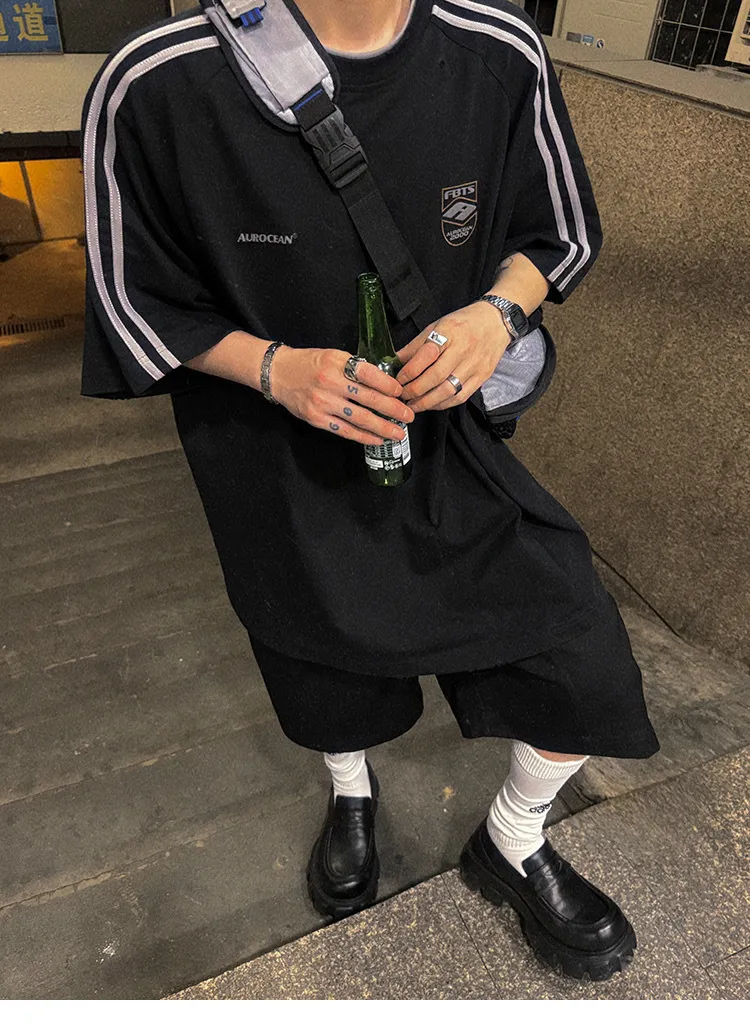 AUROCEAN 速乾 透氣 運動面料 寬鬆 刺繡 LOGO 短袖 TEE(黑色)