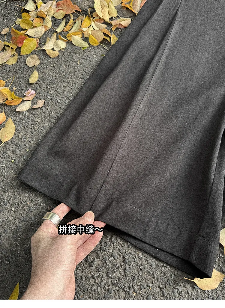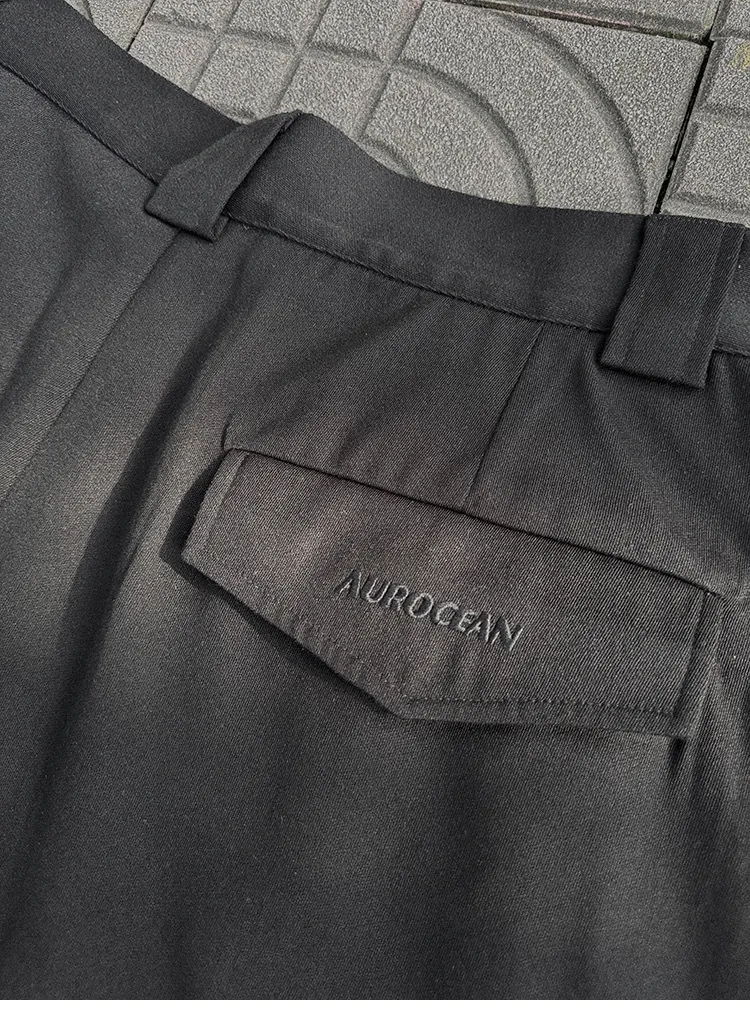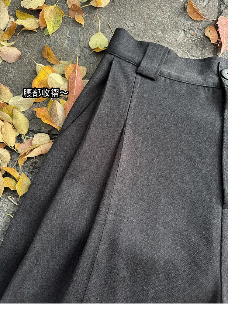 AUROCEAN 純黑色 復古學院 收褶 闊腿 堆堆褲 西裝褲(黑色)