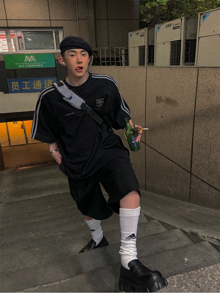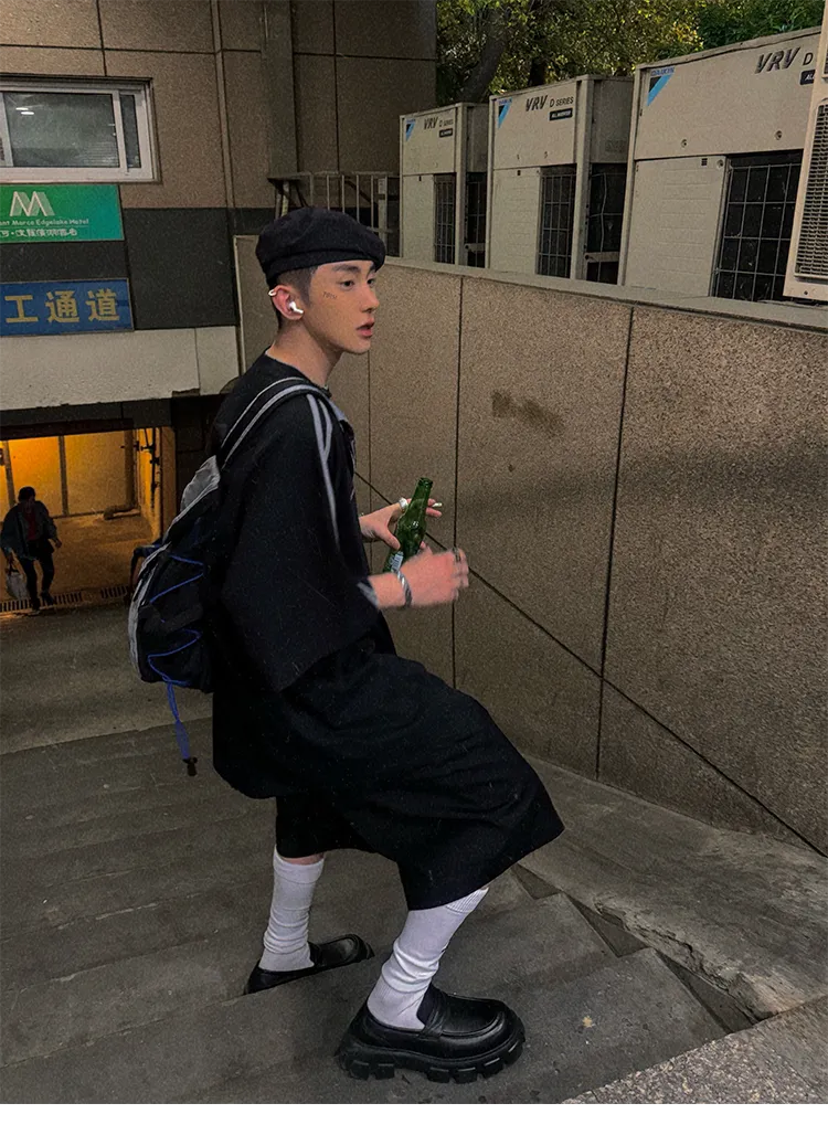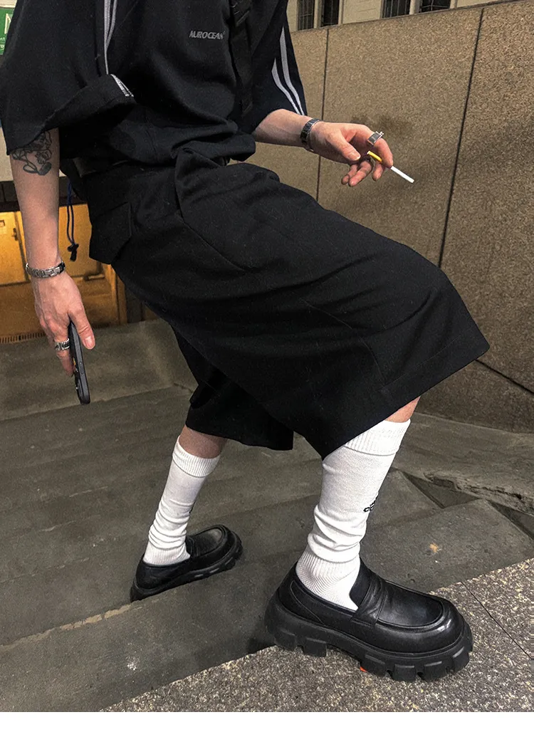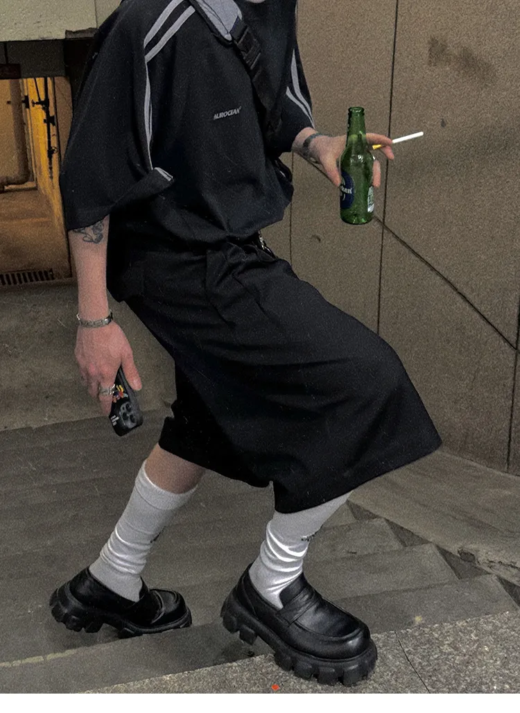 AUROCEAN 訂製水洗 暗紋 破壞 迷彩 寬版 六分褲 短褲(深灰色)
