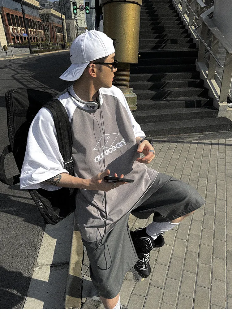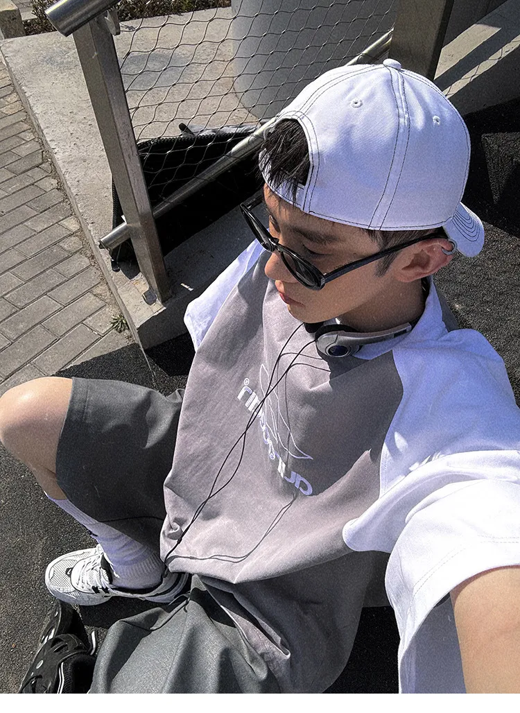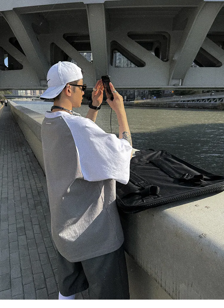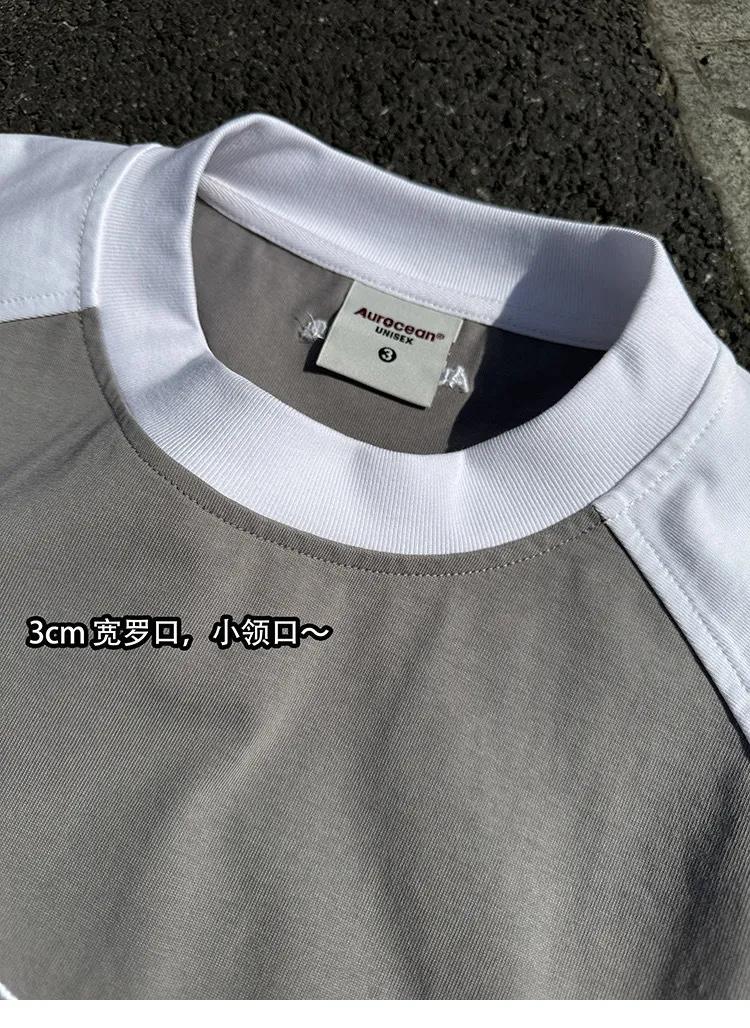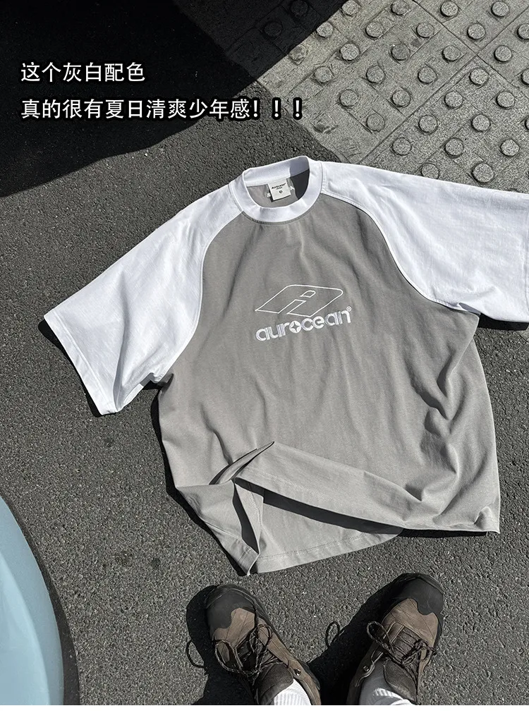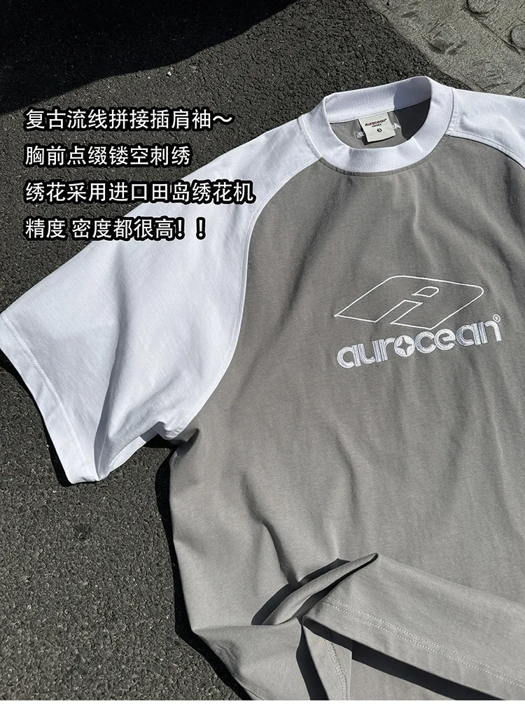 AUROCEAN 清爽風 萬針刺繡 插肩袖 320G 重磅 短袖 TEE(白灰色)
