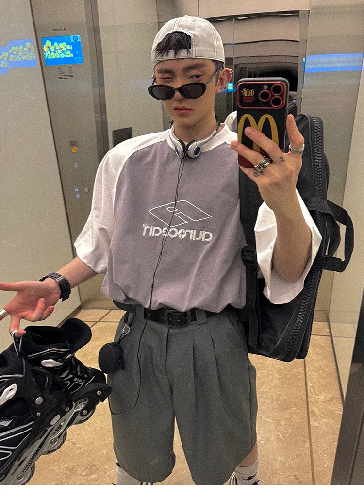 AUROCEAN 元氣少年 刺繡 插肩 撞色 320G 重磅 寬鬆 短袖 TEE(黃色)