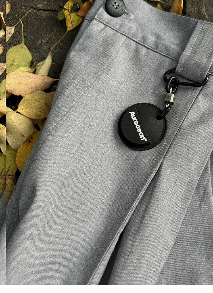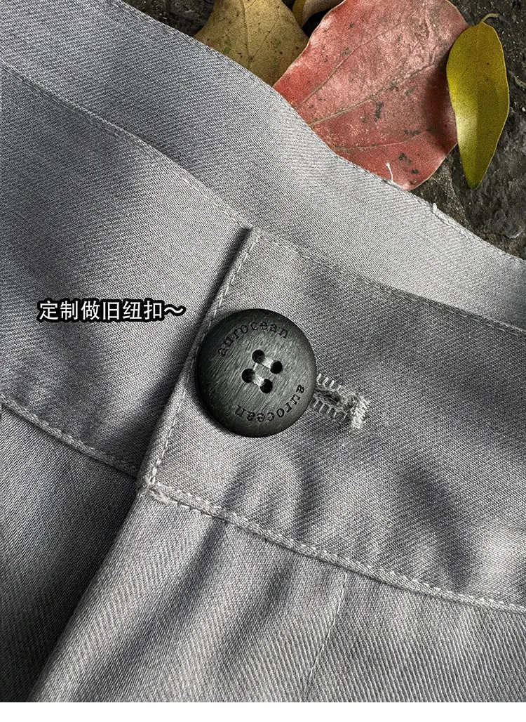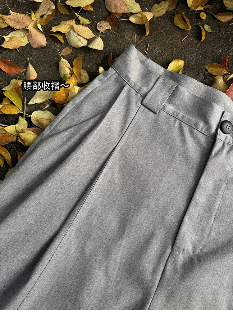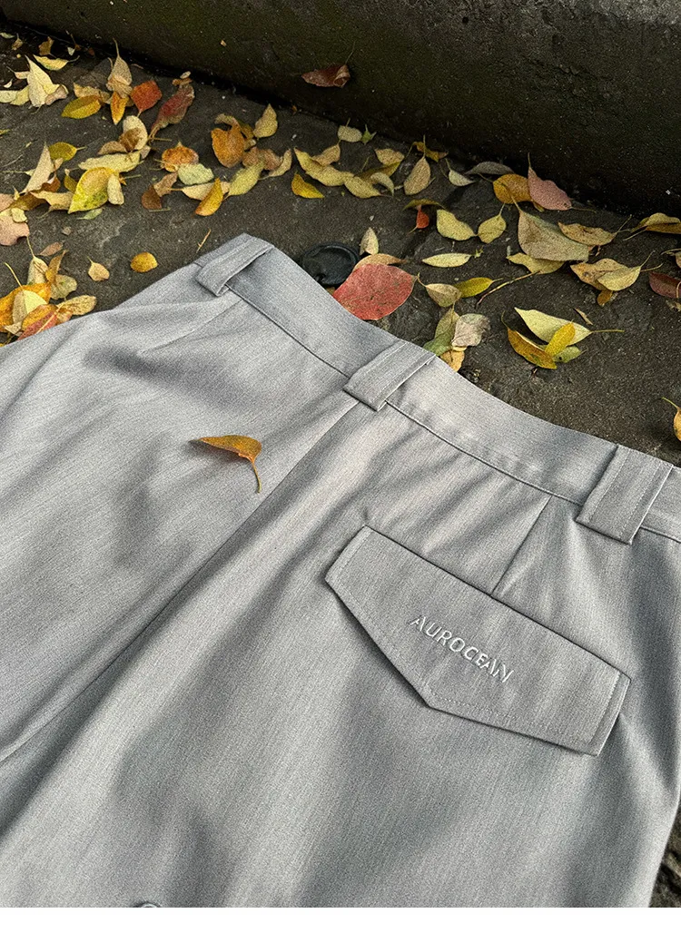 AUROCEAN 銀灰色 復古學院 收褶 闊腿 堆堆褲 西裝褲(銀灰色)