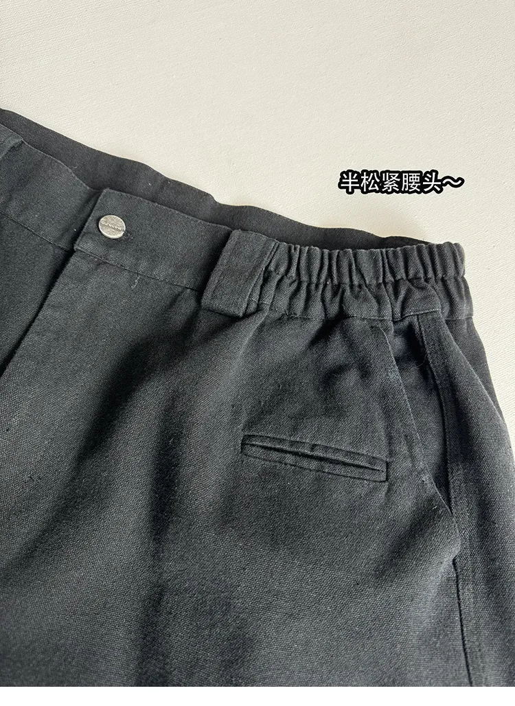 AUROCEAN 純黑色 復古學院 收褶 闊腿 堆堆褲 西裝褲(黑色)